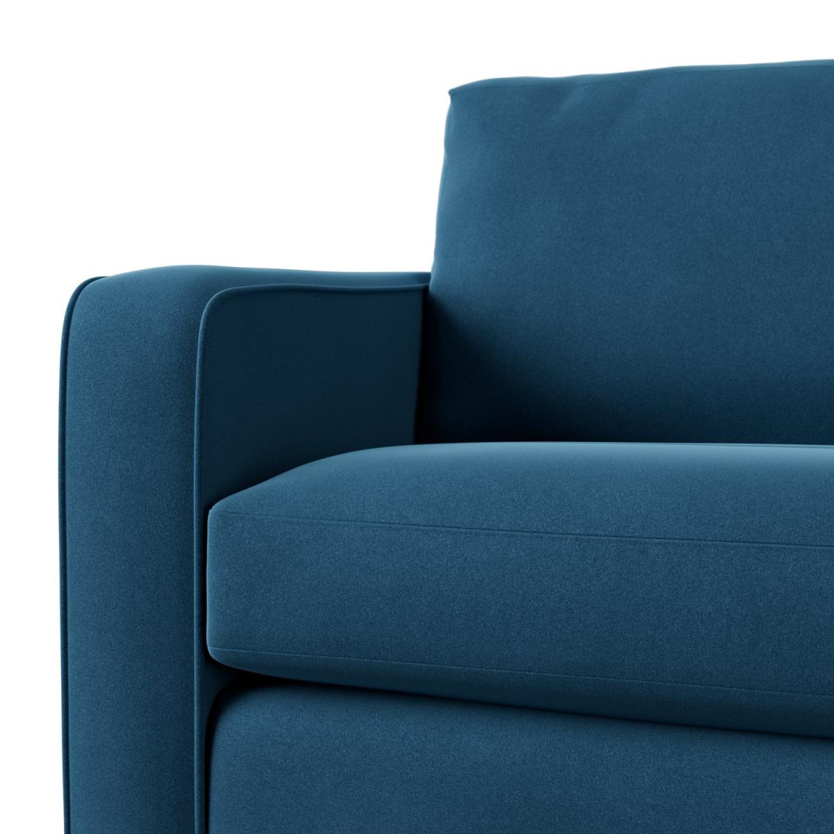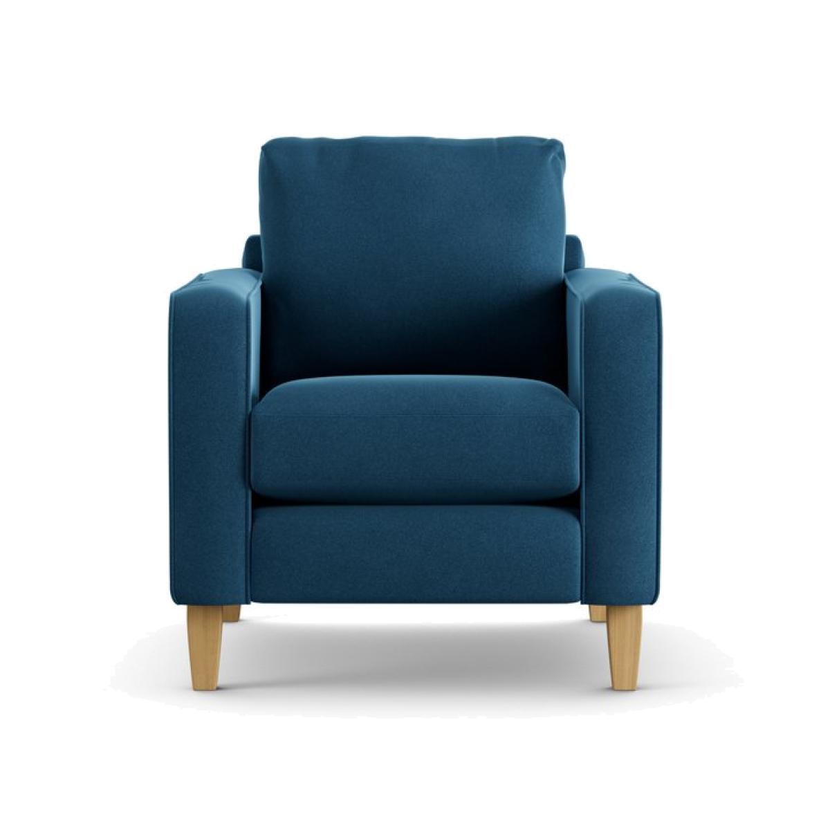 When it's made for you, you know you'll love it. More seat, less arm, more style, less fuss. The clean lines of the Flint armchair are neat and compact. The softly supportive seats and plump back cushions are made for relaxing. Upholstered in a rich velvet, the Flint takes on a luxe look. With piping detailing for a tailored finish. Offering a more supportive seat, the Flints cushions use high density foam core wrapped in fibre wadding to create the perfect balance of support, durability and recovery. Hand made to order in the UK, the Flint uses quality materials and traditional techniques for furniture thats unique to you. Available in a choice of sizes and fabrics including Aquaclean technology protection built into the yarn, which is easy to clean with just water. Part of the Flint collection. Material: Made from 100% recycled polyester. Wooden feet. Removable seat with foam fibre wrap filling. Removable cushion(s) with foam fibre wrap filling. Free fabric swatch available on this line. Dimensions: Size H89, W79.5, D90cm. Floor to seat height: 49cm. Depth of seat: 58cm. Height of seat back: 47cm. Width of seating area between arms: 54cm. Height of arm rest: 65cm. Weight: 20kg. Packaged dimensions: Package size H94, W85, D95cm. General information: FSC certified meaning the materials used for this product are responsibly sourced. We do more than deliver your product, we unpack, set it up and take away the packaging. Manufactured in the UK using components sourced globally. Professional clean only. Plump cushions regularly to maintain shape. Manufacturer's 15 year frame guarantee.