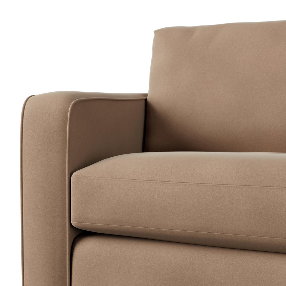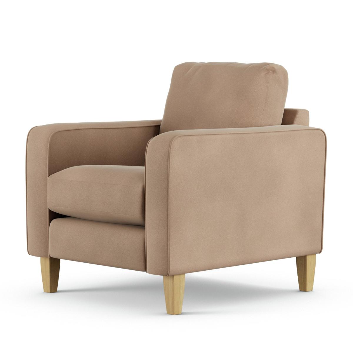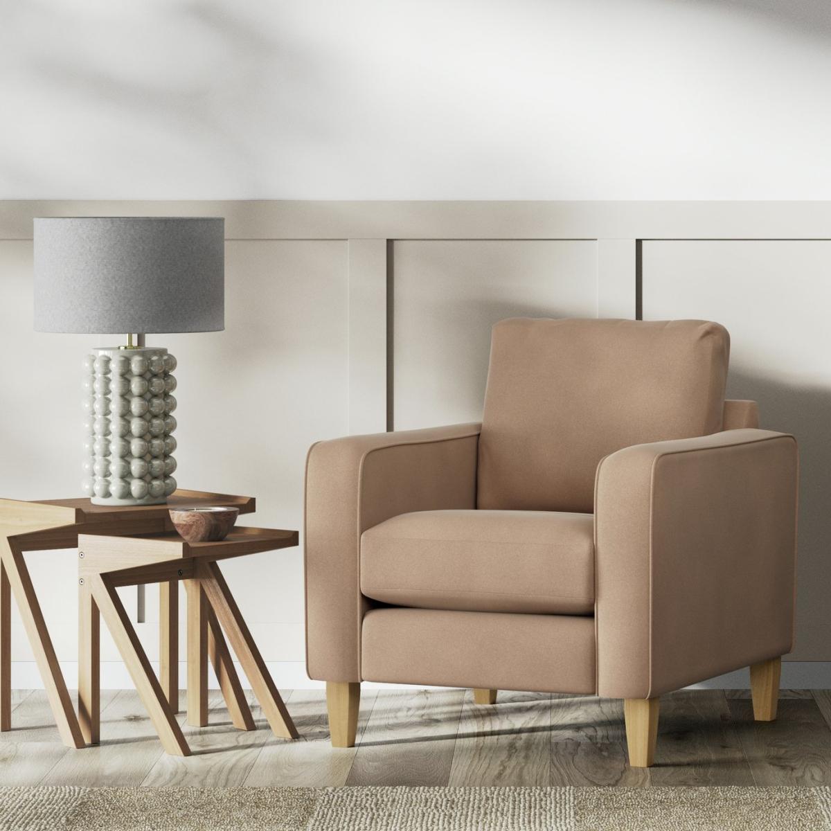 When it's made for you, you know you'll love it. More seat, less ARM, more style, less fuss. The clean lines of the Flint armchair are neat and compact. The softly supportive seats and plump back cushions are made for relaxing. Upholstered in a rich velvet, the Flint takes on a luxe look. With piping detailing for a tailored finish. Offering a more supportive seat, the Flint's cushions use high density foam core wrapped in fibre wadding to create the perfect balance of support, durability and recovery. Handmade to order in the UK. The Flint uses quality materials and traditional techniques for furniture that's unique to you. Available in a choice of sizes and fabrics including Aquaclean technology protection built into the yarn, which is easy to clean with just water. Part of the Flint collection. Material: Made from 100% recycled polyester. Wooden feet. Removable seat with foam fibre wrap filling. Removable cushion(s) with foam fibre wrap filling. Dimensions: Size H89, W79.5, D90cm. Floor to seat height: 49cm. Depth of seat: 58cm. Height of seat back: 47cm. Width of seating area between arms: 54cm. Height of ARM rest: 65cm. Weight: 20kg. Packaged dimensions: Package size H94, W85, D95cm. General information: We do more than deliver your product, we unpack, set it up and take away the packaging. Manufactured in the UK using components sourced globally. Professional clean only. Plump cushions regularly to maintain shape. Manufacturer's 15 year frame guarantee.