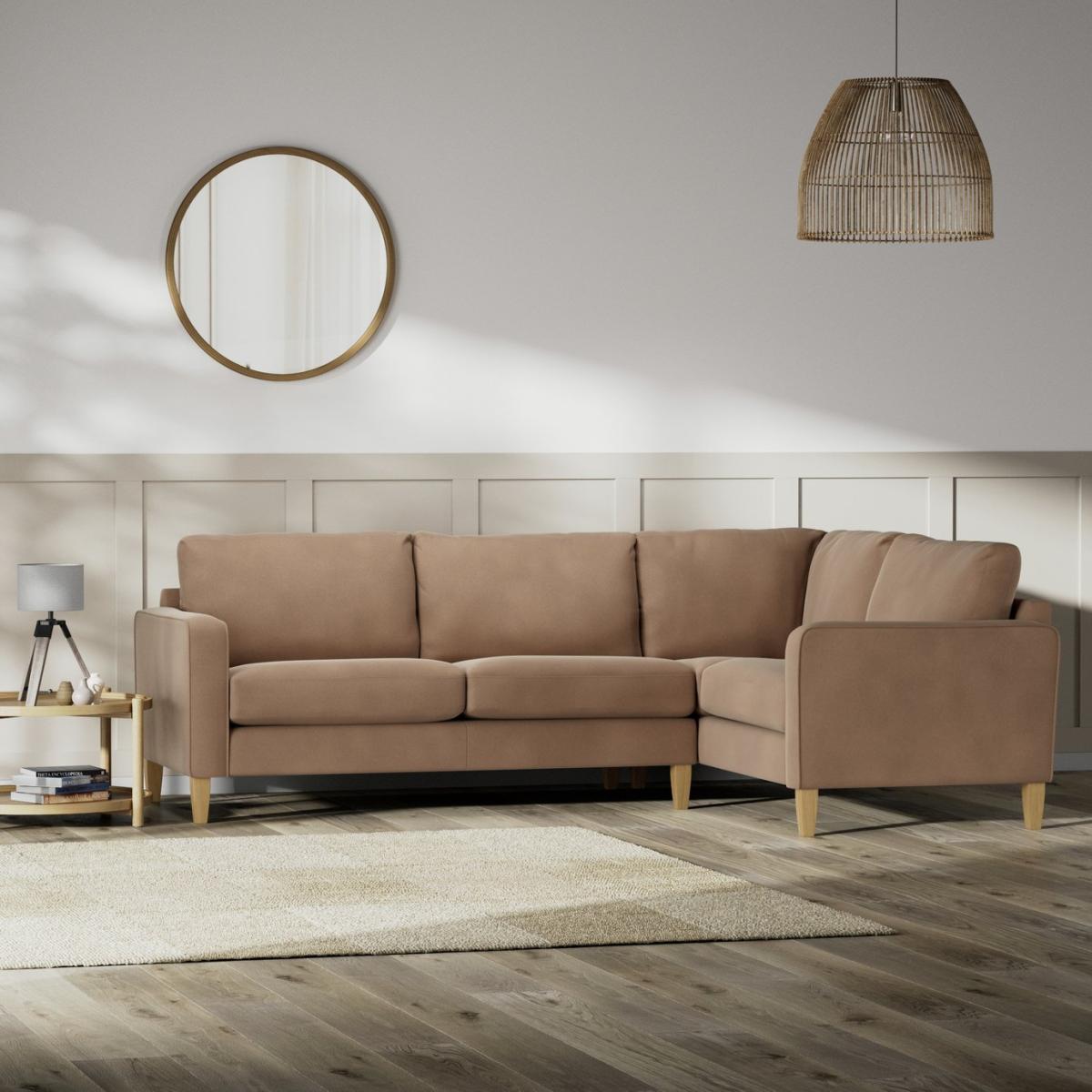 When it's made for you, you know you'll love it. More seat, less arm, more style, less fuss. The clean lines of the Flint corner sofa are neat and compact. The softly supportive seats and plump back cushions are made for relaxing. Upholstered in a rich velvet, the Flint takes on a luxe look. With piping detailing for a tailored finish. Offering a more supportive seat, the Flint's cushions use high density foam core wrapped in fibre wadding to create the perfect balance of support, durability and recovery. Hand made to order in the UK, the Flint uses quality materials and traditional techniques for furniture that's unique to you. Available in a choice of sizes and fabrics including Aquaclean technology protection built into the yarn, which is easy to clean with just water. Part of the Flint collection. Right hand corner. Material: Made from 100% recycled polyester. Wooden feet. Removable seats with foam fibre wrap filling. Removable cushion(s) with foam fibre wrap filling. Dimensions: Size H89, longer width 254, shorter width 174,. Floor to seat height: 49cm. Depth of seat: 81cm. Height of seat back: 47cm. Shorter seating area width between arms: 127cm. Longer seating area width between arms: 226.5cm. Height of arm rest: 65cm. Weight: 74kg. Packaged dimensions: Package size H94, W169, D95cm. Second package size H94, W179, D95cm. General information: We do more than deliver your product, we unpack, set it up and take away the packaging. Manufactured in the UK using components sourced globally. Professional clean only. Plump cushions regularly to maintain shape. Manufacturer's 15 year frame guarantee.