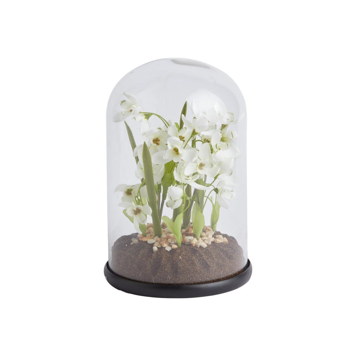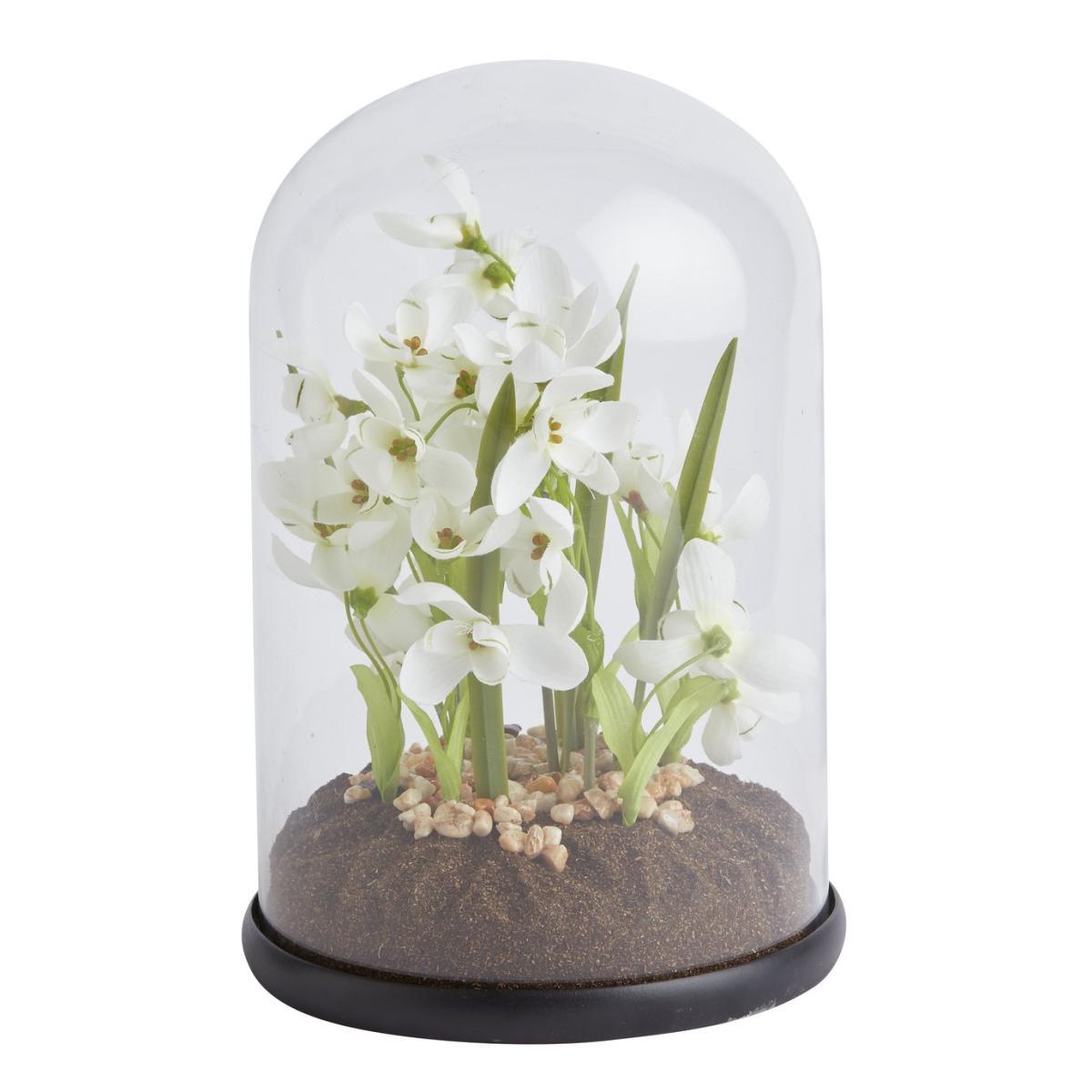 A beautiful display of blossoms. Our charming glass cloche with its arrangement of pretty white snowdrops brings calm and tranquillity to your space. Place it on a coffee table or the mantelshelf to add a fresh natural touch to your interior. Sits beautifully in a country or contemporary style decor. Relaxing to care for too, these low-maintenance marvels need no watering or prunning. Fabulous. Size H57, W49.5, D49.5cm.