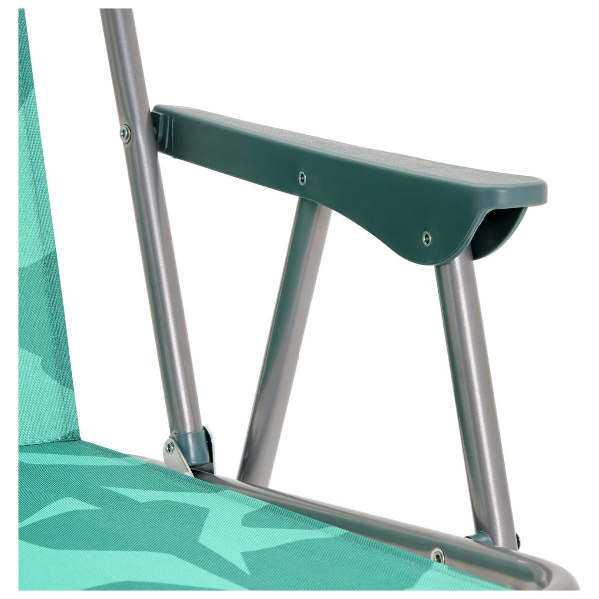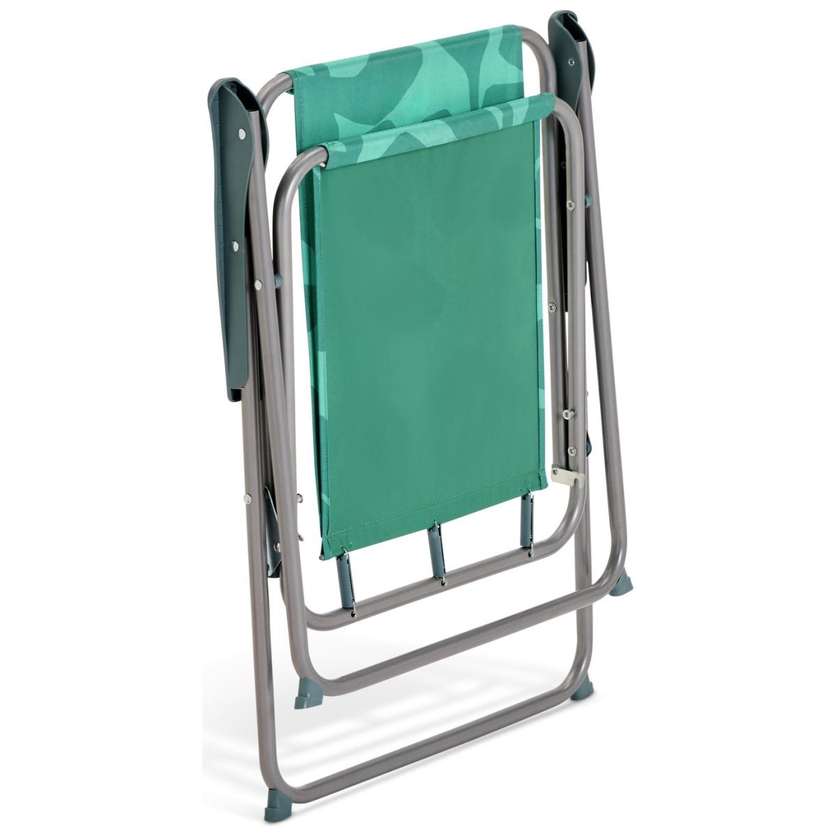 Sit down, relax and soak up some sun. This bright garden chair ticks all the right boxes. Made with a leafy green shower proof fabric it's designed to survive the great outdoors. And being lightweight and foldable it's easy to carry. Making it your go to chair for picnics, beach days, camping and general fun in the sun. Metal frame. Chair seat and back made from polyester. Does not recline to a flat position. Fixed foot rest. Folds for storage. Dimensions: Size H80, W49, D53cm. Weight 2.3kg. Seat height from ground 40cm. Arm rest height from ground 55cm. Seating area size W44, D38.5cm. Maximum user weight 110kg. Folded size H5, W71, D53cm. Package Dimensions: Package 1 dimensions: H5, W53, D71cm. Package 1 weight:2.3kg. General information: Fully assembled. Store inside when not in use. Cushion not included. Manufacturer's 1 year guarantee.