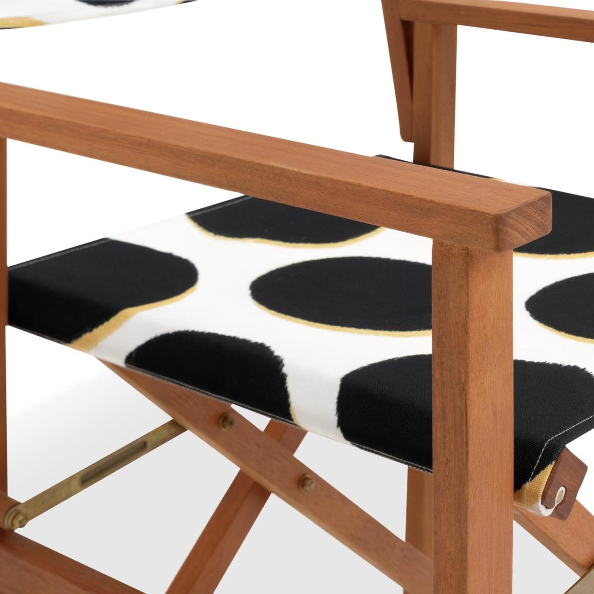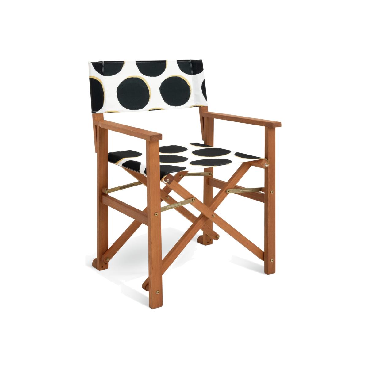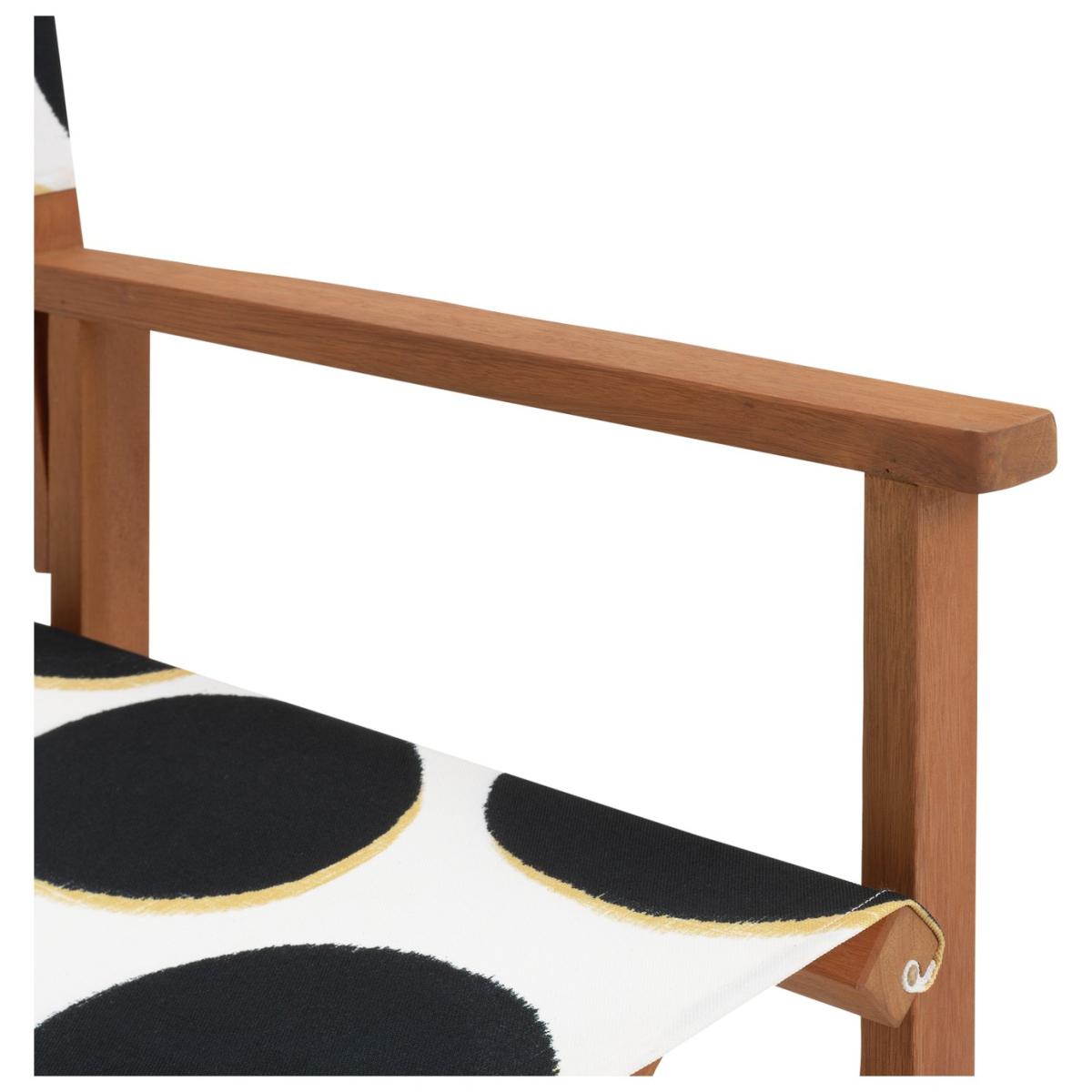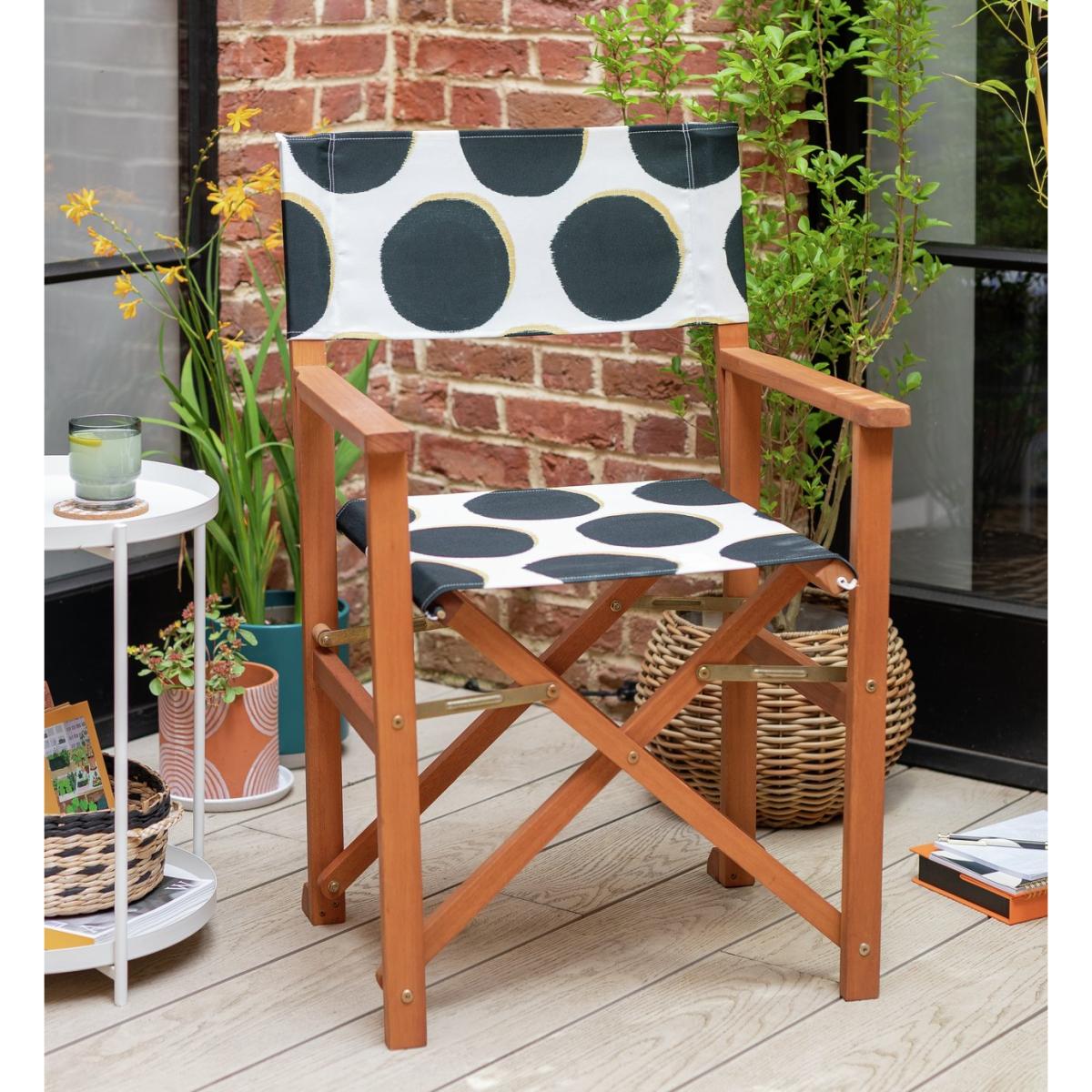 Let the good times roll from the comfort of this classic Hollywood Director's Chair. Sit back and unwind in the weatherproof, black and white fabric seat. Feels nice, right. Plus, the smart wooden frame is made from moisture-resistant eucalyptus, Easy to fold and lightweight to carry it's the perfect picnic or beach companion. Eucalyptus frame. Chair seat and back made from polyester. 1 reclining positions. Reclines to flat position. Folds for storage. Cushions: Cushions are shower proof, but should be stored inside when not in use. Dimensions: Size H90, W58.5, D51cm. Weight 5kg. Seat height from ground 46cm. Arm rest height from ground 64cm. Seating area size W50.5, D43.5cm. Maximum user weight 160kg. Folded size H90, W51, D16.5cm. Package Dimensions: Package 1 dimensions: H93, W54, D58.5cm. Package 1 weight:23kg. General information: Fully assembled. Store inside when not in use. Cover or store inside in winter months to prolong life of product. Cushion not included. FSC certified meaning the materials used for this product are responsibly sourced. Manufacturer's 1 year guarantee.