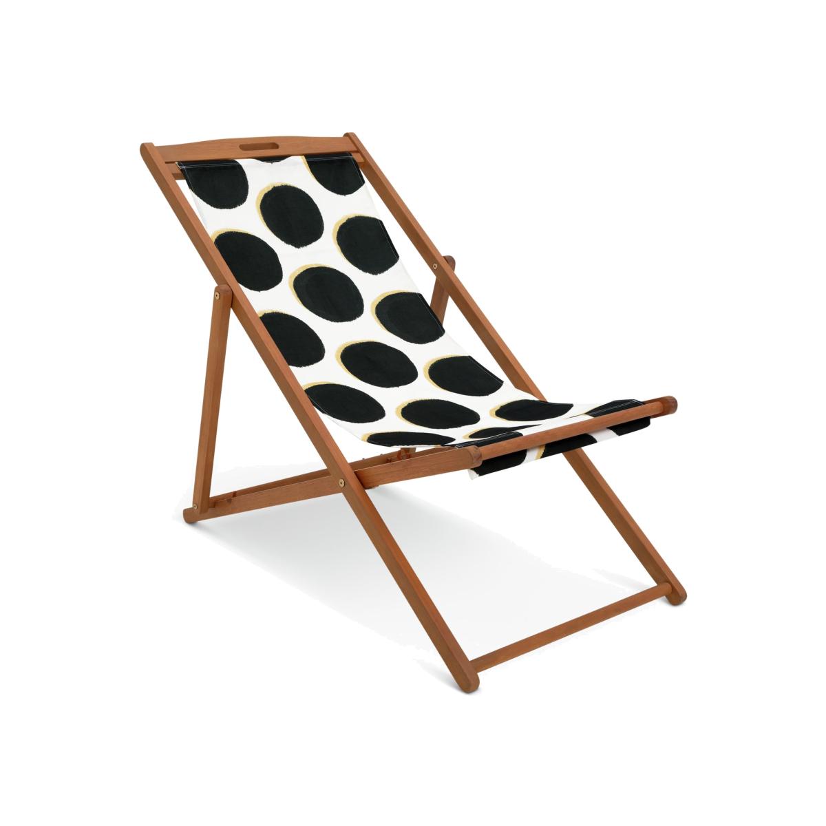 Unwind in a deck chair with extra flair. Settle into the black and white comfy seat and soak up the sun in classic style. Feels nice, right. The fabric is weatherproof, plus, the smart wooden frame is made from moisture-resistant eucalyptus, Easy to fold and lightweight to carry it's the perfect picnic or beach companion. Eucalyptus frame. Chair seat and back made from polyester. 3 reclining positions. Multi-position recliner. Reclines to flat position. Folds for storage. Cushions: Cushions are shower proof, but should be stored inside when not in use. Dimensions: Size H92.7, W59, D113cm. Weight 5.7kg. Seat height from ground 36cm. Seating area size W44.5,. Maximum user weight 160kg. Folded size H134, W59, D4.5cm. Package Dimensions: Package 1 dimensions: H145.5, W61, D7.5cm. Package 1 weight:7.2kg. General information: Fully assembled - 1 person required. Store inside when not in use. Cover or store inside in winter months to prolong life of product. Cushion not included. FSC certified meaning the materials used for this product are responsibly sourced. Manufacturer's 1 year guarantee.