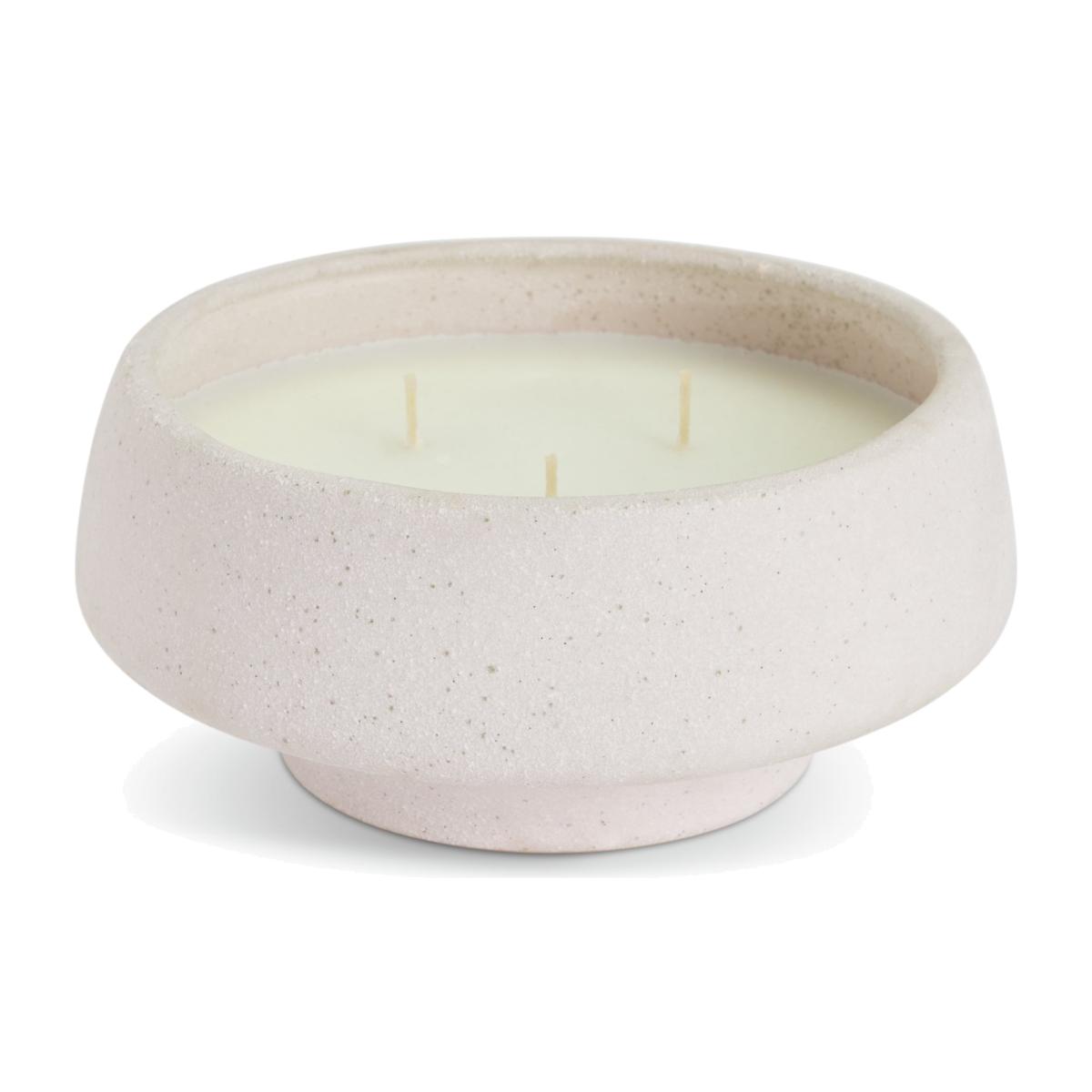 Bask in the scent of citrusy citronella with this large candle. Poured into a rounded ceramic holder with pedestal base and a natural textured finish. Perfect for outdoor gatherings, its unique fragrance helps keep insects and mosquitos away. Part of the Hab Footed Citronella Candle collection. CITRONELLA LEMONGRASS scent. Paraffin wax. Approximate burn time 37 hours. Size H9, W20, D20cm. Diameter 20cm.