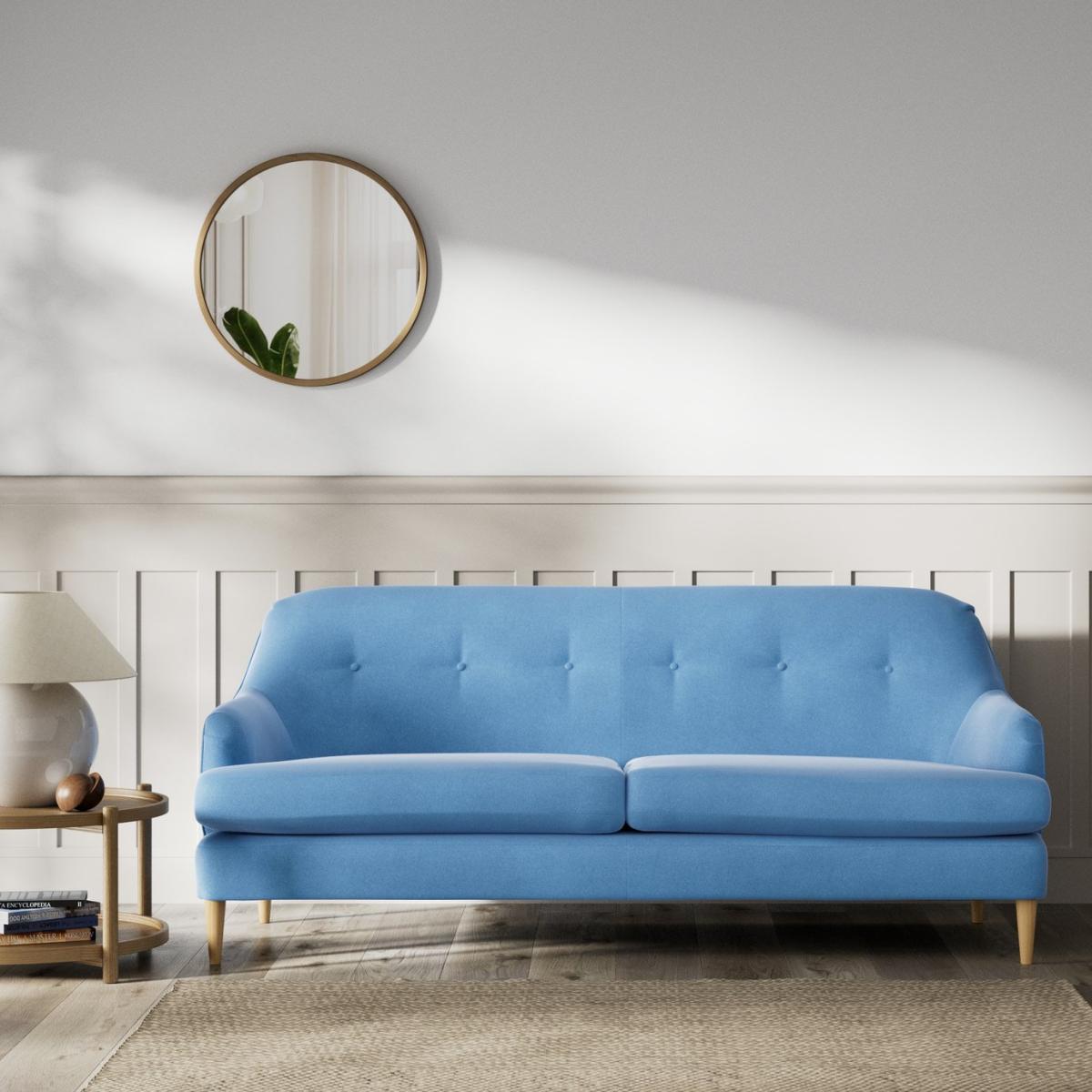 When it's made for you, you know you'll love it. Exclusive to Habitat, this 3-seater sofa brings together traditional upholstery techniques with key notes of mid-century Scandi design. The attention to detail is masterly. It takes craftsmanship to achieve the seamless fluidity of the complex curved back and minimal folds armrest. While T-shaped seats reach the entire width creating an elegant profile. In a rich velvet, the Frome takes on a luxe look. Offering a more supportive seat, the Frome's reversible cushions use high density foam core wrapped in soft fibre wadding to create the perfect balance of support, durability and recovery. Hand made to order in the UK, the Frome uses quality materials and traditional techniques for furniture that's unique to you. Available in a choice of sizes and fabrics including Aquaclean technology protection built into the yarn, which is easy to clean with just water. Part of the Frome collection. Material: Made from 100% velvet. Wooden feet - ash. Removable seats with foam fibre wrap filling. Removable cushion(s) with foam fibre wrap filling. Free fabric swatch available on this line. Dimensions: Size H87, W203, D92cm. Floor to seat height: 54cm. Depth of seat: 67cm. Height of seat back: 46cm. Width of seating area between arms: 177cm. Height of arm rest: 60cm. Weight: 48kg. Packaged dimensions: Package size H92, W208, D97cm. General information: FSC certified meaning the materials used for this product are responsibly sourced. We do more than deliver your product, we unpack, set it up and take away the packaging. Manufactured in the UK using components sourced globally. Professional clean only. Plump cushions regularly to maintain shape. Manufacturer's 15 year frame guarantee.