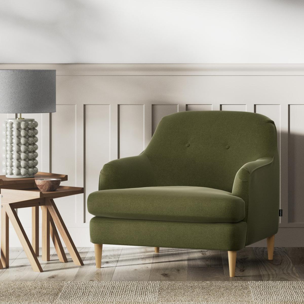 When it's made for you, you know you'll love it. Exclusive to Habitat, this armchair brings together traditional upholstery techniques with key notes of mid-century Scandi design. The attention to detail is masterly. It takes craftsmanship to achieve the seamless fluidity of the complex curved back and minimal folds armrest. While T-shaped seats reach the entire width creating an elegant profile. In a rich velvet, the Frome takes on a luxe look. Offering a more supportive seat, the Fromes reversible cushions use high density foam core wrapped in soft fibre wadding to create the perfect balance of support, durability and recovery. Hand made to order in the UK, the Frome uses quality materials and traditional techniques for furniture thats unique to you. Available in a choice of sizes and fabrics including Aquaclean technology protection built into the yarn, which is easy to clean with just water. Part of the Frome collection. Material: Made from 100% recycled polyester. Wooden feet. Removable seat with foam fibre wrap filling. Removable cushion(s) with foam fibre wrap filling. Free fabric swatch available on this line. Dimensions: Size H87, W91, D92cm. Floor to seat height: 54cm. Depth of seat: 67cm. Height of seat back: 46cm. Width of seating area between arms: 65cm. Height of arm rest: 60cm. Weight: 29kg. Packaged dimensions: Package size H92, W96, D97cm. General information: FSC certified meaning the materials used for this product are responsibly sourced. We do more than deliver your product, we unpack, set it up and take away the packaging. Manufactured in the UK using components sourced globally. Professional clean only. Plump cushions regularly to maintain shape. Manufacturer's 15 year frame guarantee.