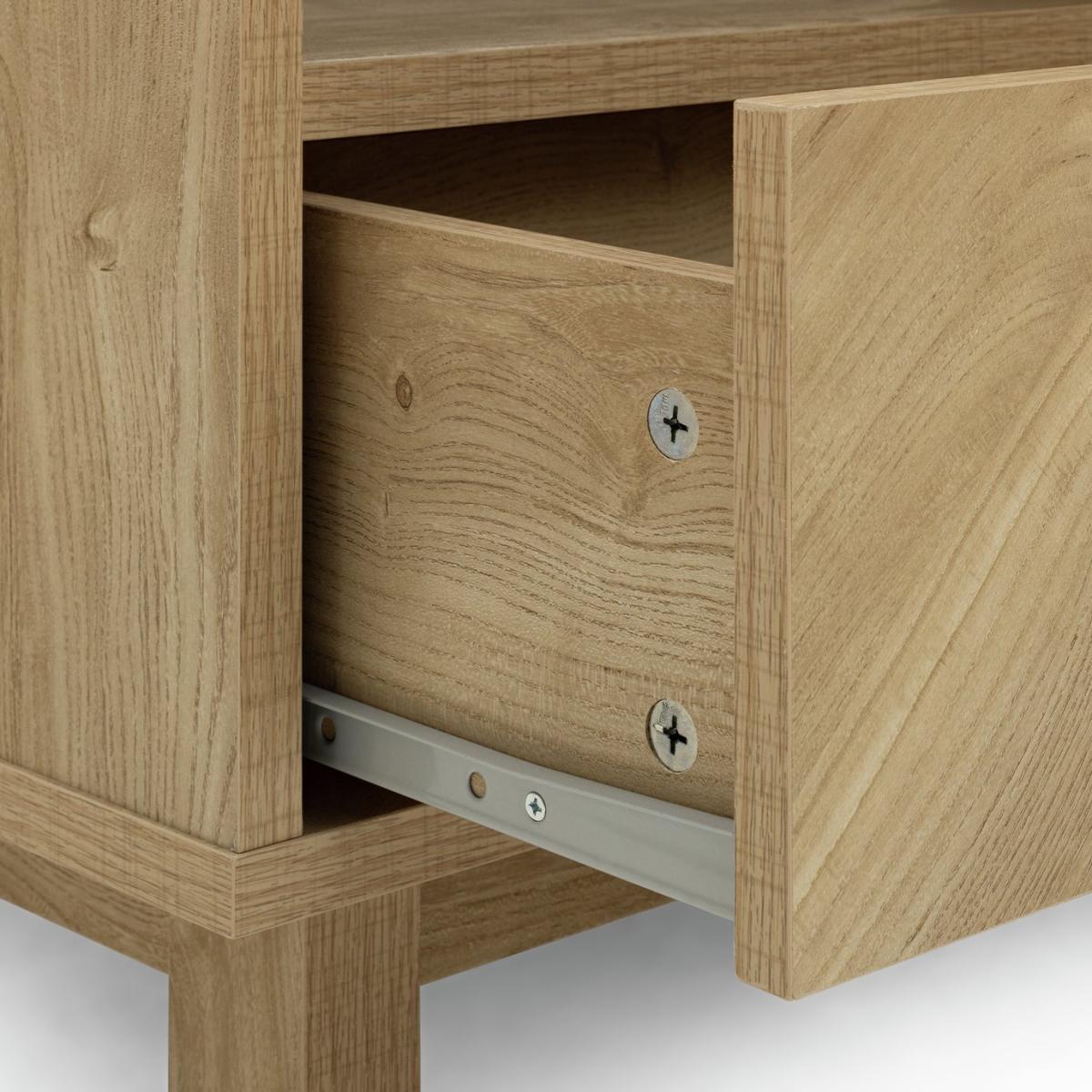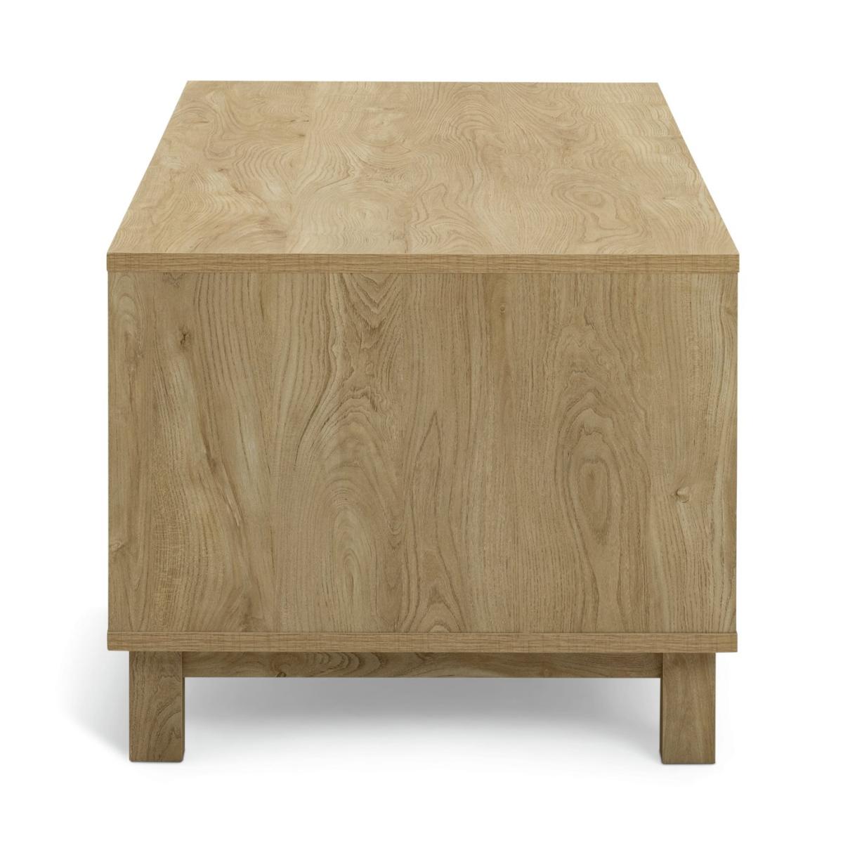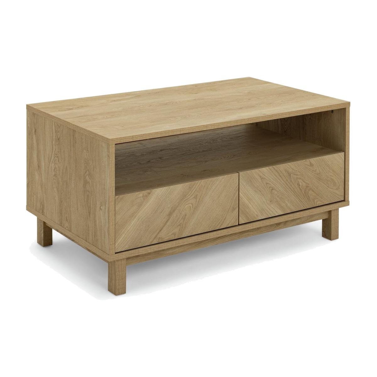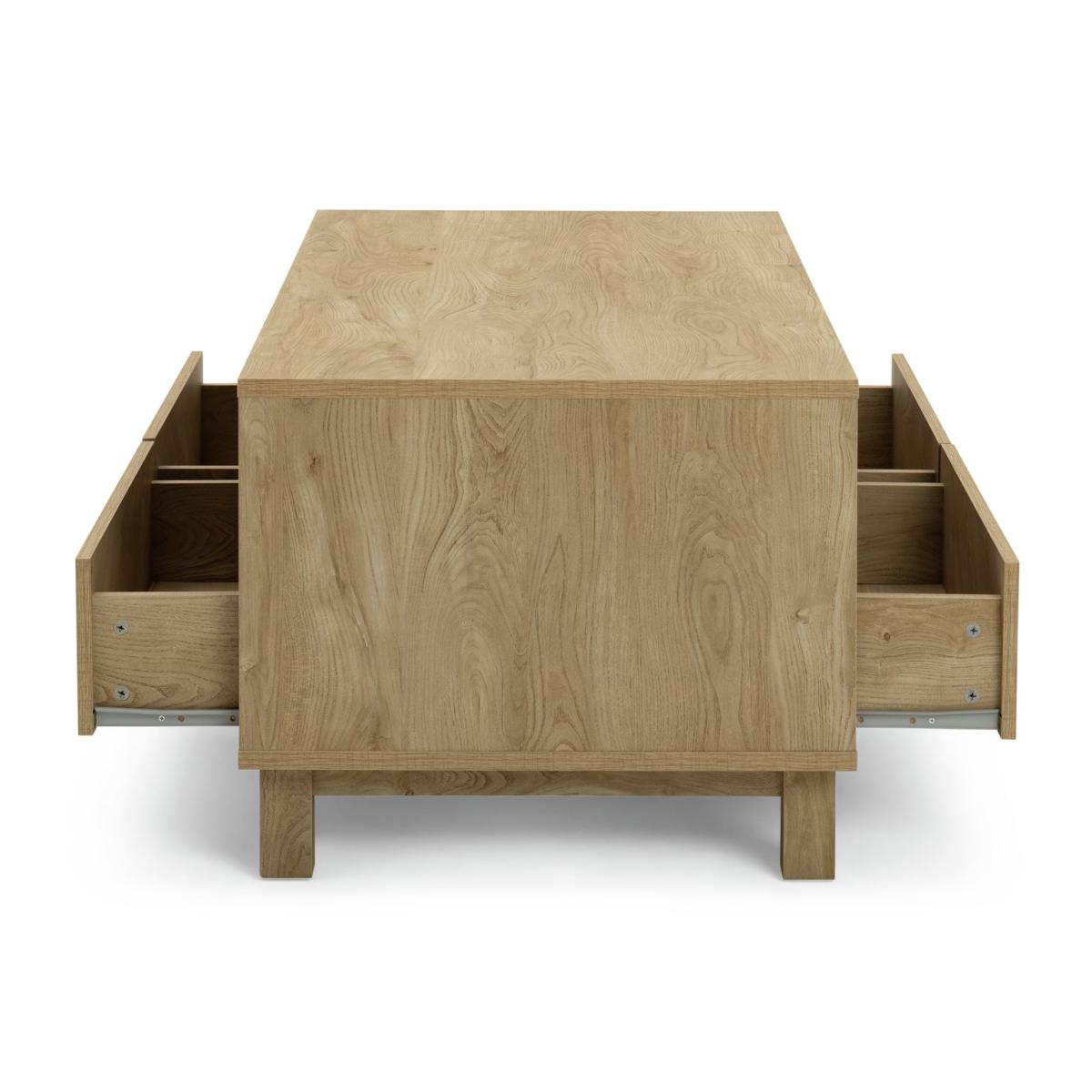Show off the chevron. Here's a Skandi style oak effect coffee table to draw the compliments. Upscale smart but modern and minimal. There's a big open space that's ideal for keeping books or mags handy. Plus, the 4 smooth fronted drawers push open to reveal handy stash away space. No wonder we're such fans of Fynn. Part of the Fynn collection. Size H 50, W 100, D 59.6cm. Made from MDF with a wood effect finish. 4 drawers with metal runners. 1 undershelf. Weight 40.8kg. Self-assembly - 2 people recommended. Maximum load weight 18kg. Package Dimensions: Package 1 dimensions: H11.7, W110.9, D64.8cm. Package 1 weight: 42.9kg. General information: We are excited to be welcoming some of our favourite HOME products into the Habitat range. Your product may arrive in Habitat or HOME packaging. Manufacturer's 1 year guarantee.