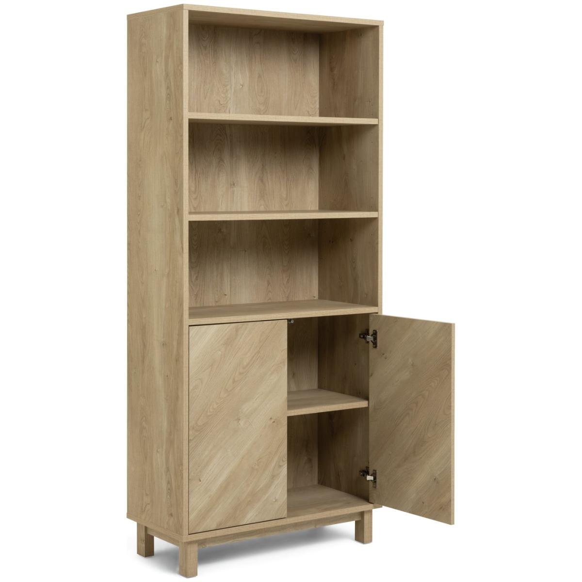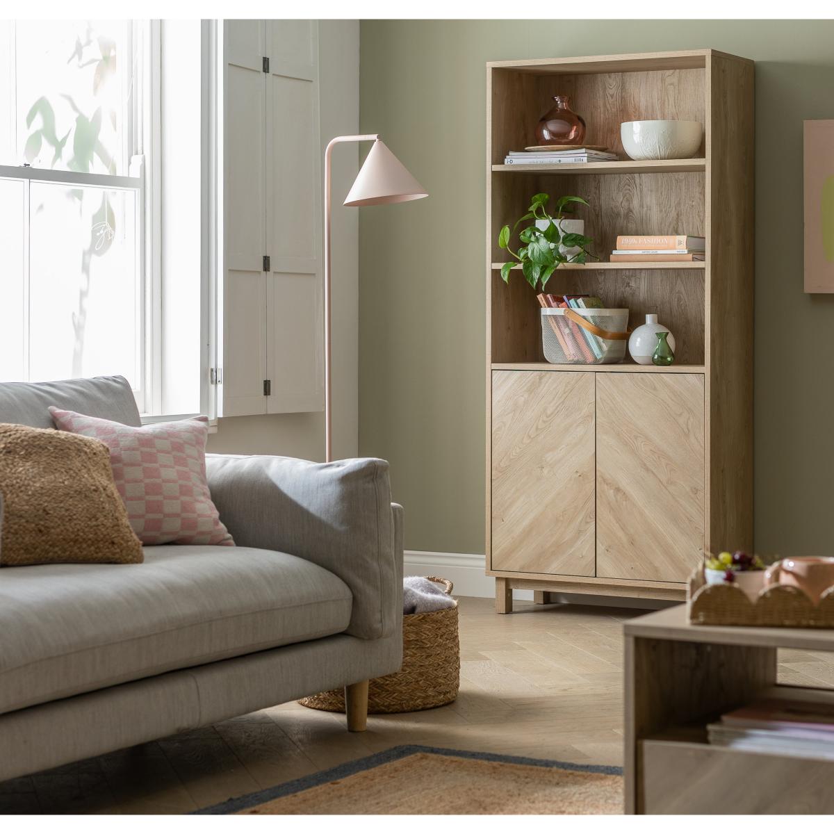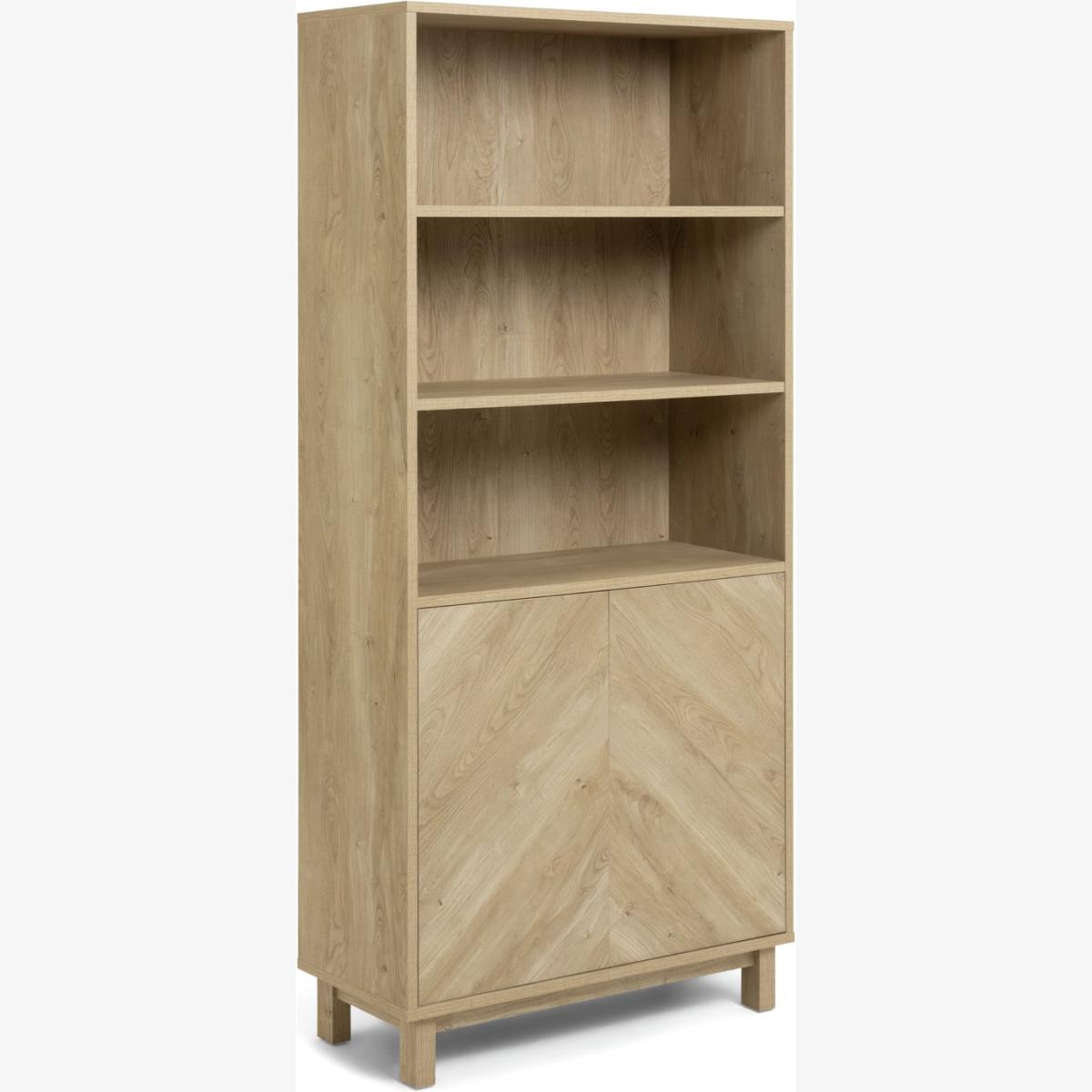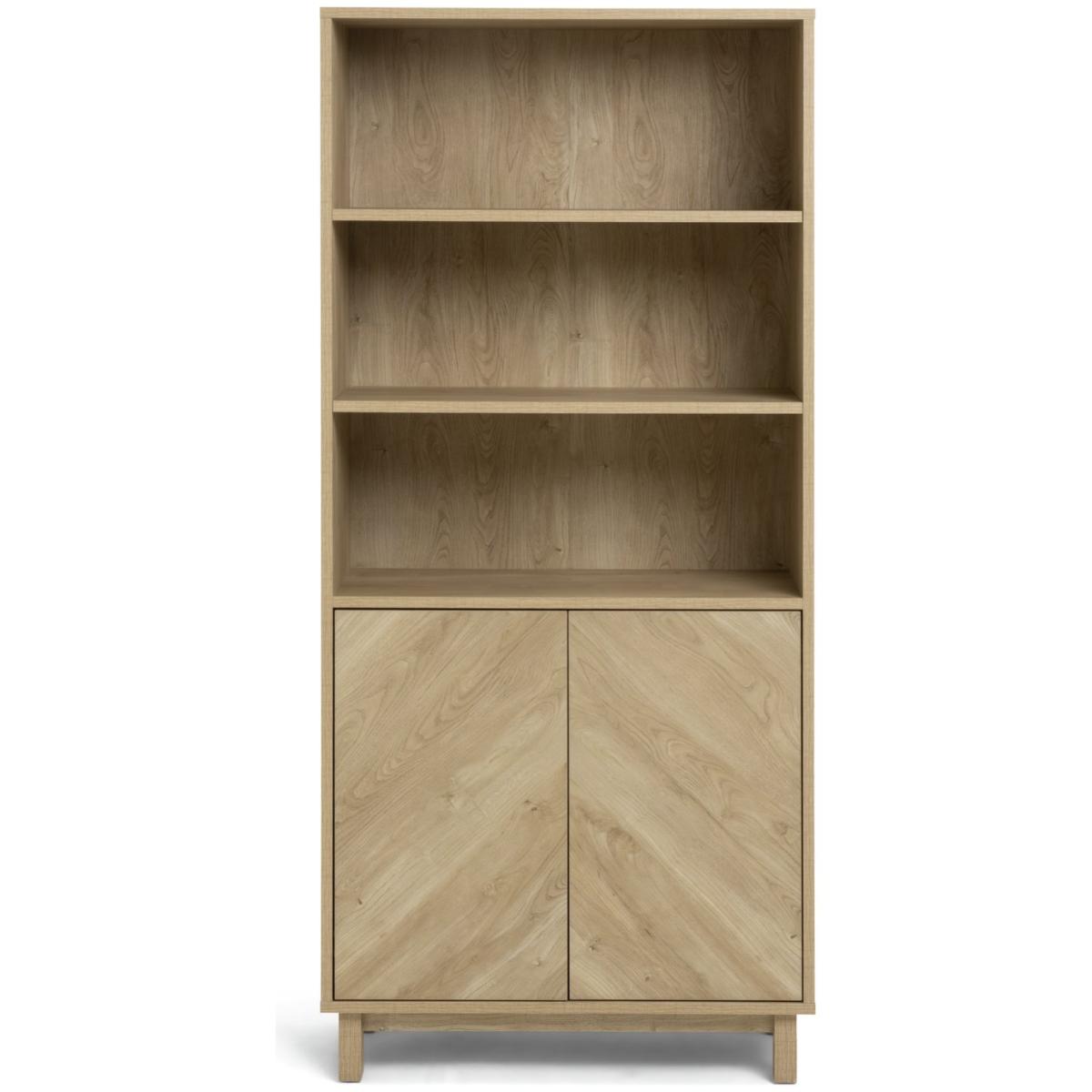 Show off the chevron. Here's a Scandi style oak effect bookcase to draw the compliments. Upscale smart but modern and minimal. With adjustable shelves including the one inside the sideboard base. No wonder we're such fans of Fynn. Part of the Fynn collection. Made from MDF with a wood effect finish. 1 fixed shelf and 3 adjustable shelves. 1 cupboard. Packed flat - 2 people recommended. If this product is over 60cm high it must be securely attached to the wall to prevent overturning (fixings included). Dimensions: Size H180, W79.6, D35cm. Weight 46.6kg. Internal shelf space: H 96.7, W 75.8, D 33cm. Adjustable shelf H 17.1 - 38.3cm. Wall fixing recommended. Recommended maximum load per shelf: 20kg. Internal cupboard space : H 65.8, W75.8, D31cm. Package dimensions: Package 1 dimensions: H12.6, W175.1, D43.4cm. Package 1 weight: 46.7kg. General Information: We are excited to be welcoming some of our favourite HOME products into the Habitat range. Your product may arrive in Habitat or HOME packaging.