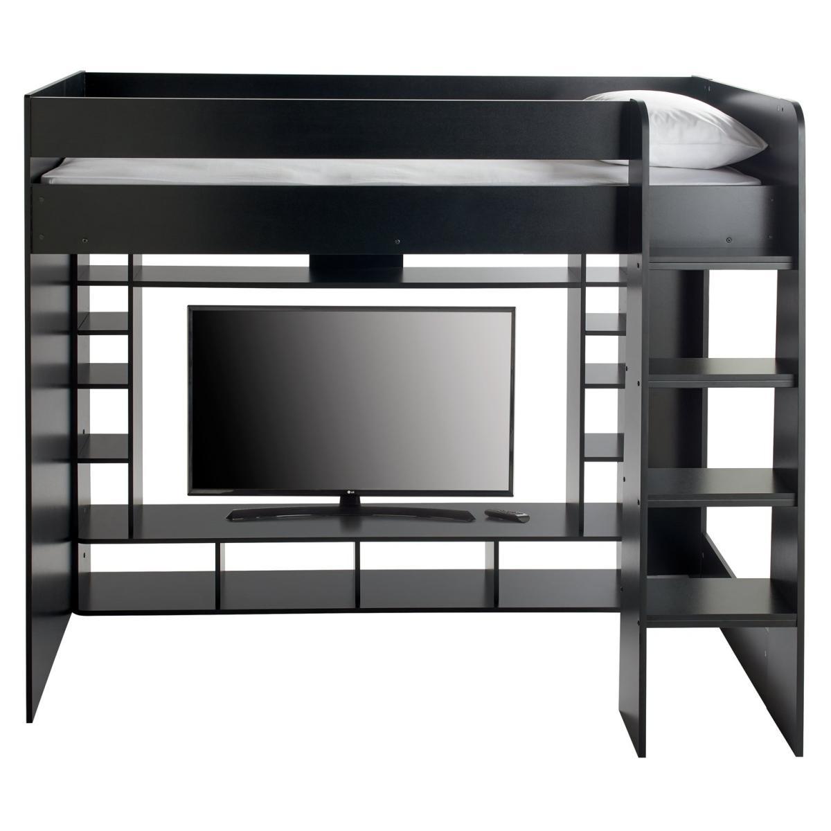 It's game on with this awesome gaming high sleeper. With built-in space for a 55 inch TV, storage for games and multiple consoles, and space to store up to two gaming rocker chairs, this bed is the ultimate bit of kit for your young gaming expert. Create a gaming centre in their room and reclaim your lounge! With wide double-layer steps reinforced with steel bars, the gaming highsleeper is designed with strength and stability in mind, and of course, maximum gaming pleasure.