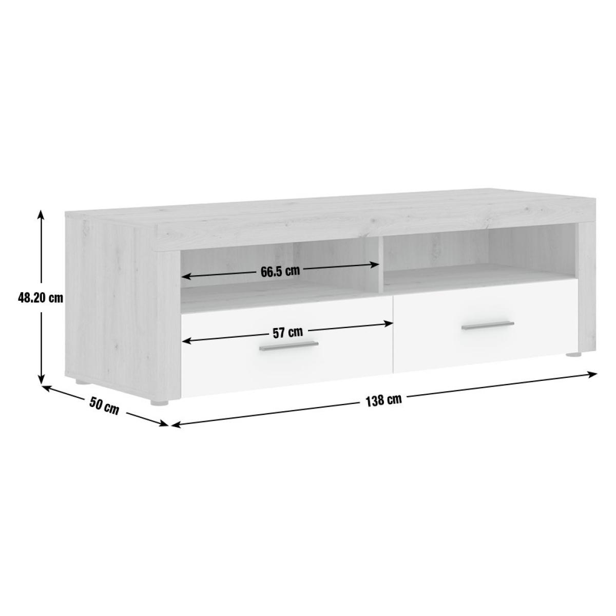 Clean design, ample storage and a Scandi-esque aesthetic. Created for the tech-savvy, the Gamma TV unit has it all. On top, it can take up to a 52-inch screen. Underneath it has 2 spacious drawers that glide open on metal runners, 2 open shelves and easy cable access. With its lacquered wood and white finish, Gamma provides streamlined functionality in a fresh form. Part of the Gamma collection. Made from particleboard and MDF with a lacquered finish. Size H 48.2, W 138, D 50cm. Weight 40.3kg. Internal shelf width is 66.5cm. Internal drawer width is 57cm. 2 drawers with metal runners. 2 shelves. Black handles. 2 media storage sections. Largest height of media equipment sections 16.8cm. Easy cable access. Suitable for screen sizes up to 52in. Maximum weight of TV 25kg. Self-assembly - 1 person recommended. Package Dimensions: Package 1 dimensions: H13, W70.8, D47.2cm. Package 1 weight: 16.5kg. Package 2 dimensions: H6.4, W147.3, D58.6cm. Package 2 weight: 25.8kg. General information: Manufacturer's 1 year guarantee.