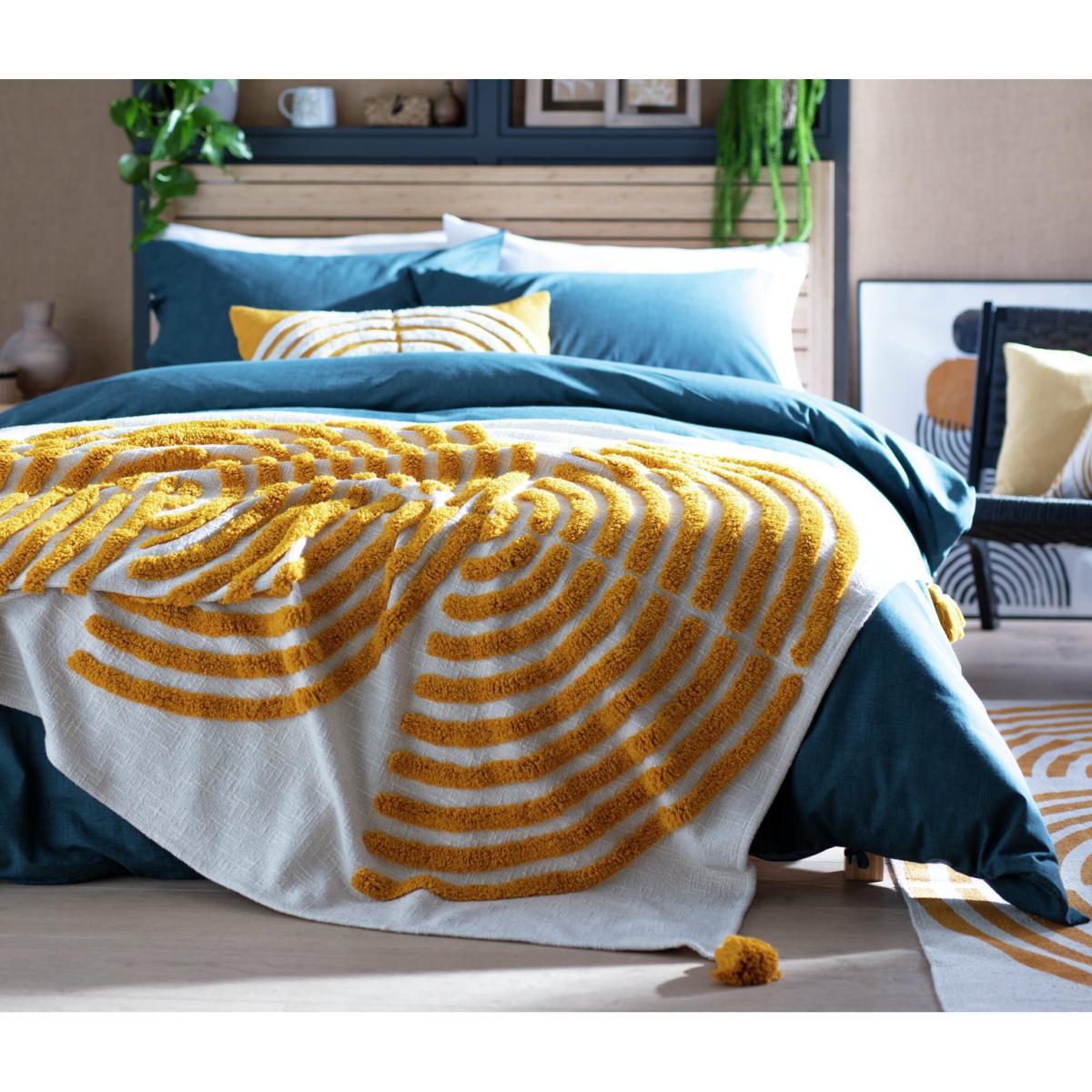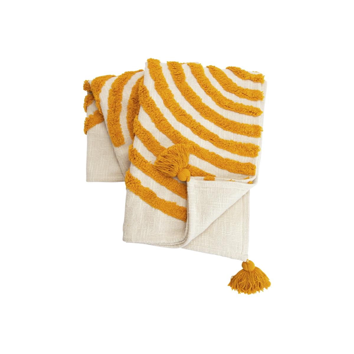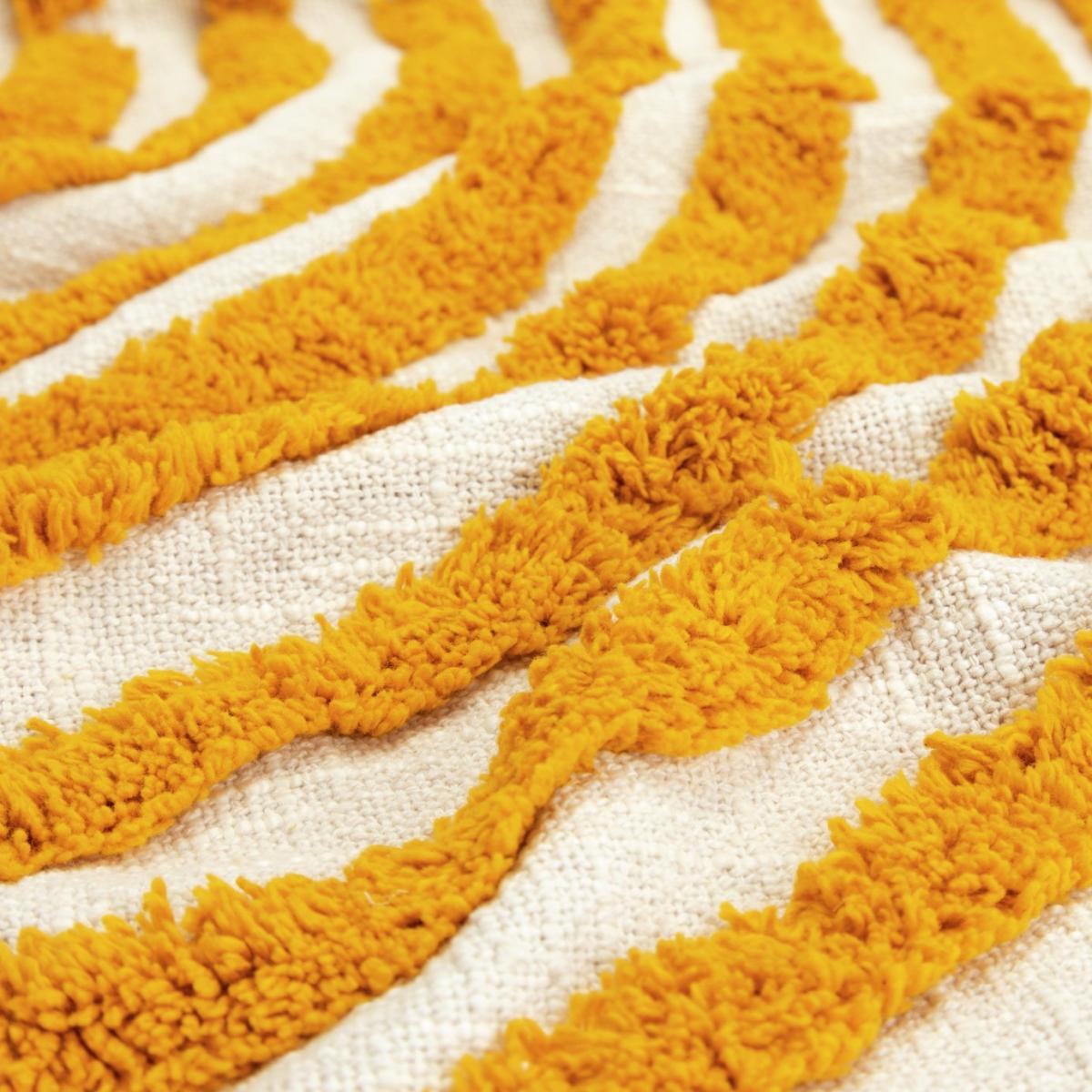 Our geo throw is all about texture and comfort. The yellow tufted design adds depth and dimension. And it creates a stunning contrast against the thick cream cotton base. Matching vibrant corner tassels creates an exotic finish. Very relaxed, very boho.