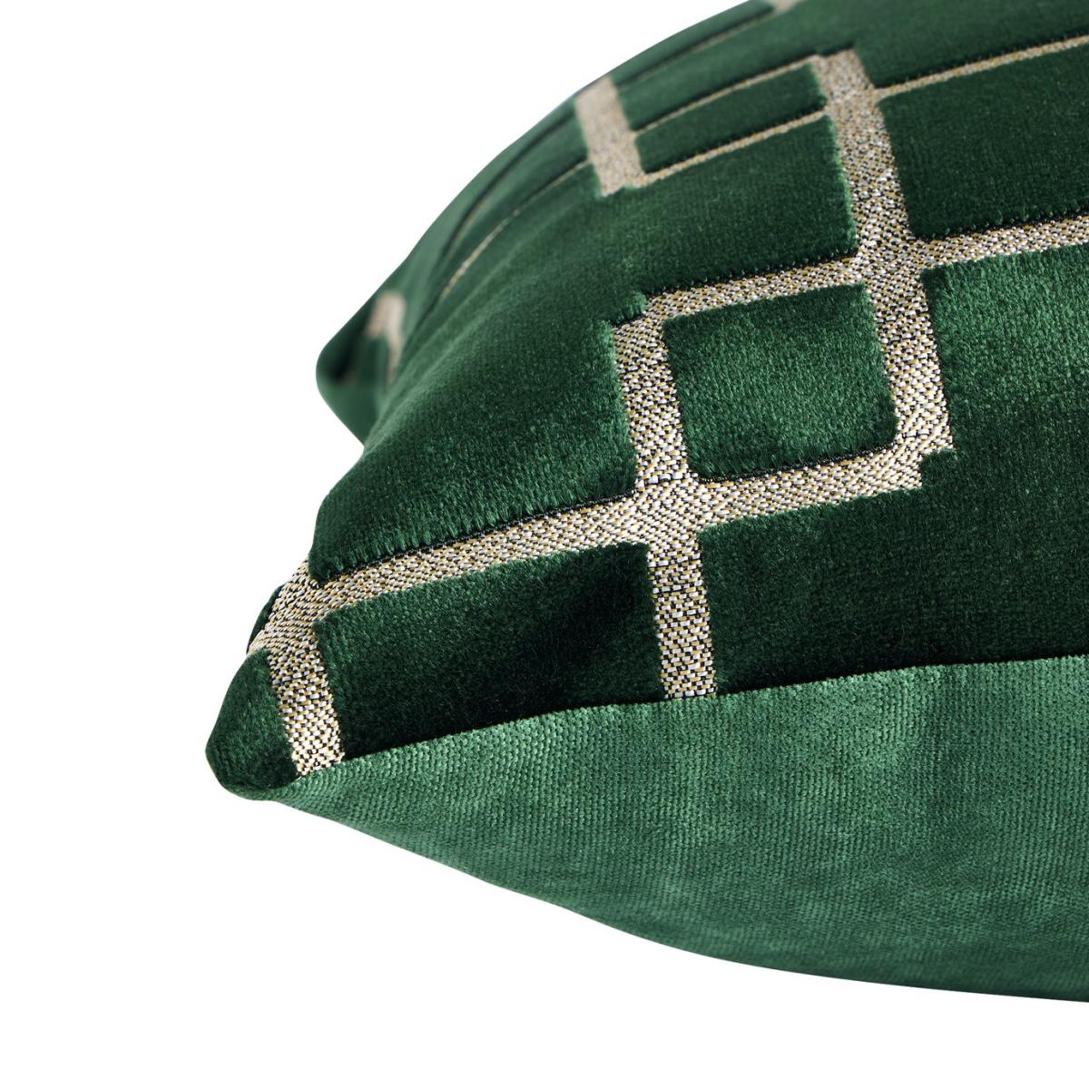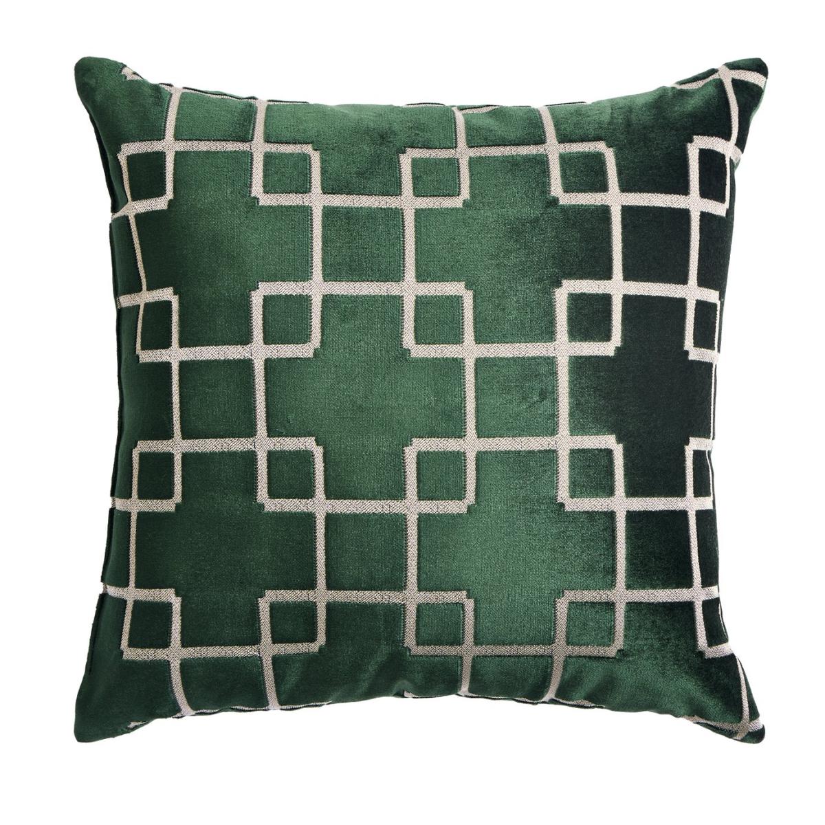 Add a comforting luxe touch. In deep green velvet, this woven Jacquard cushion exudes richness. While the geo chain design has an air of contemporary air. Softly strokable, it's an easy way to inject additional colour, texture, and pattern into your decor. Fully sewn and stuffed cushion. Cover 40% Viscose, 60% Polyester. Filling 100% Recycled Polyester,. Size L43, W43cm. This cover is sponge clean only.