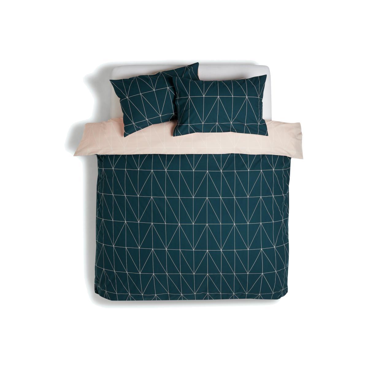 Get a bed start in smart. Our double duvet set features a striking geometric design. Perfect for a cool, contemporary look. It's clever too with a reversible pattern to give your room an easy makeover. Made in a comfy polyester and cotton percale mix, this bed in a bag set comes with 2 reversible pillowcases.