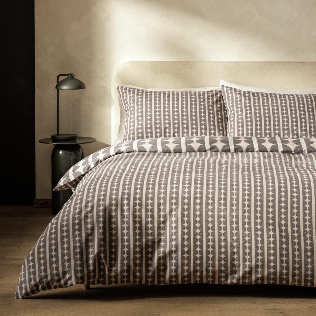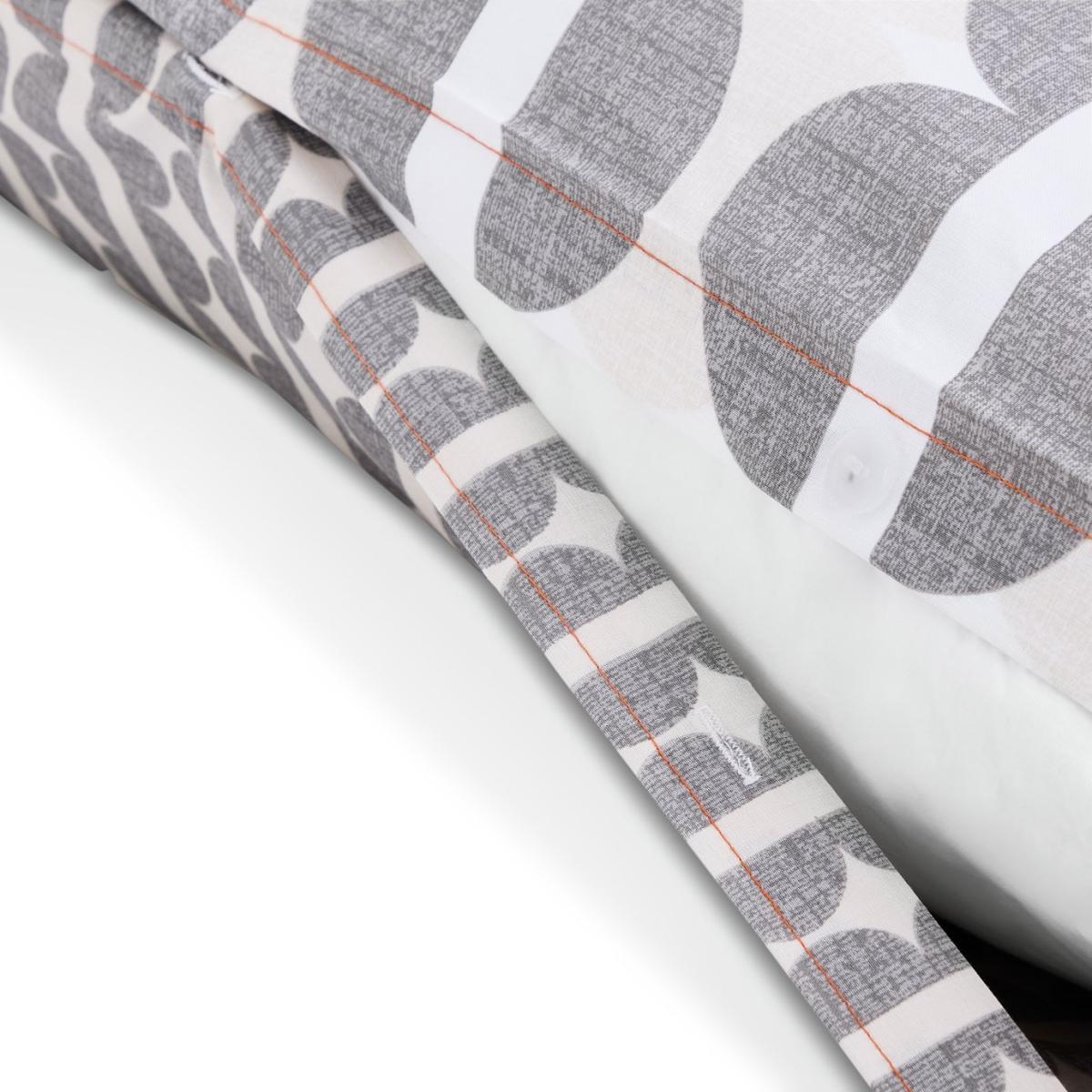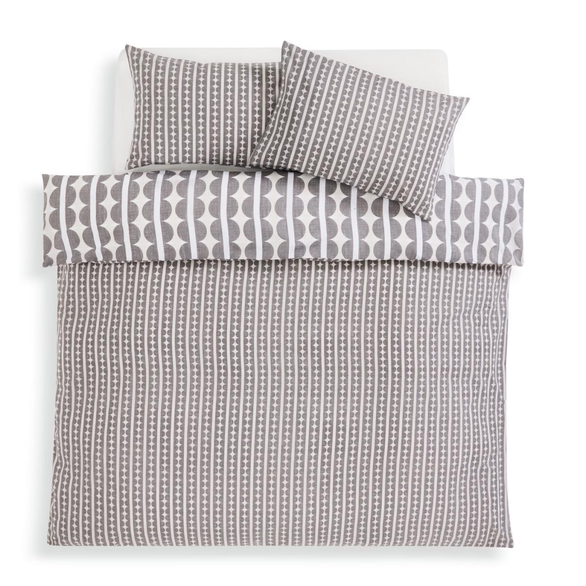 Gorgeous graphics in gentle grey. Our soft geometric single bedding set invites you to slip into a neatly ordered pattern of circles and stripes. Bring a welcome sense of calm to your bedroom. And it's two designs in one. Just flip the duvet over to ring the changes. This item carries the STANDARD 100 by OEKO-TEX logo, which means you can be certain that every component has been tested for harmful substances and is therefore harmless to human health. 52% polyester, 48% cotton. 144 thread count. Set includes 1 duvet cover and 1 pillowcase. Bed size: single. Length 200cm, Width 135cm. Reversible. Buttons for fastening. Standard pillowcase (s). Pillowcase length 75cm, Width 50cm. Reversible pillowcase (s). Wash before use. Suitable for tumble drying.