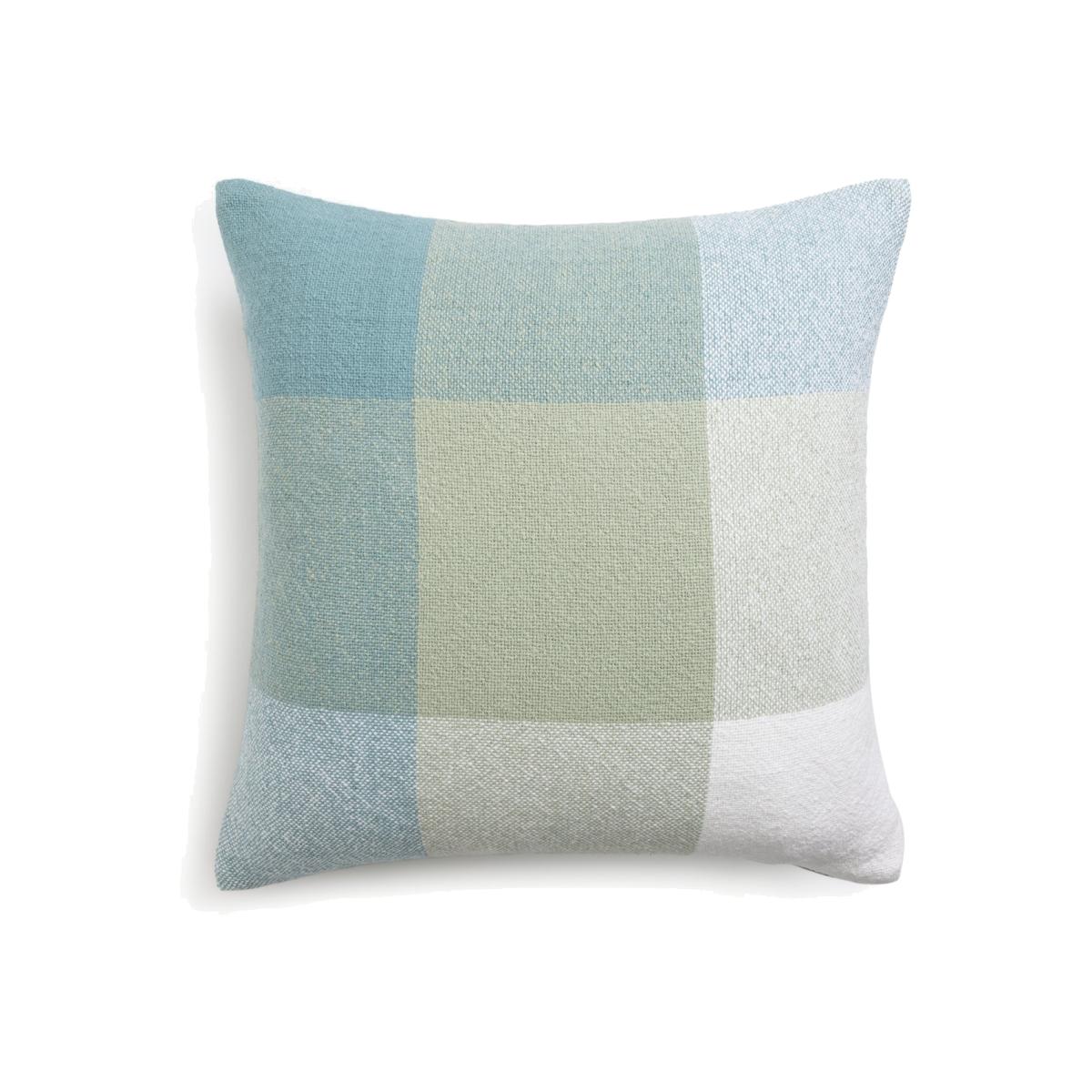 Get comfy with cool coastal tones. The soft blue and green hues of our checked cushion bring a splash of calming colours to a chair or bed. Handwoven, it has a textured homely charm. And with a zip off cover it's a breeze to keep looking fresh. We've more like-minded gingham textiles to explore. Check them out. Fully sewn and stuffed cushion. Zip fastening. Cover 50% cotton, 50% Polypropylene. Filling 100% polyester. Size L43, W43cm. This cover is machine washable covers. For ages 3 years and over.
