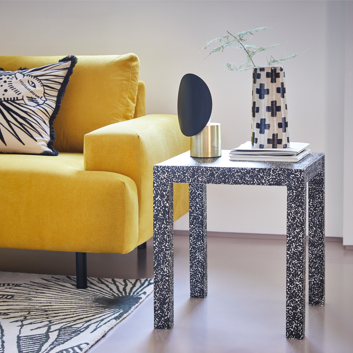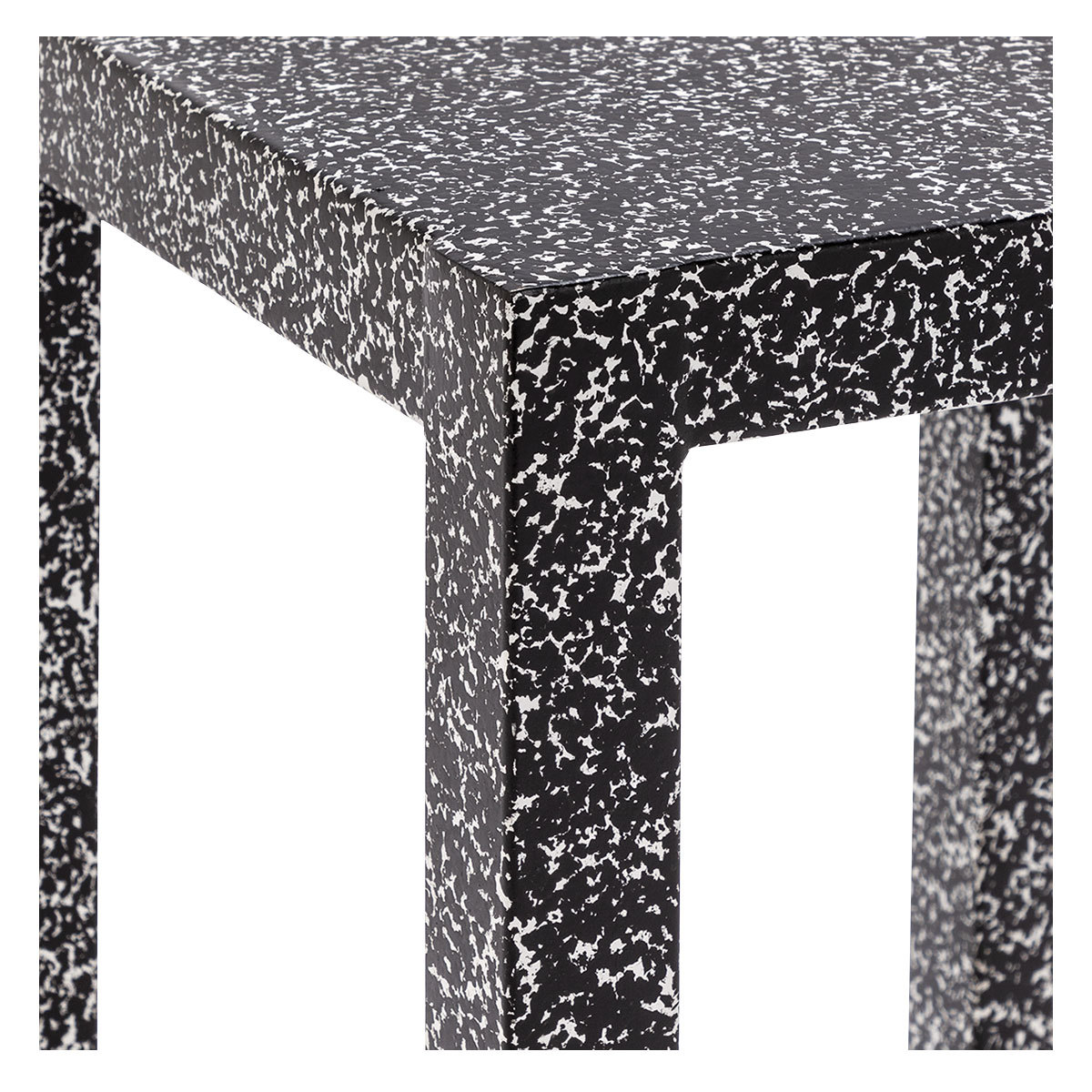 Created in the Habitat design studio, the Gingko black and white metal side table is a design statement piece. Combining sharp edges with sleek lines, this side table will lend style to your space and provides the perfect spot for a table lamp and TV remotes. Handmade and handfinished by skilled craftsmen in India, this table is made from galvanised iron sheets and finished with a hand painted splatter effect. Due to the nature of the design, each table is unique and when a splatter effect looks this good, you wont mind it being the centre of attention in your living room. Part of the Gingko collection. Size H 45, W 45, D 50cm. Made from metal. Fully assembled - 2 people recommended. General information:Manufacturer's 1 year guarantee.