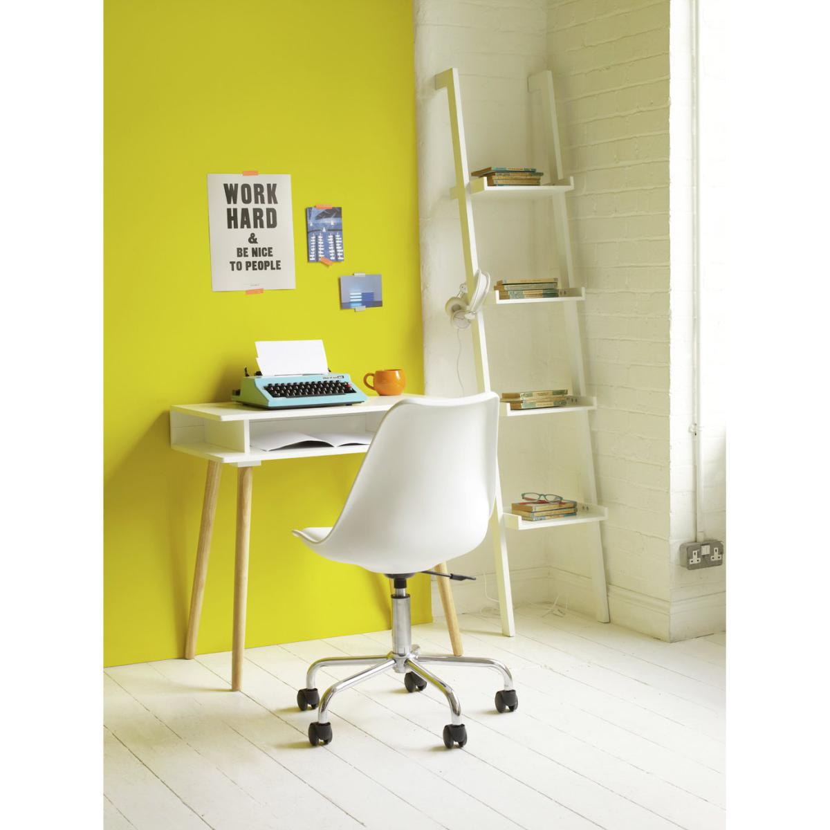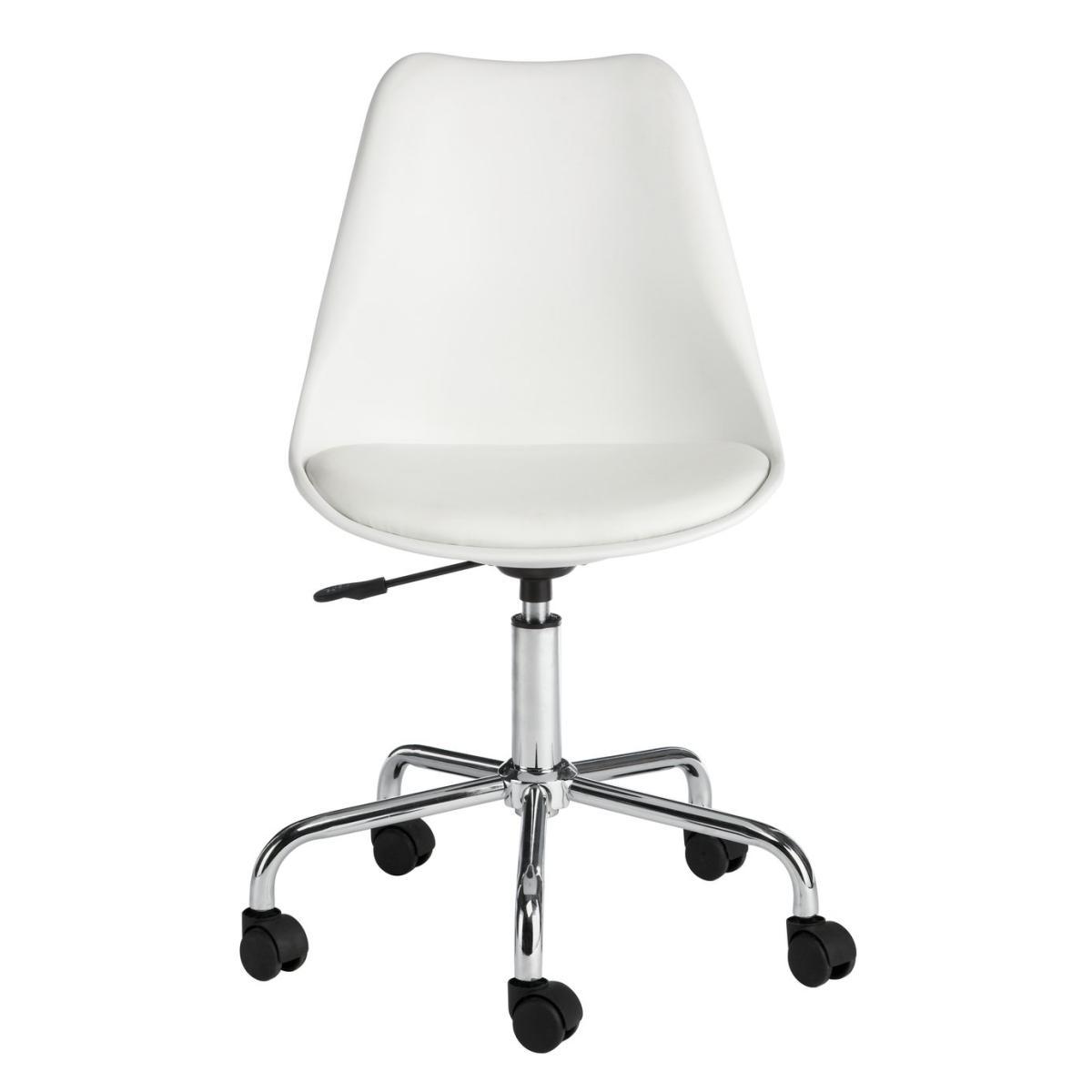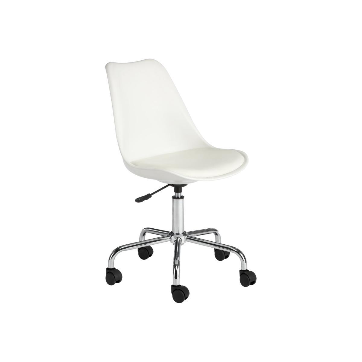 The perfect complement to our desks, the Ginnie white office chair is a simple, timeless design, suitable for adults or teenagers. Available in various colours, the ultra-comfortable chair has a moulded plastic seat with a PU leather upholstered seat pad and a chrome pedestal base on castors. Part of the Ginnie collection. Mounted on castors for easy mobility. Dimensions:W53.5, D48.5cm. Seat height adjustable from 45 to 55cm. Seat size W53.5, D48.5cm. Maximum user weight tested for 110kg. General information:We are excited to be welcoming some of our favourite HOME products into the Habitat range. Your product may arrive in Habitat or HOME packaging. Manufacturer's 1 year guarantee.