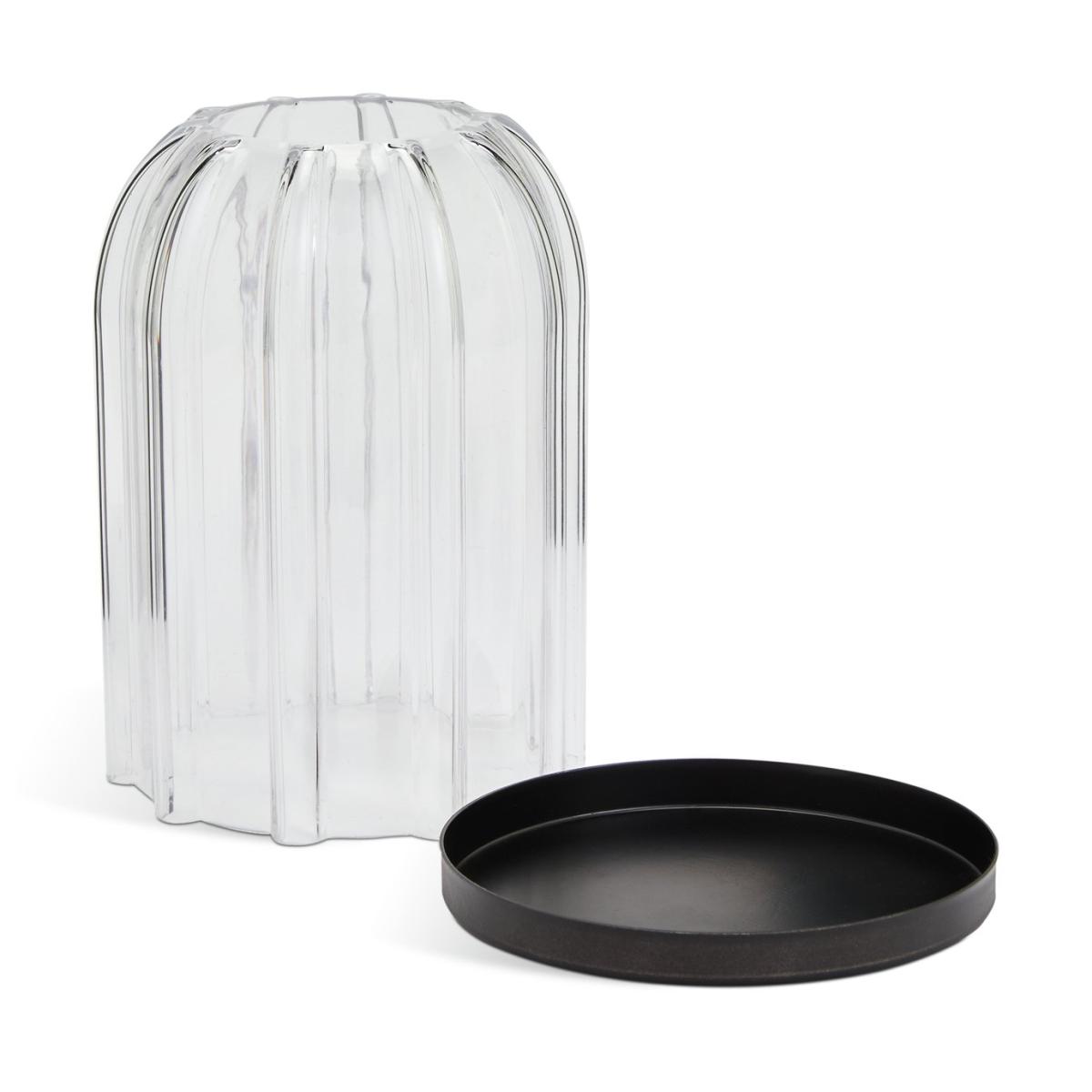 Add character to your space with this ribbed glass cloche. Its luxe design elevates a tealight candle into a showstopper. It works beautifully as an intimate dining table centrepiece. Or as part of a pair to bring a rich glow to a mantelpiece or sideboard. Size H15, Diameter 11cm.