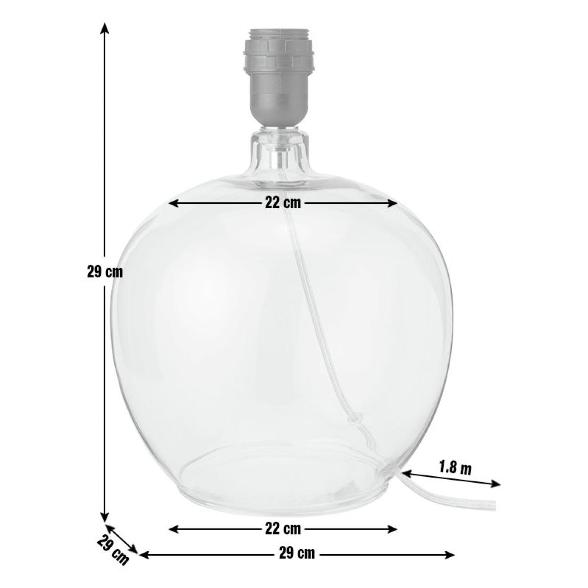 Enjoy a totally different way of viewing a lamp base. In clear glass its curvaceous apple shape has a barely there quality. Top with your choice of shade and you have one transparently stylish lamp. Dimensions: Overall size H29, W29, D29cm. Diameter 22cm. Diameter of base 22cm. Cord length 1.8m. Bulb Information: Bulbs required 1 x globe E27 edison screw LED bulb(s) (not included). Recommended maximum wattage: 10 watts. General Information: Base colour: clear glass. Base material: glass. In-line switch. IP rating 20 - not suitable for bathroom use. Minimal assembly. Product is mains powered plug in. This lighting product is a class 2 fitting. Manufacturer's 1 year guarantee.