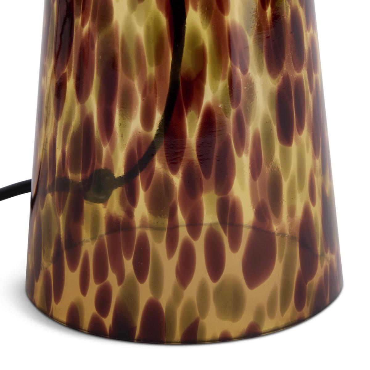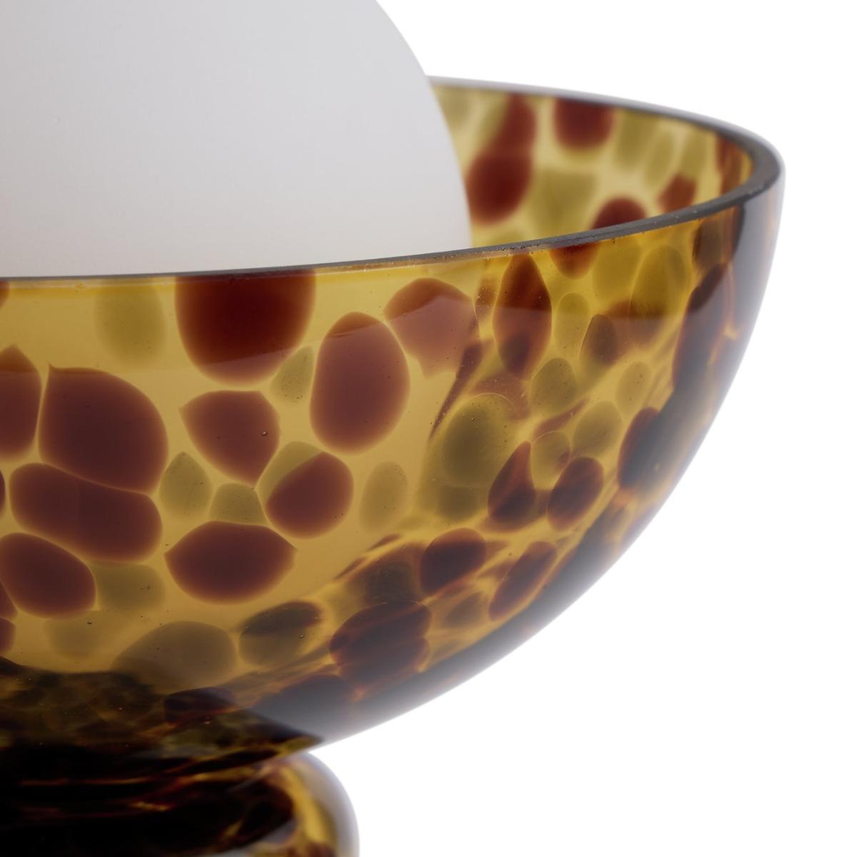 A table lamp or a work of art? Our sculptural tortoise shell glass lamp is a collector's piece. Rich, warm and a touch exotic. And topping it all off is the opaque ball like shade within a shade. One to delight the designer in you. An inline switch makes for easy on, easy off. Dimensions: Overall size H29.5, W15cm. Diameter 15cm. Shade size H9, D9cm. Diameter of base 10.2cm. Cord length 1.8m. Bulb Information: Bulbs required 1 x classic capsule G9 LED bulb(s)(not included). Recommended maximum wattage: 7 watts. LED bulb only. General Information: Shade colour: white. Base colour: brown. Shade material: glass. Base material: glass. In-line switch. IP rating 20. Minimal assembly. Product is mains powered plug in. This lighting product is a class 2 fitting. Manufacturer's 1 year guarantee.