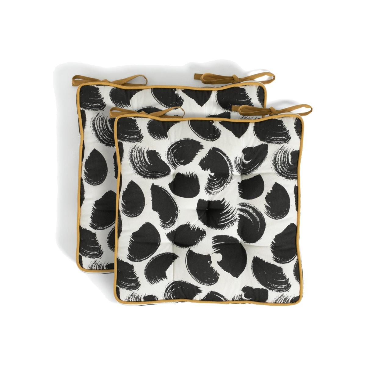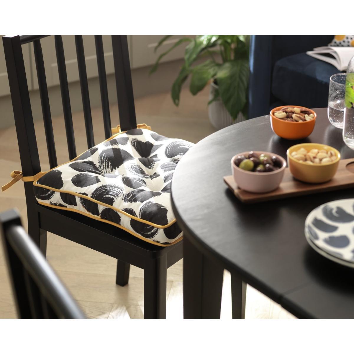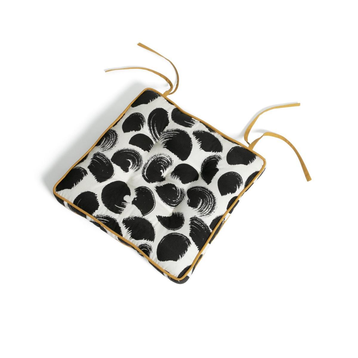 Add a dash of artistic flair to your chairs. Our pair of contemporary cushions features bold black brush strokes and a mustard yellow trim. Wooden seats in need of some love? Give them an instant, comfy makeover with this set of 2. Easy to fit, simply secure with the handy ties. Made from cotton and recycled polyester, they're durable and sustainable too. Now that's sitting pretty. Your turn to host? Pull up a pew with our collection of dining and outdoor chairs.