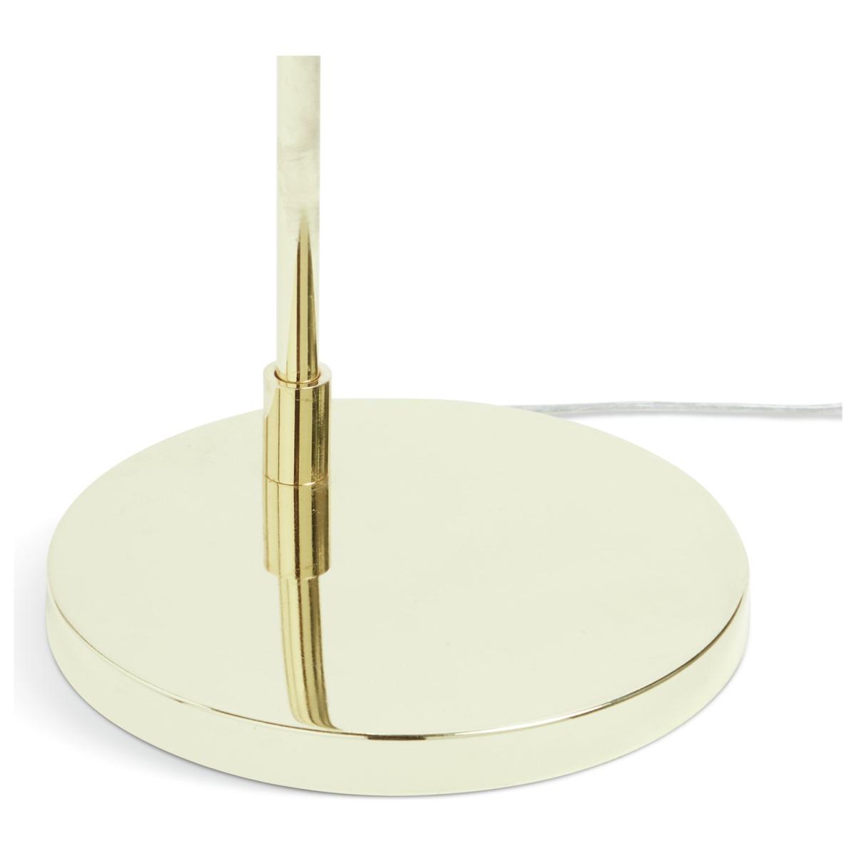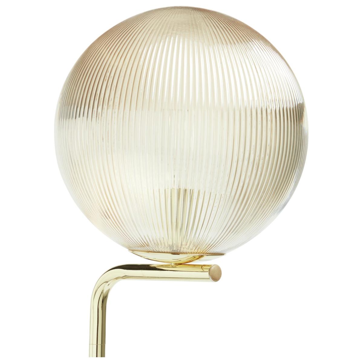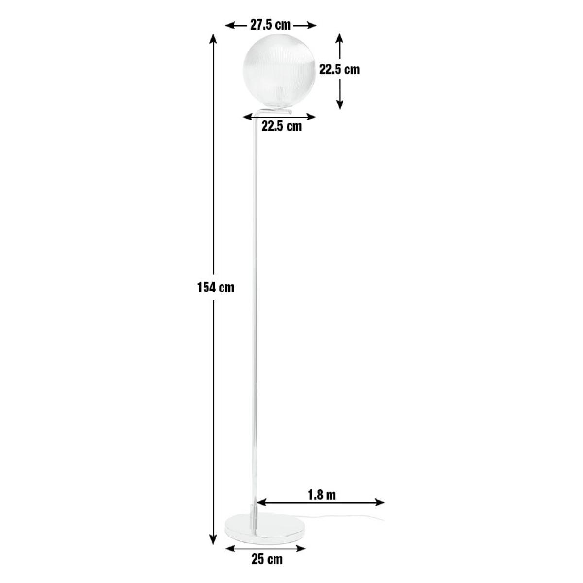 Here's a floor lamp that knows how to shine. Nestled on top of a slender brass stand, the curvaceous champagne ribbed glass shade has an opulent look. While the warm tinted glass diffuses the light, resulting in a softened glow. A touch luxe? You bet. No reaching up to turn this floor lamp on or off. It has a floor switch for easy control. Dimensions: Size H154, Diameter 27.5cm. Diameter of base 25cm. Shade size H22.5, D22.5cm. Cord length 1.8m. Bulb Information: Bulb required 1 x candle E14 small edison screw LED (not included). 6 watts. (bulb not included). LED bulb only. General Information: Foot switch. IP 20 - not suitable for bathroom use. Self-assembly. This lighting product is a class 2 fitting. Weight 4kg. Globe Glass. Manufacturer's 1 year guarantee.