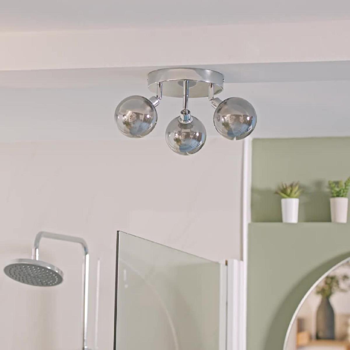 Go for silver. Our flush ceiling light is modern, with smoky glass globes on a polished chrome bar. Bold and beautiful. And an accent fitting you can rely on to bring that feel of architectural flair. It's bathroom friendly too. The perfect match to go with chrome towel rails and accessories. Dimensions: Size H20, , Diameter 41cm. None adjustable cord drop. Bulb Information: Bulbs required 3 x capsule G9 LED (not included). Recommended maximum wattage: 4 watts. Can not be used with a dimmer switch. Alternative bulb required: 3. Recommended maximum wattage: 4watts. LED bulb only. General Information: Metal and Glass. IP rating 44 - suitable for use in the bathroom in Zone 2 and outside zones. Weight: 0.88kg. Minimal assembly. Product is hard-wired into electrics. This lighting product is a class 2 fitting. We are excited to be welcoming some of our favourite HOME products into the Habitat range. Your product may arrive in Habitat or HOME packaging. Manufacturer's 1 year guarantee.