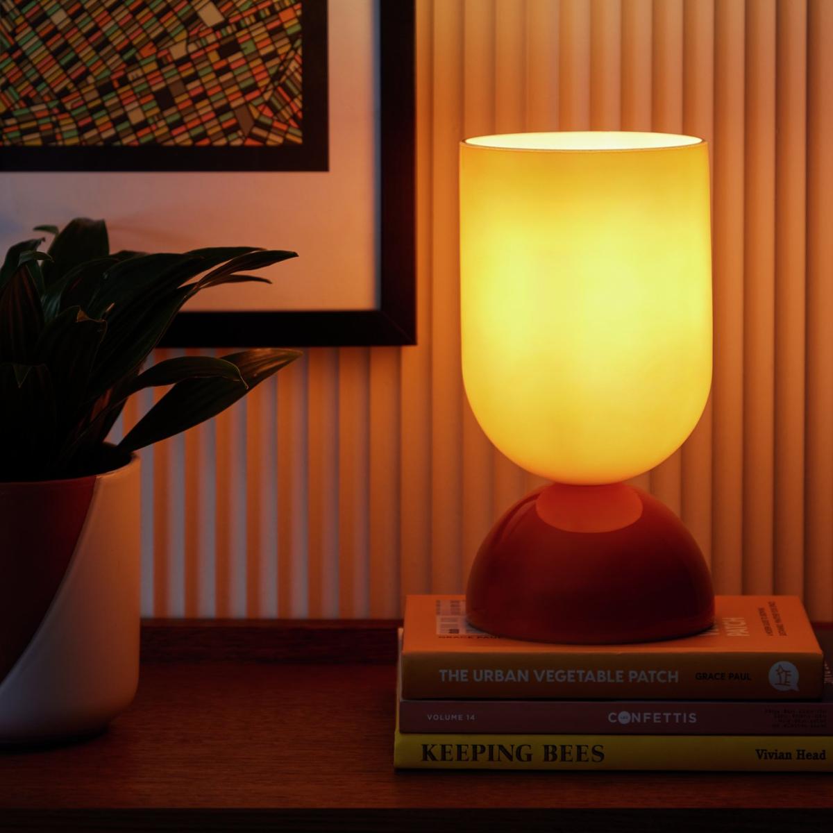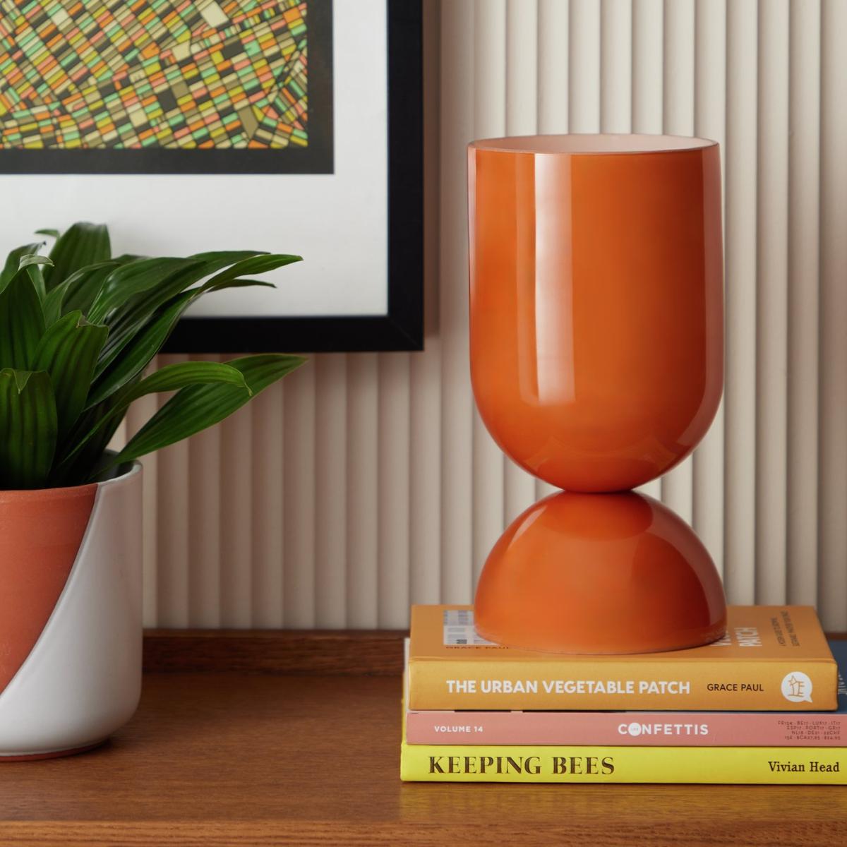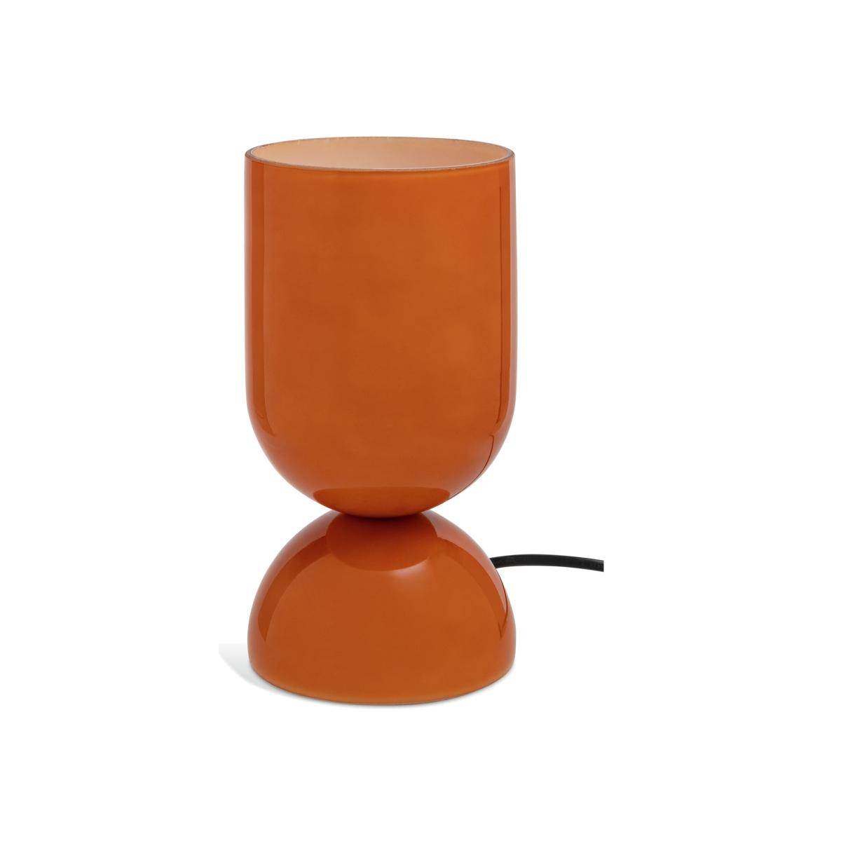 Put a mid-century modern design in the spotlight. Warm and inviting, our curvaceous glass table lamp is resoundingly retro. Rich orange on the outside, opaque on the inside. That's a soft cozy glow guaranteed. An inline switch means the sculptural design is not compromised. Dimensions: Overall size H22.7, Diameter 11.8cm. Shade size H16.2, D11.8cm. Diameter of base 11.8cm. Cord length 1.8m. Bulb Information: Bulbs required 1 x E14 small edison screw LED bulb(s) (not included). Recommended maximum wattage: 10 watts. General Information: Shade colour: orange. Base colour: orange. Shade material: glass. Base material: glass. In-line switch. IP rating 20 - not suitable for bathroom use. Fully assembled. Product is mains powered plug in. This lighting product is a class 2 fitting. Manufacturer's 1 year guarantee.