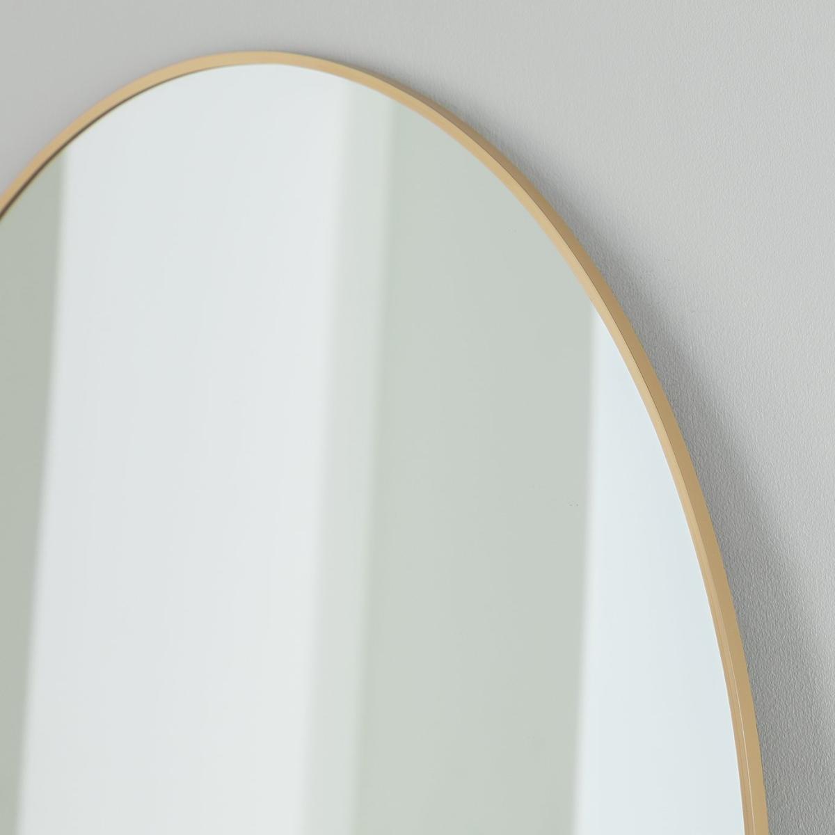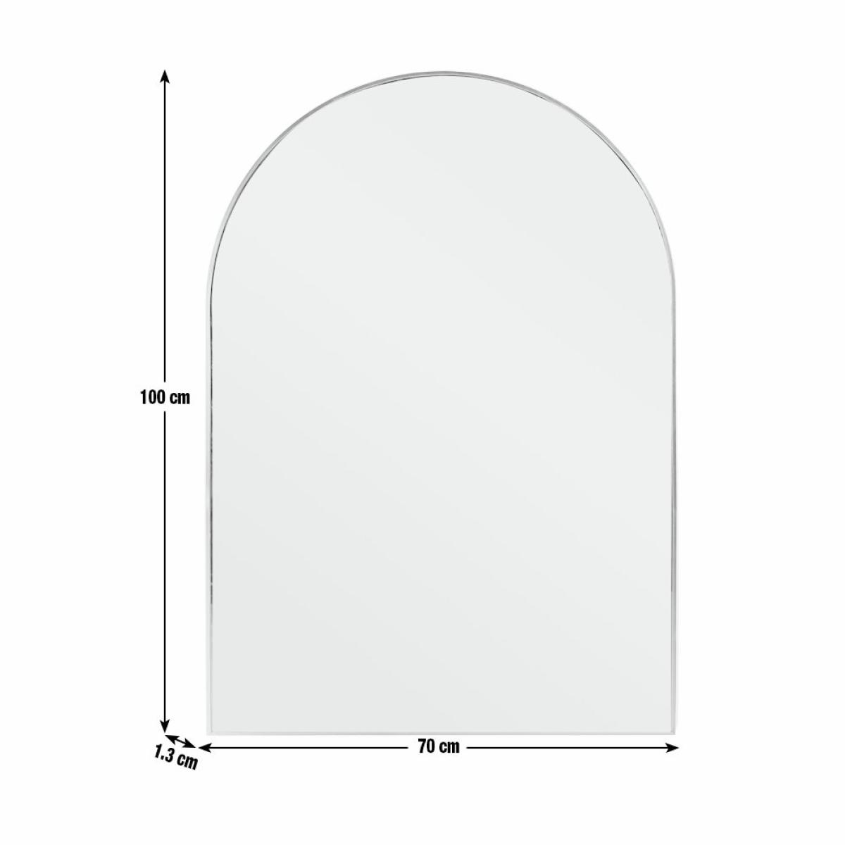 This gold aluminium mirror opens up your space and bounces the light to add a little wow wherever it's hung. Designed with a slim frame and gentle arch to give it that modern and sculptural look. Size H100, W70, D1.3cm. Frame material: Metal. Hanging fixture type: Keyhole. Wall mounted mirror. Can be hung vertically only. Total weight: 7.73kg. Fully assembled. Distance between fixings 39.6cm. General information: By choosing FSC certified products, you are supporting responsible management of the world's forests.