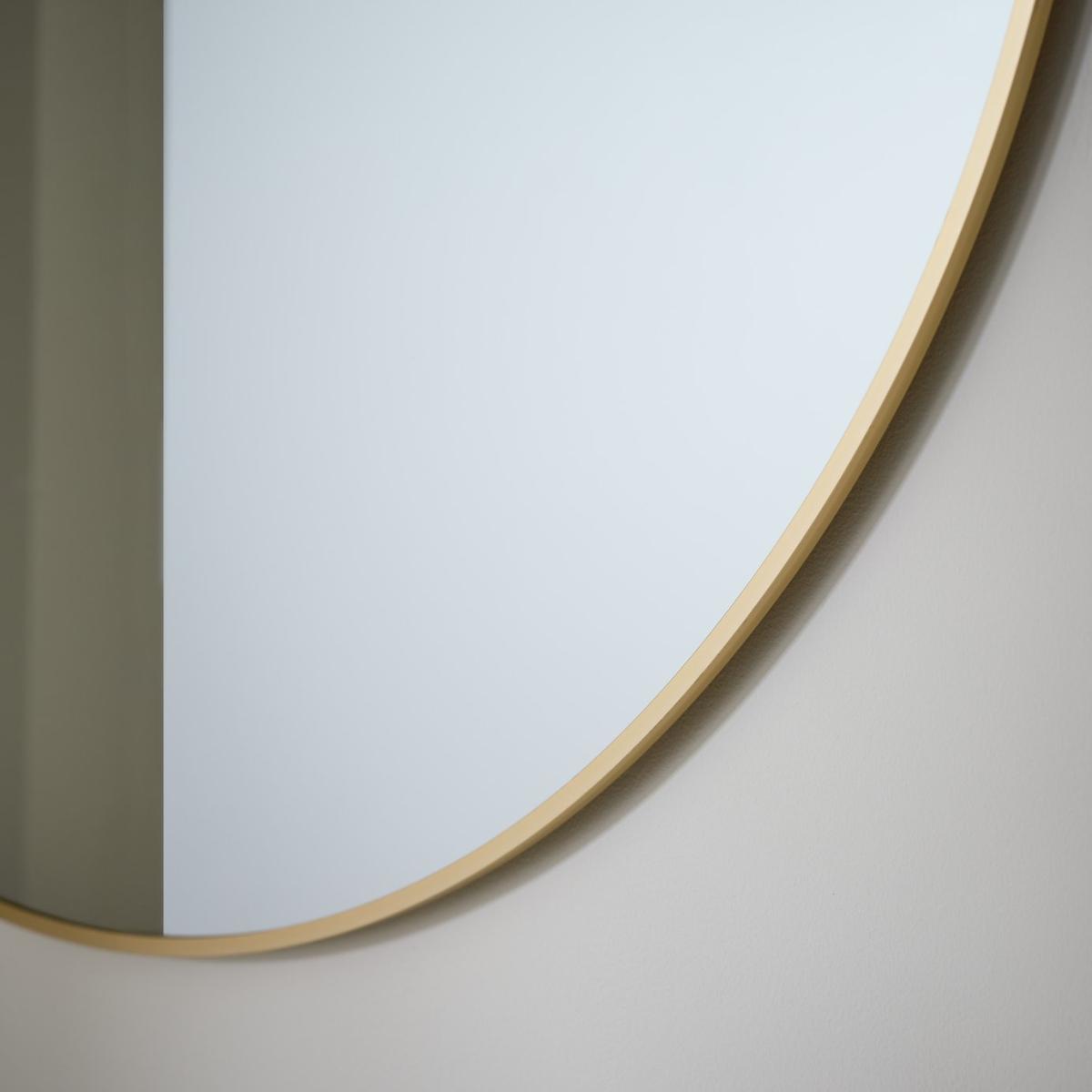 Well rounded. In every sense. This perfectly circular 80x80 mirror softens a space and enhances a wall. In a slim gold aluminium frame, it's ideal in a hallway for a last-minute-leaving glance, or in the bedroom or bathroom where good lighting (and good mirrors) matter. Simple, sculptural and always in style. Size H80, W80, D1cm Diameter 80cm. Frame material: Metal. Hanging fixture type: Keyhole. Wall mounted mirror. Total weight: 7kg. Fully assembled. General information: By choosing FSC certified products, you are supporting responsible management of the world's forests.
