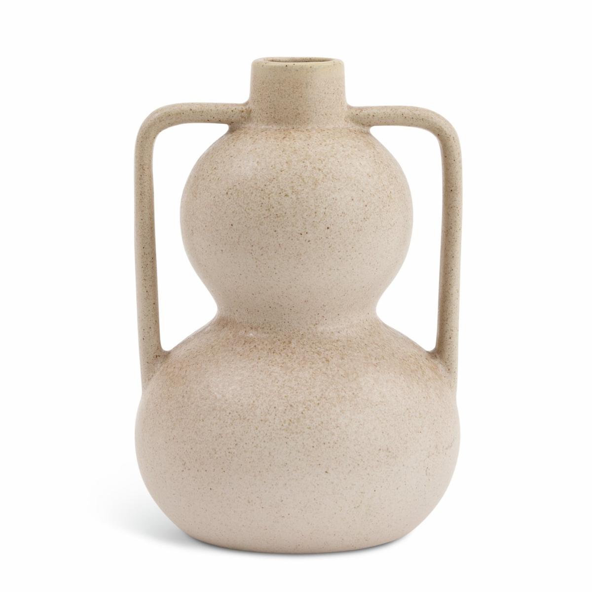 Curves that catch the eye. Texture you'll want to touch. Shaped like a gourd with an easy to grab handle and finished with a speckled glaze, this vase is a piece of ceramic art. Looks fabulous when you add a few fresh blooms. Or sits comfortably as a sculptural piece on its own. Natural, tactile and cool. Size H25, Diameter 17cm.
