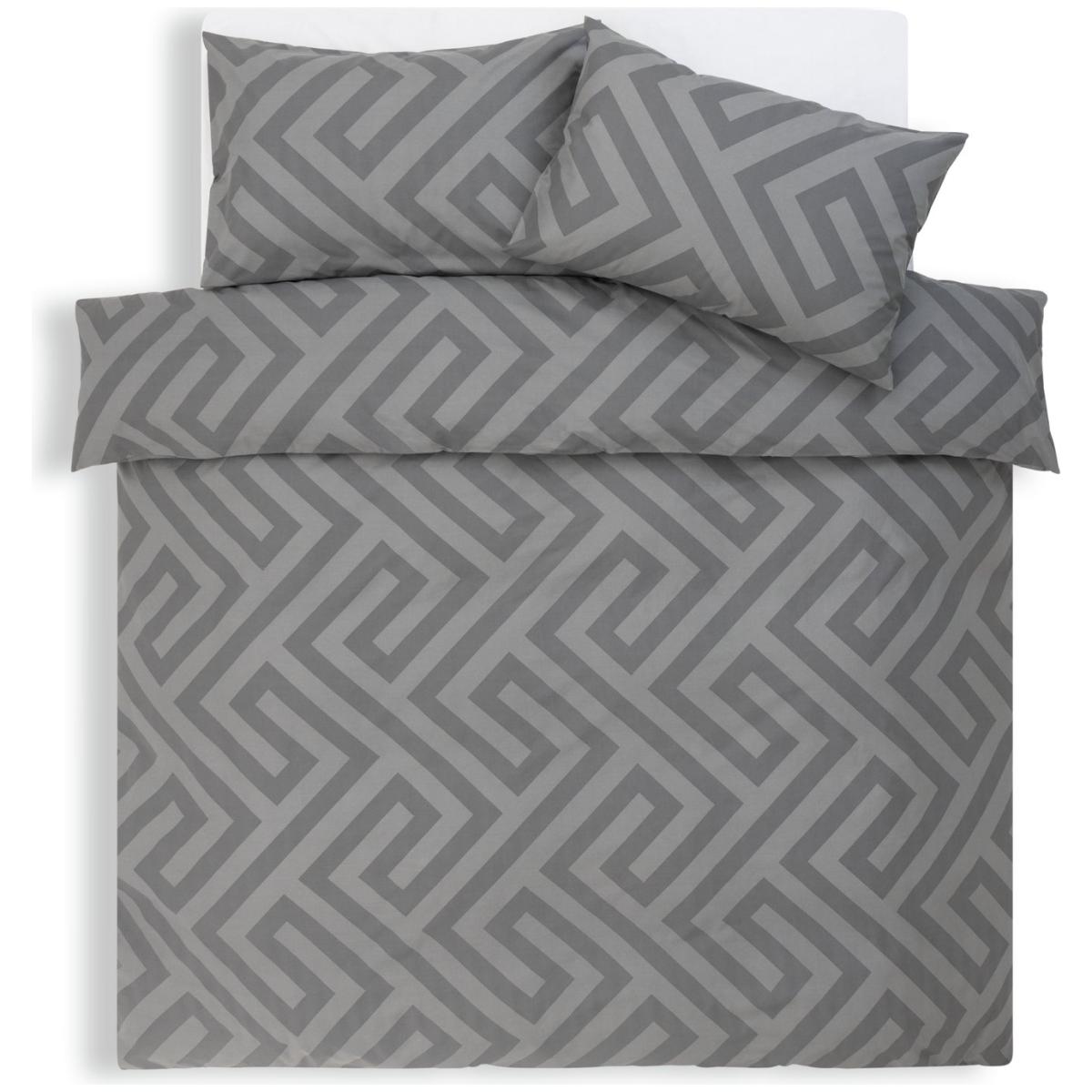 Geo print meets neutrality. Bold lines and muted colours come together in this light and airy bedding set. Soothingly sleep worthy. This item carries the STANDARD 100 by OEKO-TEX logo, which means you can be certain that every component has been tested for harmful substances and is therefore harmless to human health. Finish: woven. 50% cotton , 50% recycled polyester. 144 thread count. Set includes 1 duvet cover and 2 pillowcases. Bed size: double. Length 200cm, Width 200cm. Standard pillowcase (s). Pillow case length 75cm, Width 50cm. Reversible pillowcase (s). Machine washable at low temperature. Suitable for tumble drying.