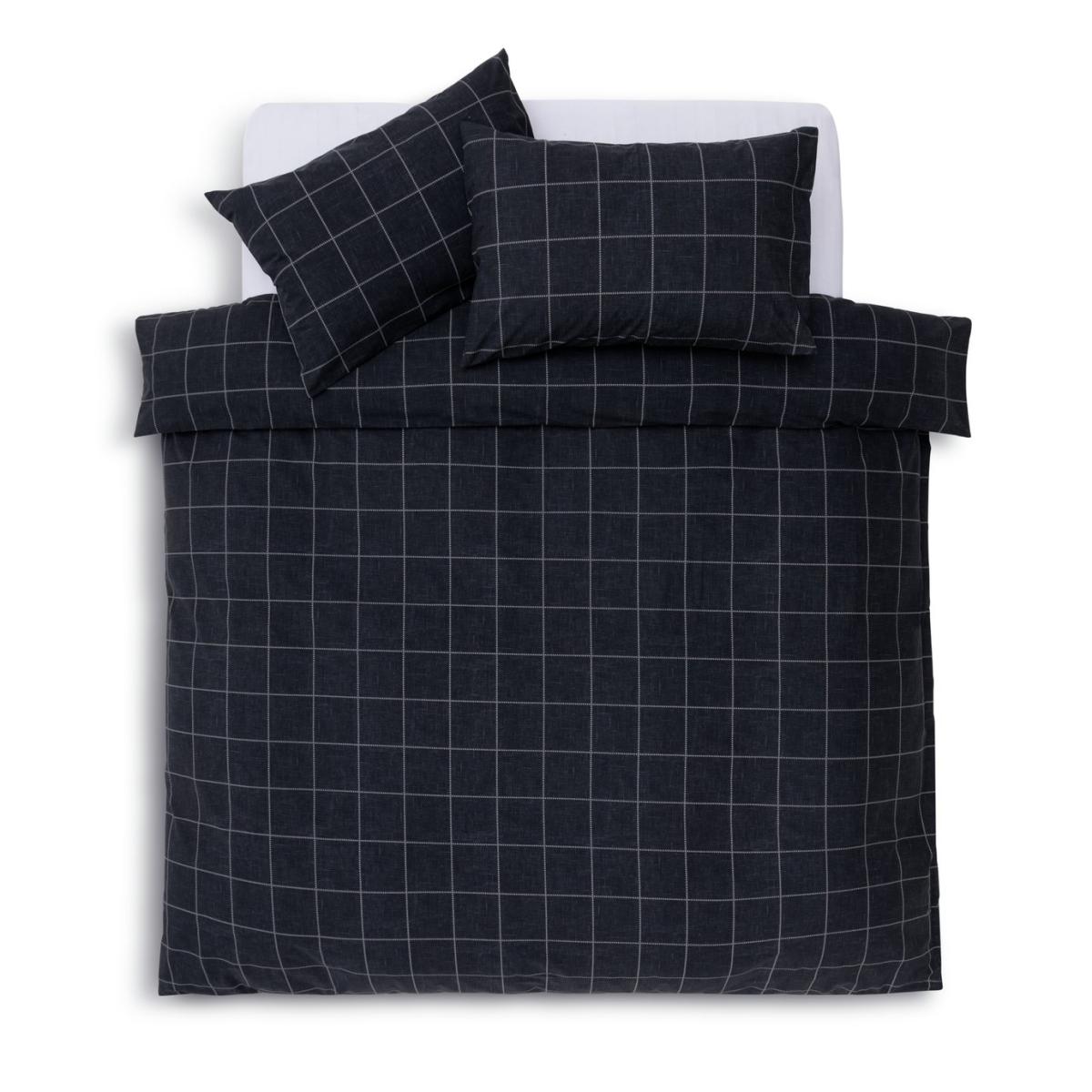 Our country style duvet set is made for snuggling. Classic in design, the dark blue base colour is an ideal backdrop for the contrasting chevron gridline. A comforting look that's cosy and inviting. 52% polyester , 48% cotton, 1006619%. 1006619% , 1006619%, 1006619%. 144 thread count. Set includes 1 duvet cover and 2 pillowcases. Bed size: king size. Length 220cm, Width 230cm. Standard pillowcase (s). Pillow case length 75cm, Width 50cm. Machine washable at low temperature. Suitable for tumble drying.