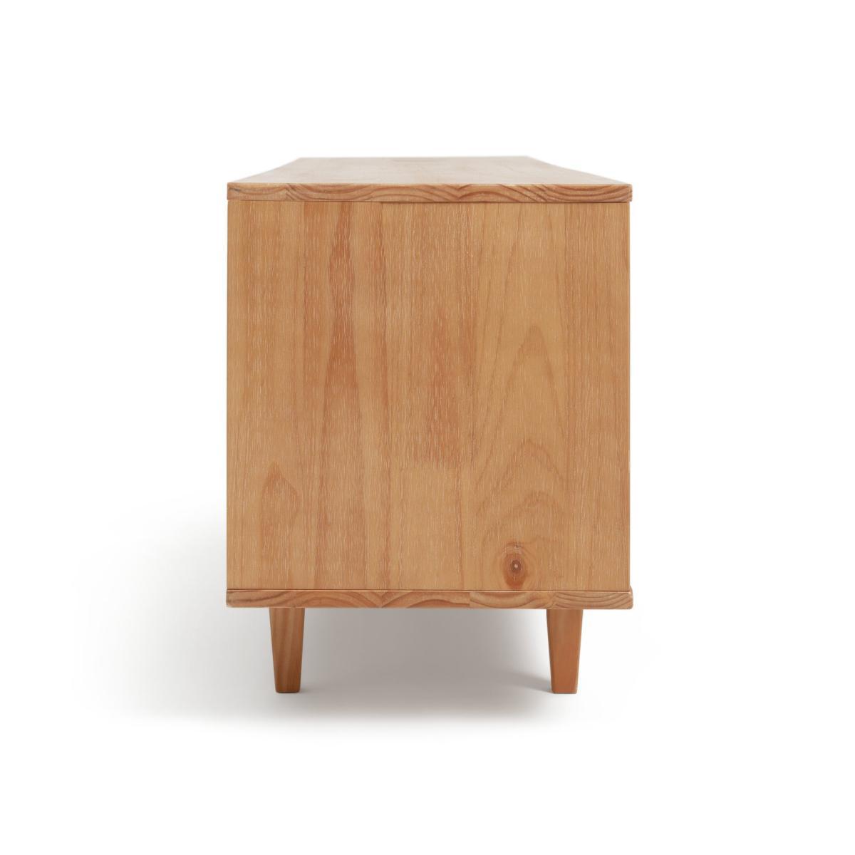 Natural, neutral and groovy! We love the skillfully carved grooves in the pine doors of this sideboard. The look is designer, without the price tag. There's a nod to Skandi style in the tapered legs and the natural oak is neutral so suits most decors. With push to open doors for a flush, handle free look. Amazing storage space too.