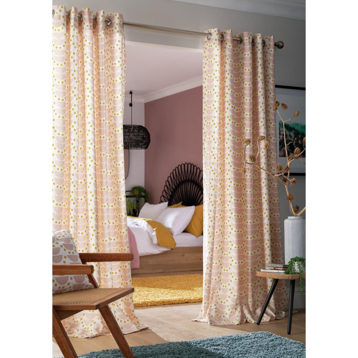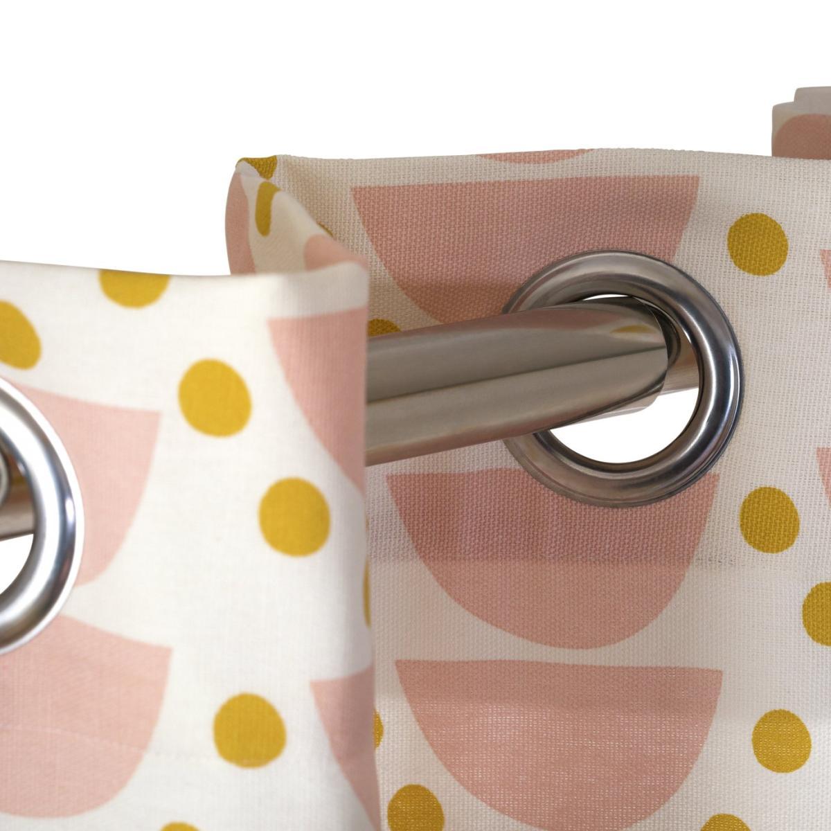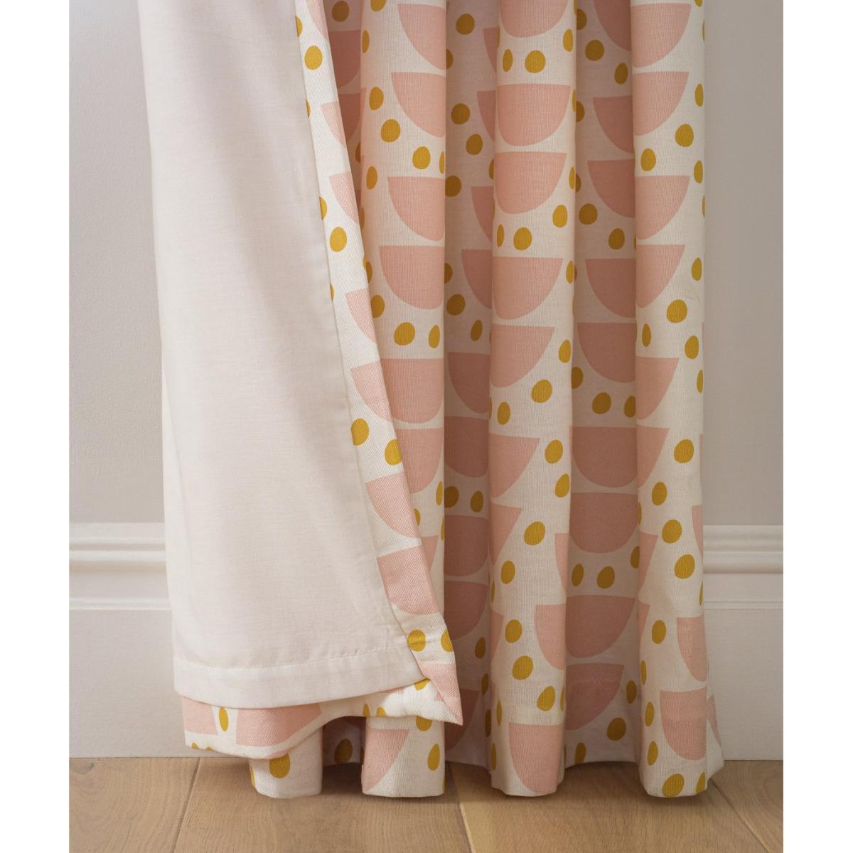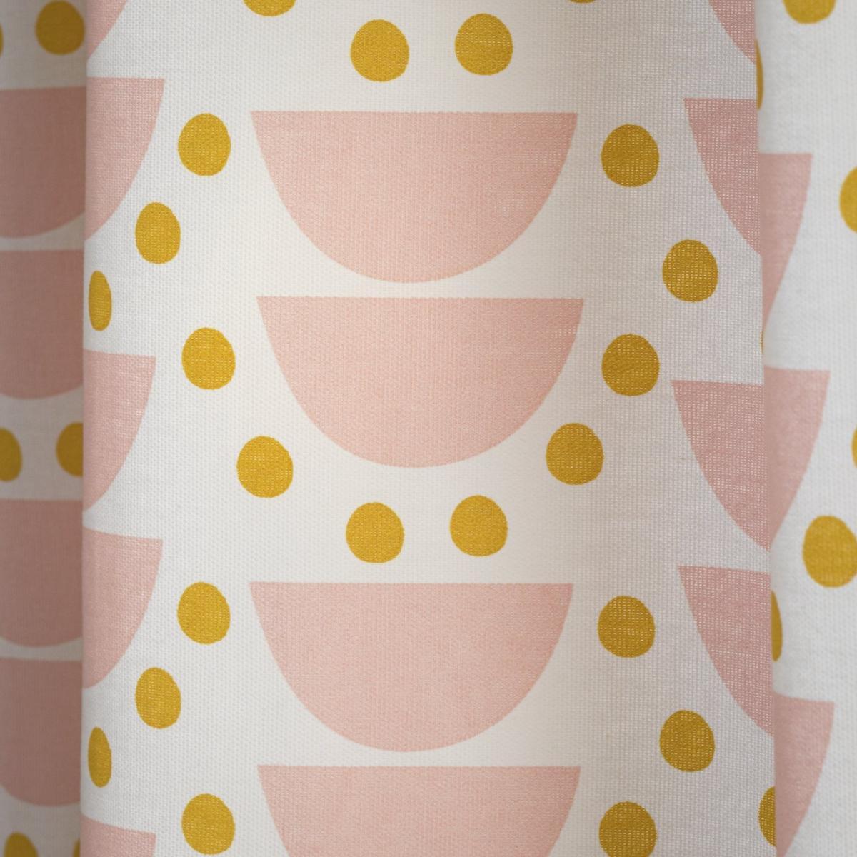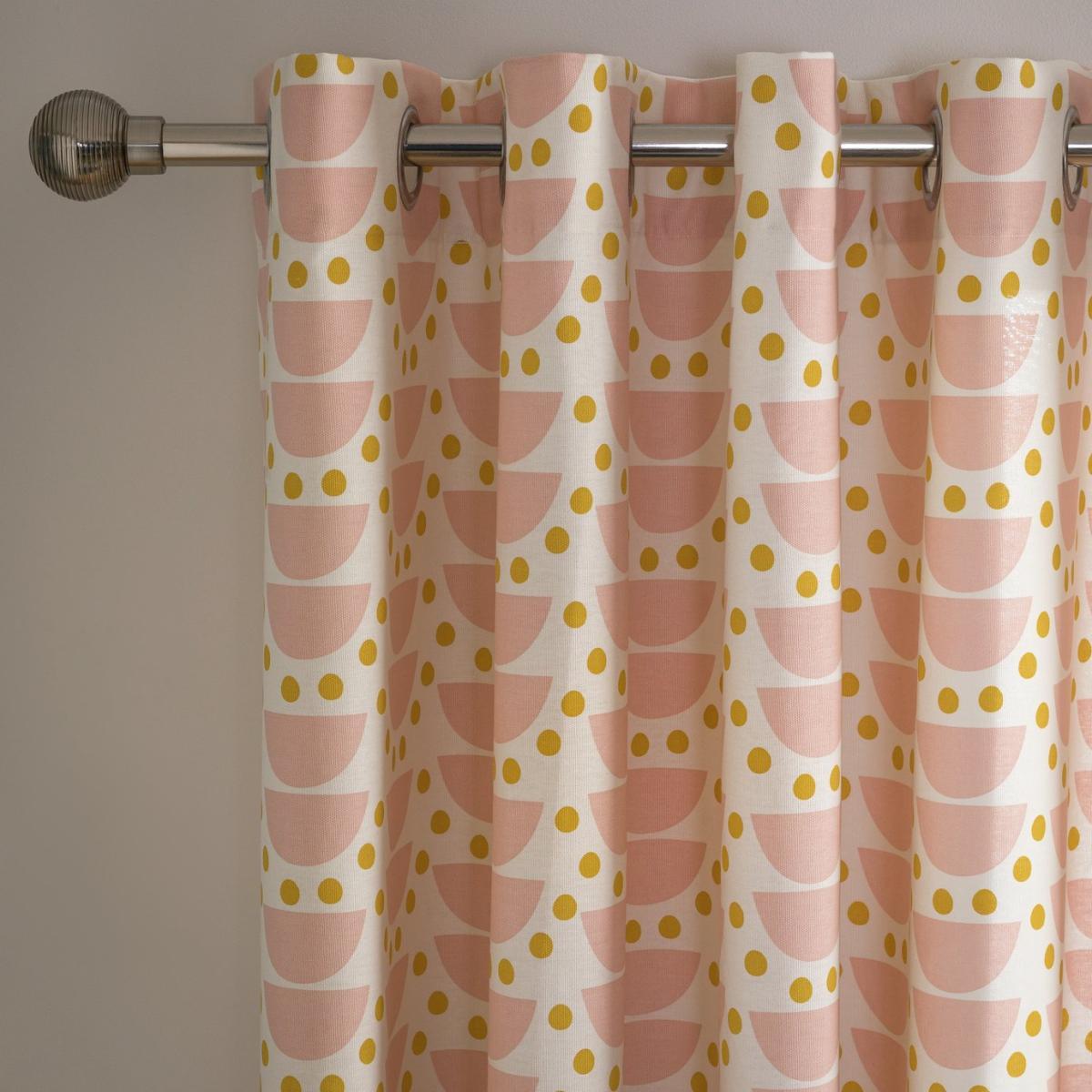 We're over the half-moon with these curtains. Pretty pink semi circles dotted with vibrant spots make this pair a funky, fashionable choice. Made from 100% cotton, these steel eyelet curtains are fully lined. That means they'll feel good and hang nicely, falling into soft folds. And they're a doddle to put up. Just thread onto your curtain pole and voila! Instant geo gorgeousness.