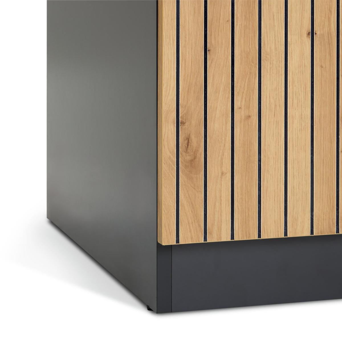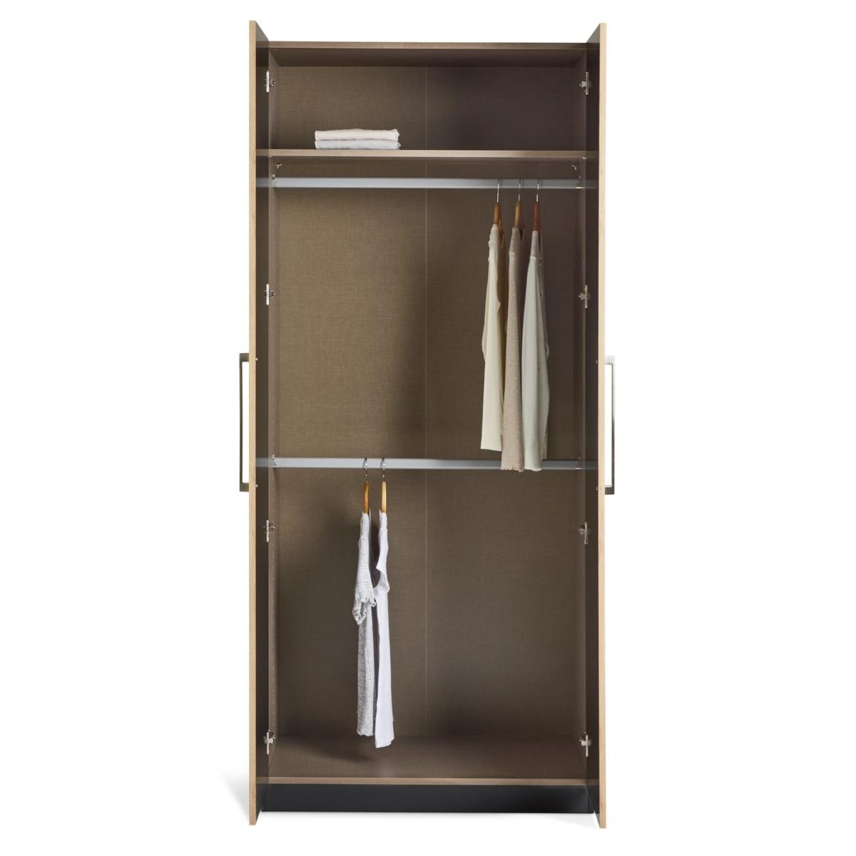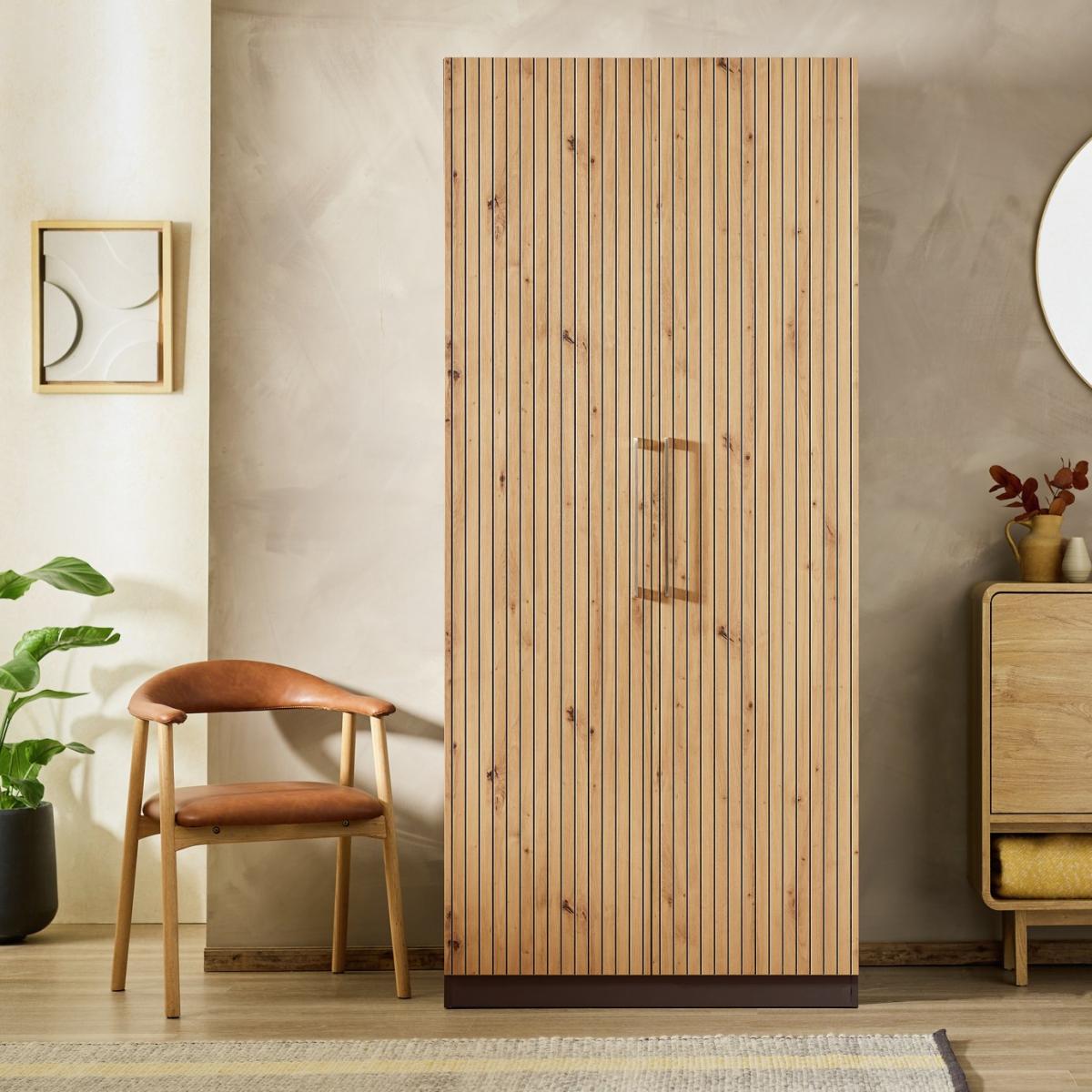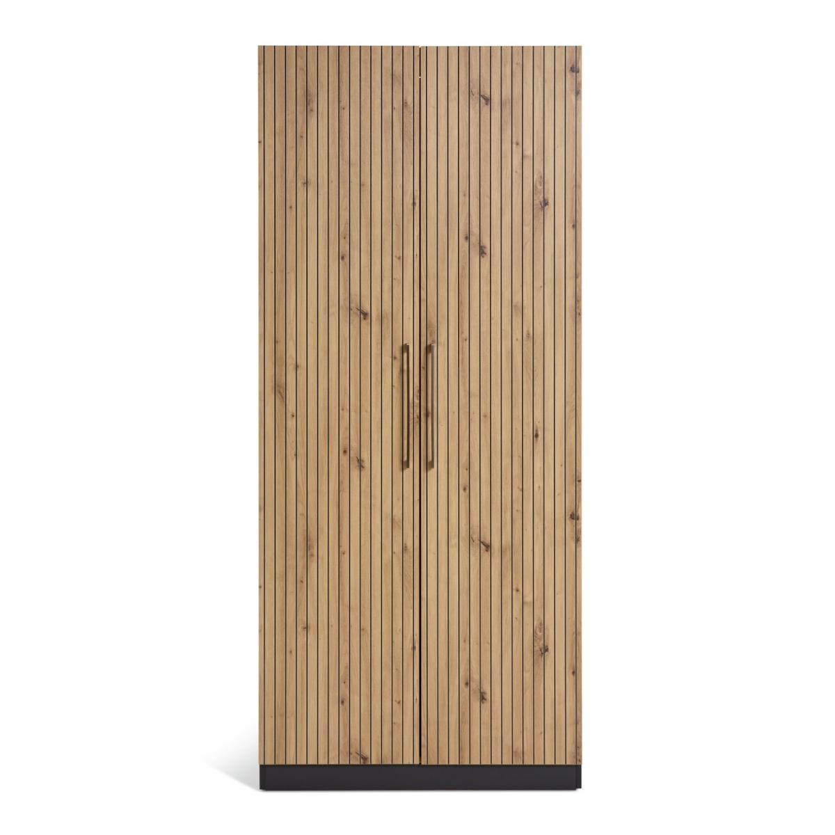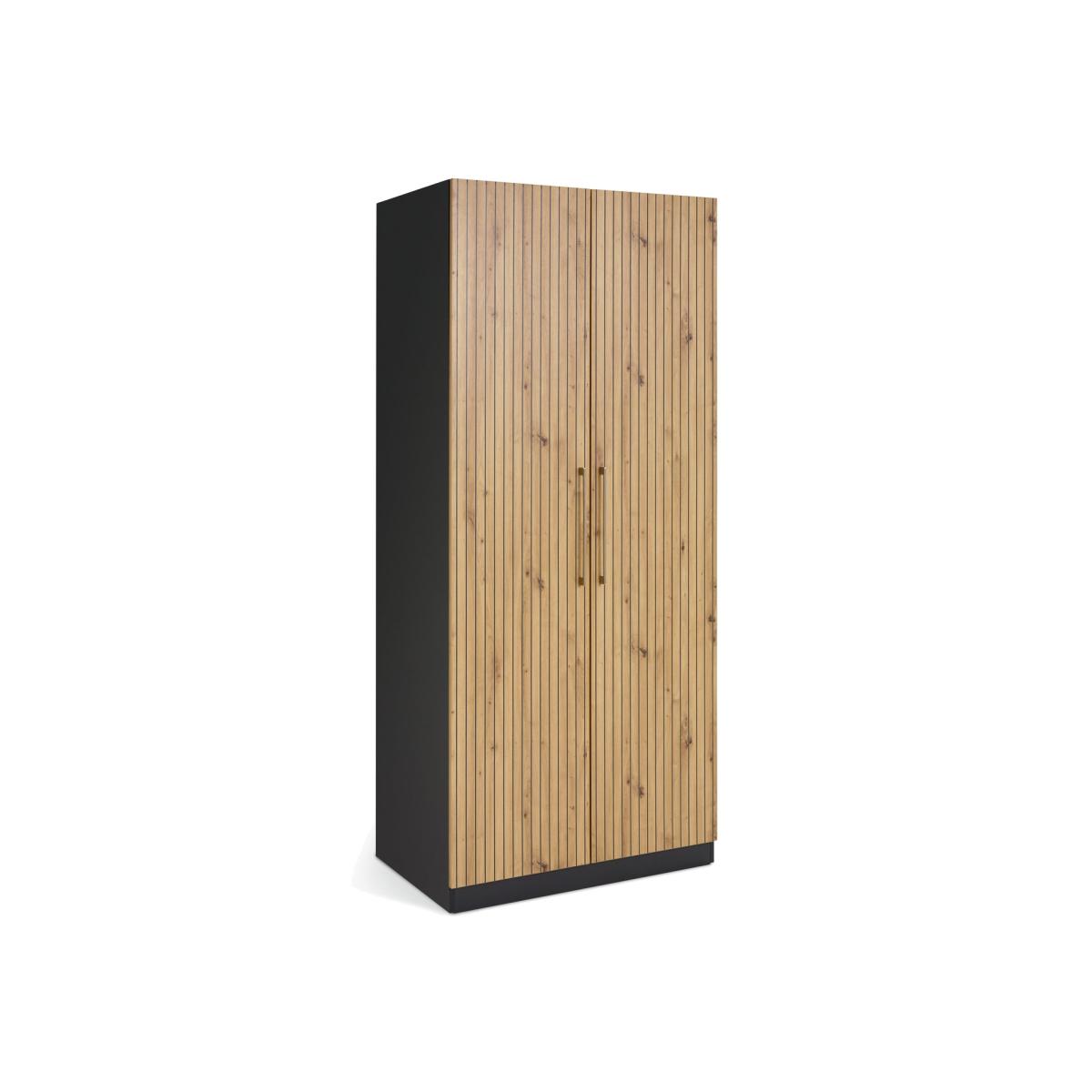 A 2-door wardrobe, in natural and anthracite, it's got the special designer creds. Super practical with 2 adjustable hanging rails and an adjustable top shelf for a secret stash. And a grab handle positioned for easy reach. A design you'll love to hang out with. Part of the Hamburg collection. Made of MDF and particleboard. Metal handles. Additional handles not included. 2 doors. 4 adjustable hanging rails. Hanging rail holds up to 15kg. 1 adjustable shelf. Self-assembly - 2 people recommended (includes wall fixings). If this product is over 60cm high it must be securely attached to the wall to prevent overturning. Dimensions: Size H202.6, W90.6, D58.3cm. Internal hanging space H190, W87.9, D55.5cm. Handle size: L32.5, W0.8cm. Weight 75kg. Package Dimensions: Package 1 dimensions: H8.4, W236.8, D63.7cm. Package 1 weight: 52.5kg. Package 2 dimensions: H3.8, W216.2, D54.3cm. Package 2 weight: 12kg. Package 3 dimensions: H3.8, W216.2, D54.3cm. Package 3 weight: 12kg. General information: FSC certified meaning the materials used for this product are responsibly sourced.