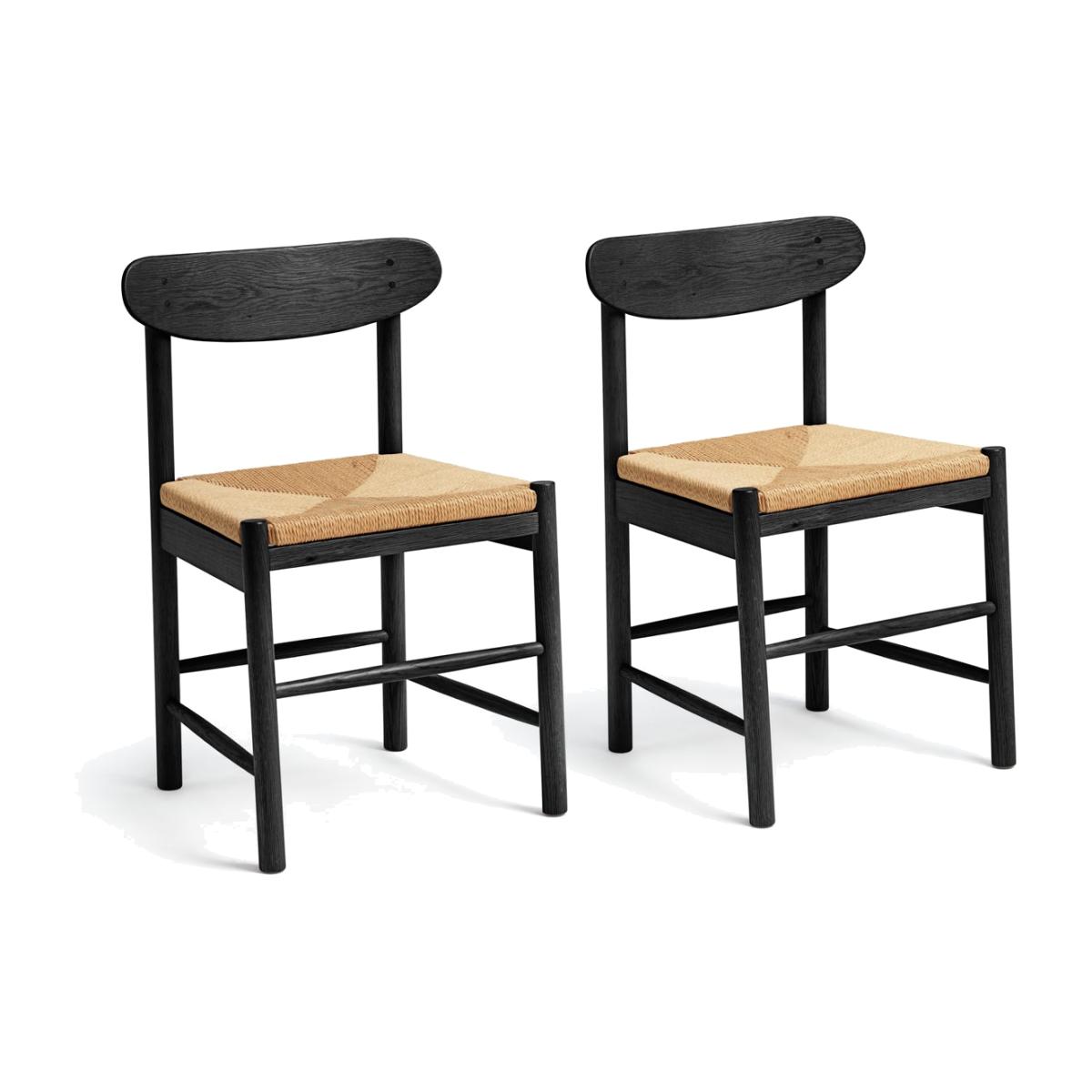 Our set of 2 wooden dining chairs bring stylish simplicity to the table. A strong, square frame gives this natural pair a classic country look. And their black painted finish adds a modern twist. With a natural handwoven seat pad and curved backrest, you'll be comfy and supported while you dine, drink and chat. Settling in for seconds? Why not. Hanna loves to switch things up. We've got a 3 different finishes to choose from, so take a peek and pick your fave.