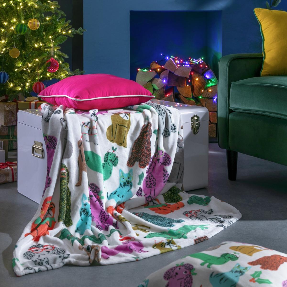 Habitat Happy Howlidays Dog Print Throw - Multi - 125x150cm