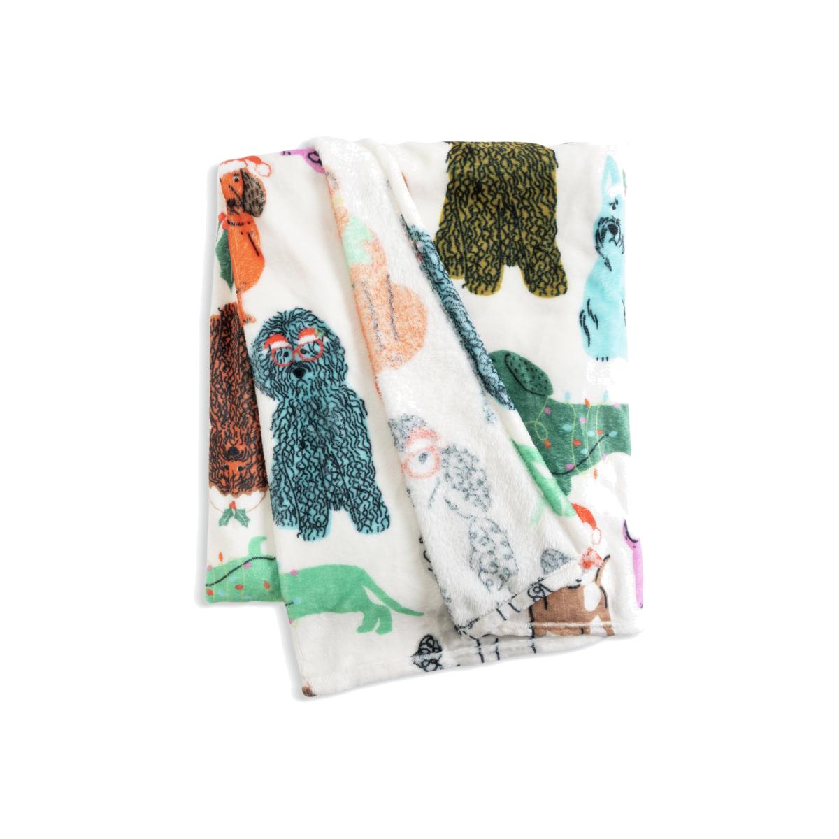 Yappy Christmas. Designed to raise a few smiles, every dog lover will want this comfy canine Christmas throw. Give it as a gift and you might just have a new best friend. Fleece. 100% polyester. Size L125, W150cm. Machine washable. Suitable for tumble drying.