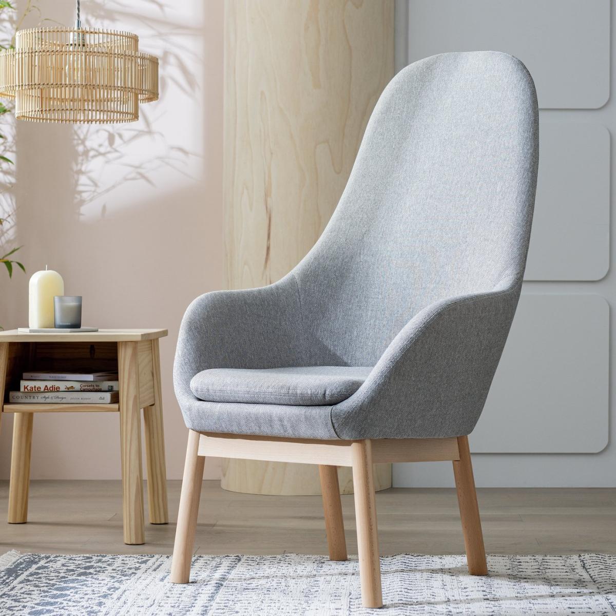 Hare, our unbelievably comfy chair. A Habitat exclusive by Will Hudson. Designed with a seamless open form, natural soft hemp filling, gently curved back and solid beech frame. Very desirable, very minimalist, very scandi. Part of the Hare collection. Material: Made from 100% polyurethane. Wooden feet. Removable seat with foam filling. Removable cushion(s) with foam filling. Dimensions: Size H115, W71, D75cm. Floor to seat height: 44cm. Depth of seat: 50cm. Height of seat back: 80cm. Width of seating area between arms: 60cm. Height of arm rest: 60cm. Weight 12kg. Dust or wipe with a damp cloth only. Minimal assembly - just add feet. Maximum individual user weight 110kg. Packaged dimensions: Package size H88, W73, D75cm. FSC certified meaning the materials used for this product are responsibly sourced.