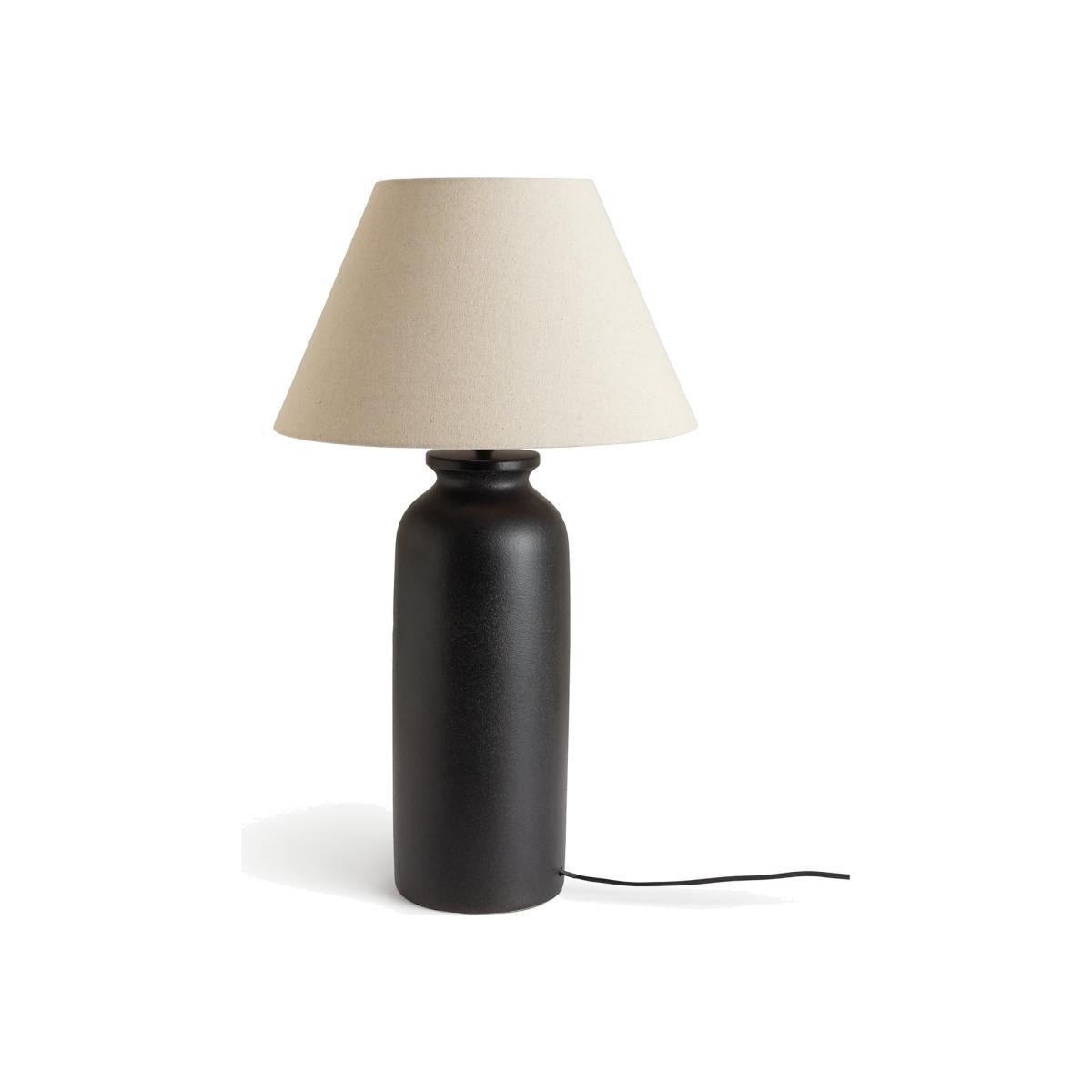 Take a shine to matte black. Our Hashi canister-shaped lamp is a modern take on traditional style. A rough, rustic glaze gives the ceramic base a tactile texture. Paired with its neutral shade it has a contemporary feel. Pop it on your sideboard with some prints and plants for a look that's right on trend. Irresistibly tall dark and handsome.