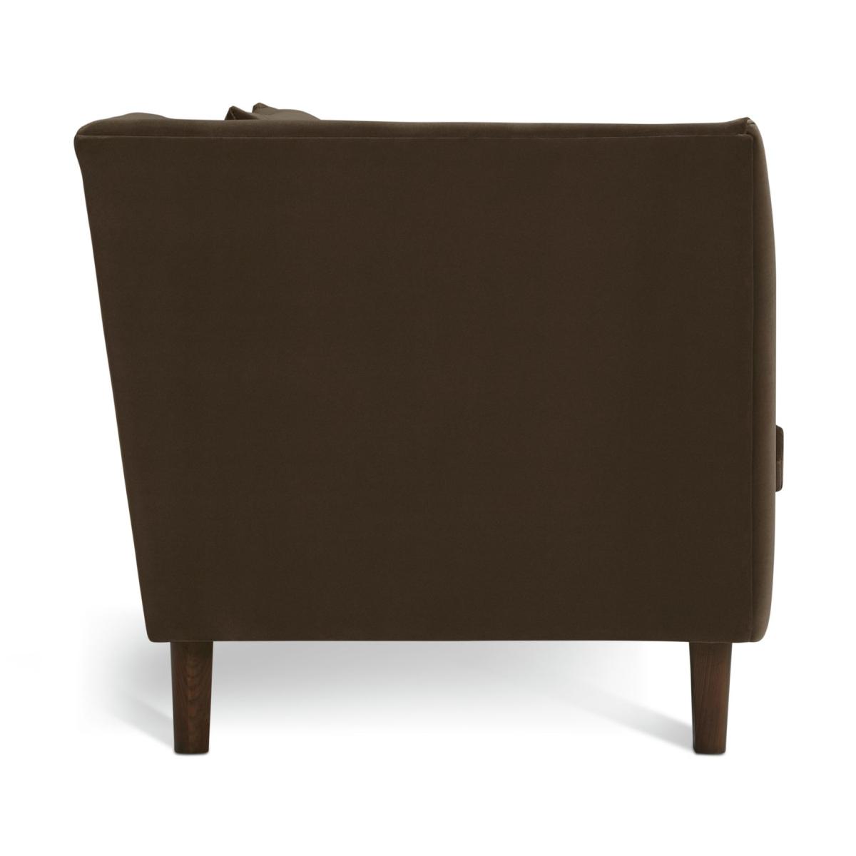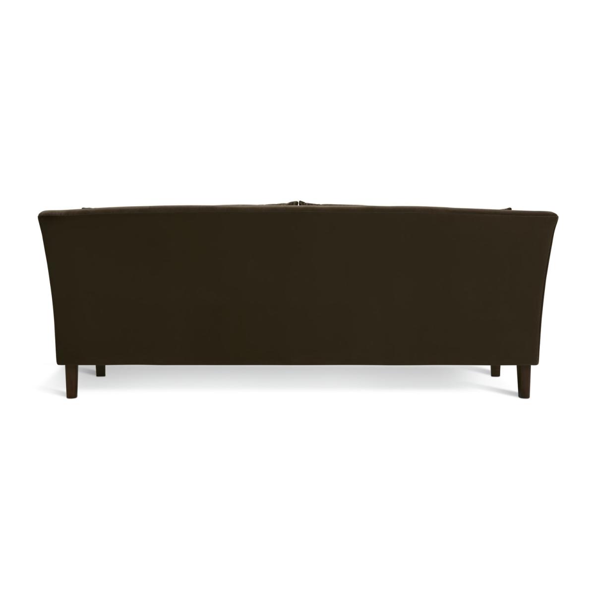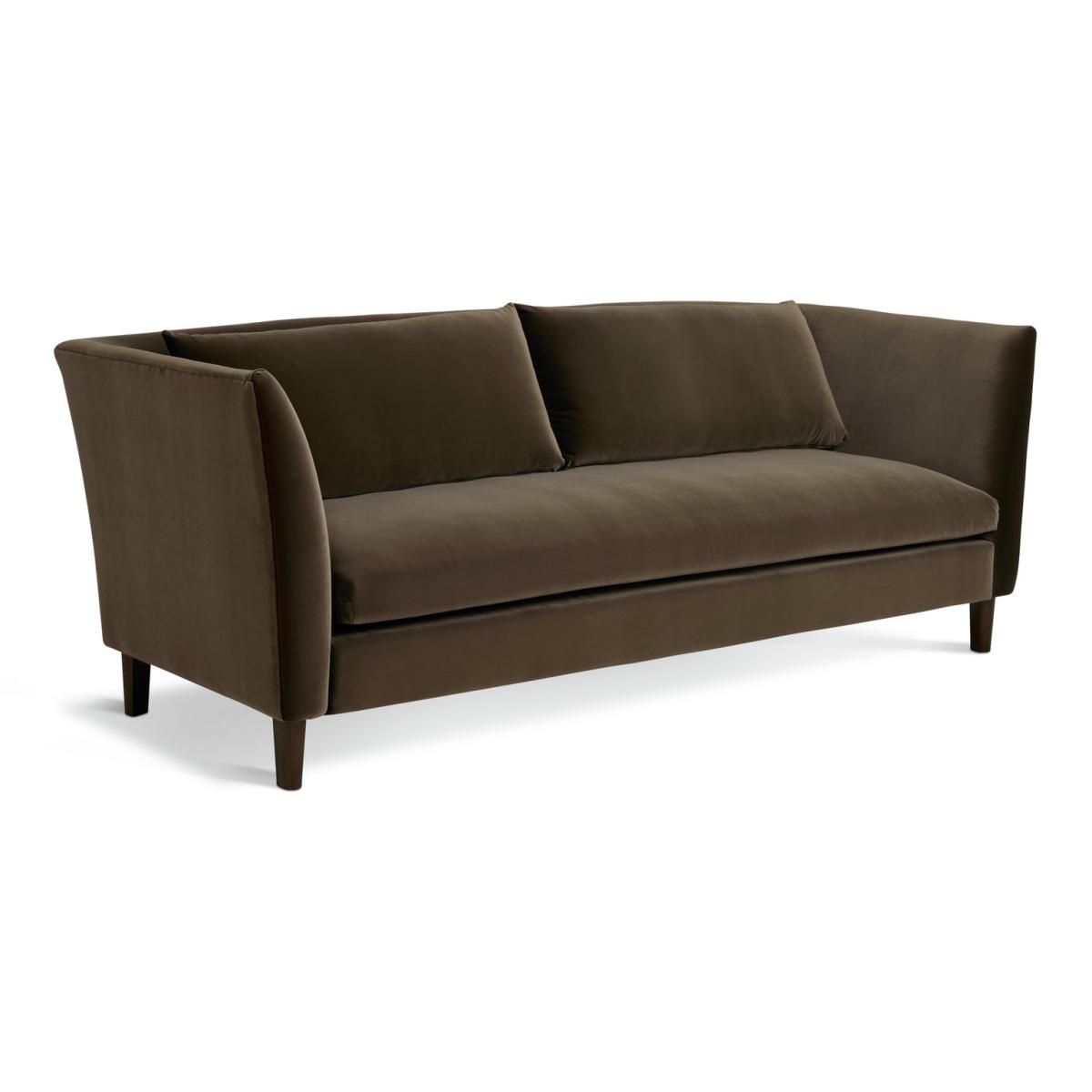 Hawley is a rich brown velvet sofa that stands out from the crowd. Borrowing from art deco design it has curves in all the right places. Two loose cushions lean on the sweeping contours of the one-piece backrest. Combine that with the fixed seat and you've a comfy and supportive 3-seater sofa. Beneath the gentle base, dark wooden feet seal its luxurious looks. Part of the Hawley collection. Material: Made from 100% polyester. Wooden feet - walnut. Soft seat cushions. Removable seats with foam filling. Removable cushion(s) with fibre filling. Free fabric swatch available on this line. Dimensions: Size H83, W226, D93cm. Floor to seat height: 48cm. Depth of seat: 55.6cm. Height of seat back: 72cm. Width of seating area between arms: 189cm. Height of arm rest: 83cm. Weight: 54kg. Packaged dimensions: Package size H72, W228, D95cm. General information: FSC certified meaning the materials used for this product are responsibly sourced. Wipe clean. Plump cushions regularly to maintain shape. Self-assembly - just add feet. Maximum individual user weight: 110kg. Manufacturer's 10 year frame guarantee.