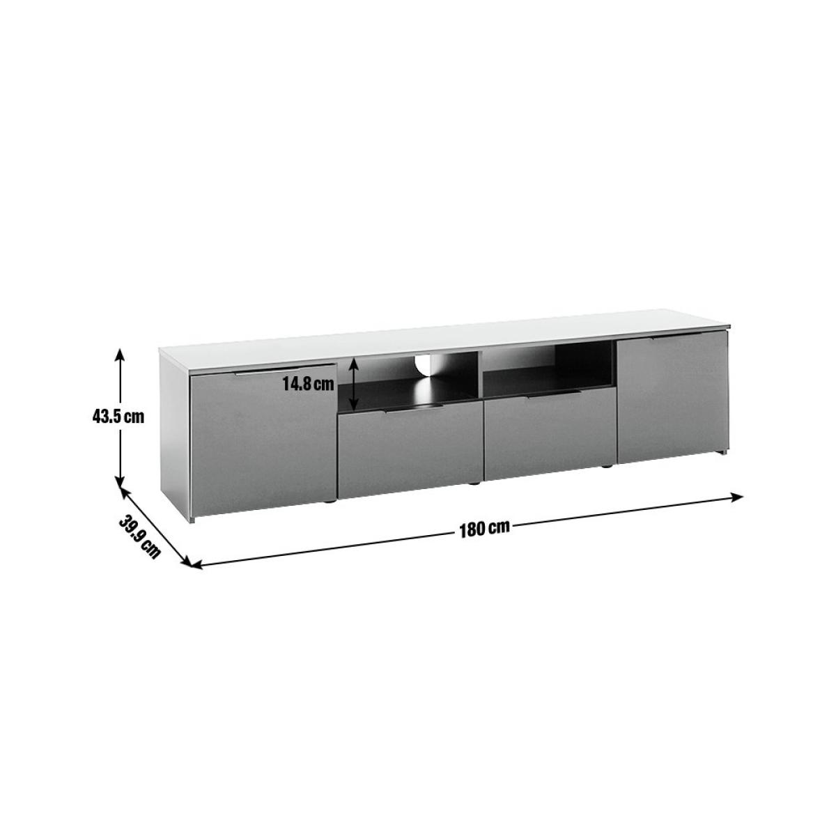 Sleek, smart and smooth. The Habitat Hayward collection's gloss finish makes it a fresh and fashionable choice. This extra wide TV unit lives to serve. With open shelving in the centre, you can get your TV box and games console set up in no time. Bit of a television connoisseur? No problem. Those of us that love a big screen will be happy to know that this stand can hold a TV of up to 75 inches. Keep clutter at bay with the two cupboards either side. Its finished with bow handles in a chrome shine. Perfectly polished.