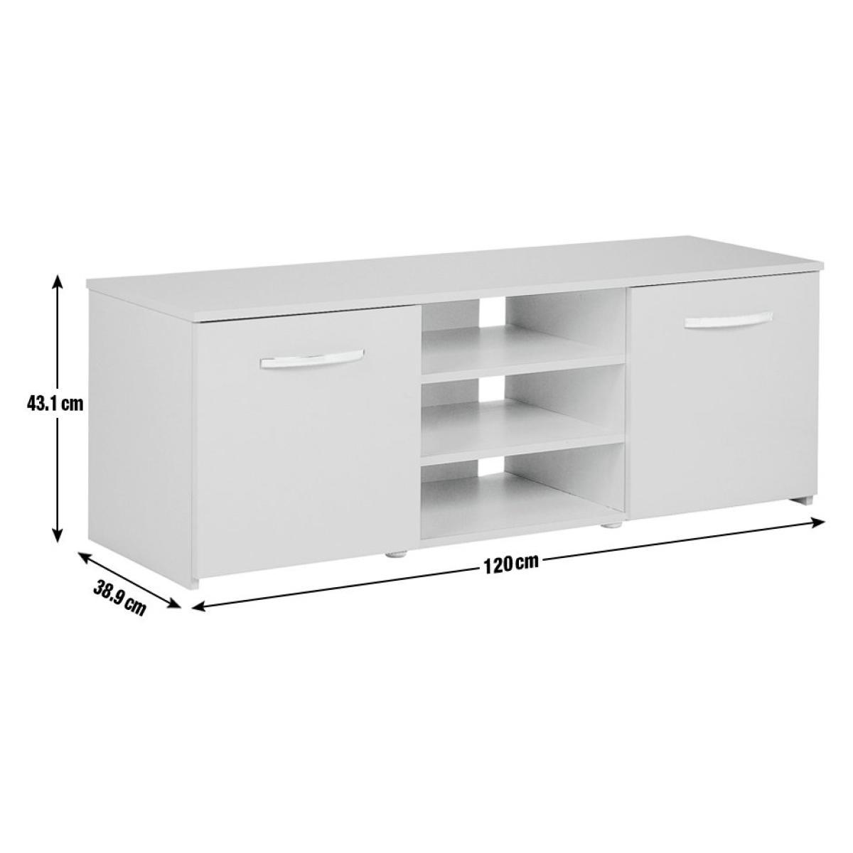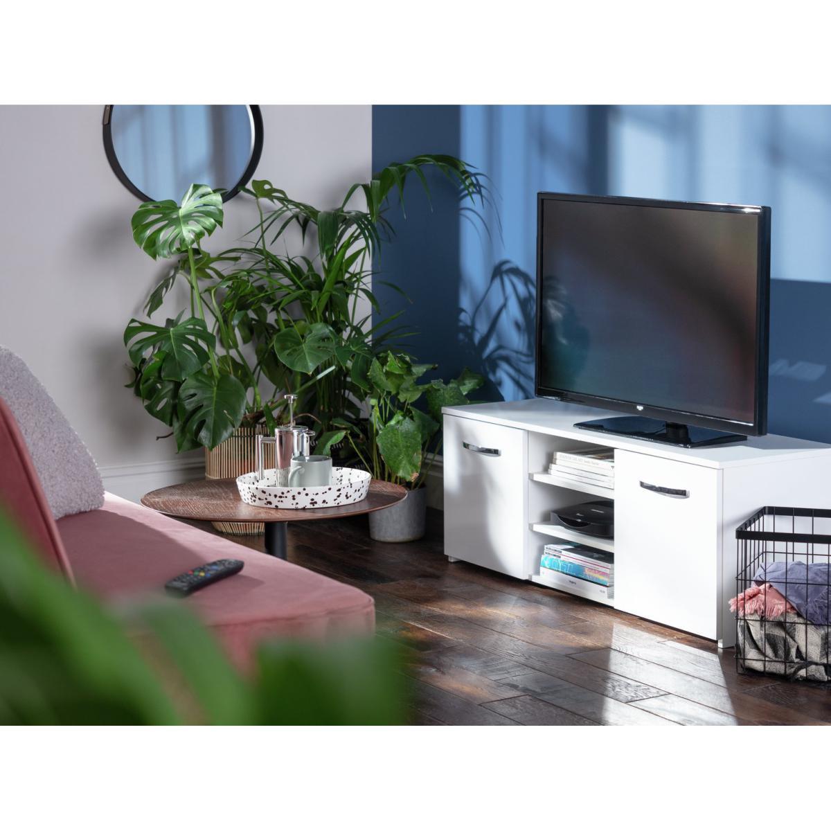 Sleek, smart and smooth. The Habitat Hayward collection's gloss finish makes it a fresh and fashionable choice. This TV stand lives to serve. With open shelving in the centre, you can get your TV box and games console set up in no time. Its compact size saves space, making it ideal for the bedroom or smaller lounges. Keep clutter at bay with the two cupboards either side. Its finished with bow handles in a chrome shine. Perfectly polished. Finished with a contrasting chrome handle. Part of the Hayward collection. Size H 43.1, W 120, D 38.9cm. Weight 28kg. 4 shelves. 2 doors. Chrome finish handles. 1 media storage section. Largest height of media equipment sections 11.5cm. Easy cable access. Suitable for screen sizes up to 50in. Maximum weight of TV 30kg. Self-assembly - 2 people recommended. General information:We are excited to be welcoming some of our favourite HOME products into the Habitat range. Your product may arrive in Habitat or HOME packaging.