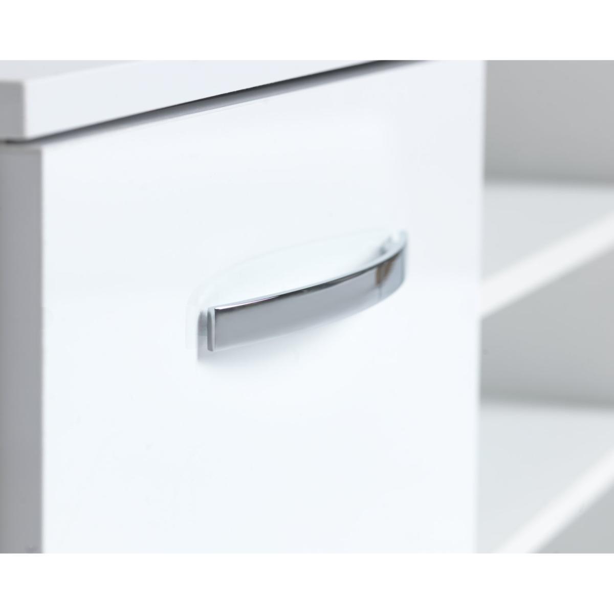 Sleek, smart and smooth. The Habitat Hayward collection's gloss finish makes it a fresh and fashionable choice. This TV stand lives to serve. With open shelving in the centre, you can get your TV box and games console set up in no time. Its compact size saves space, making it ideal for the bedroom or smaller lounges. Keep clutter at bay with the two cupboards either side. Its finished with bow handles in a chrome shine. Perfectly polished.