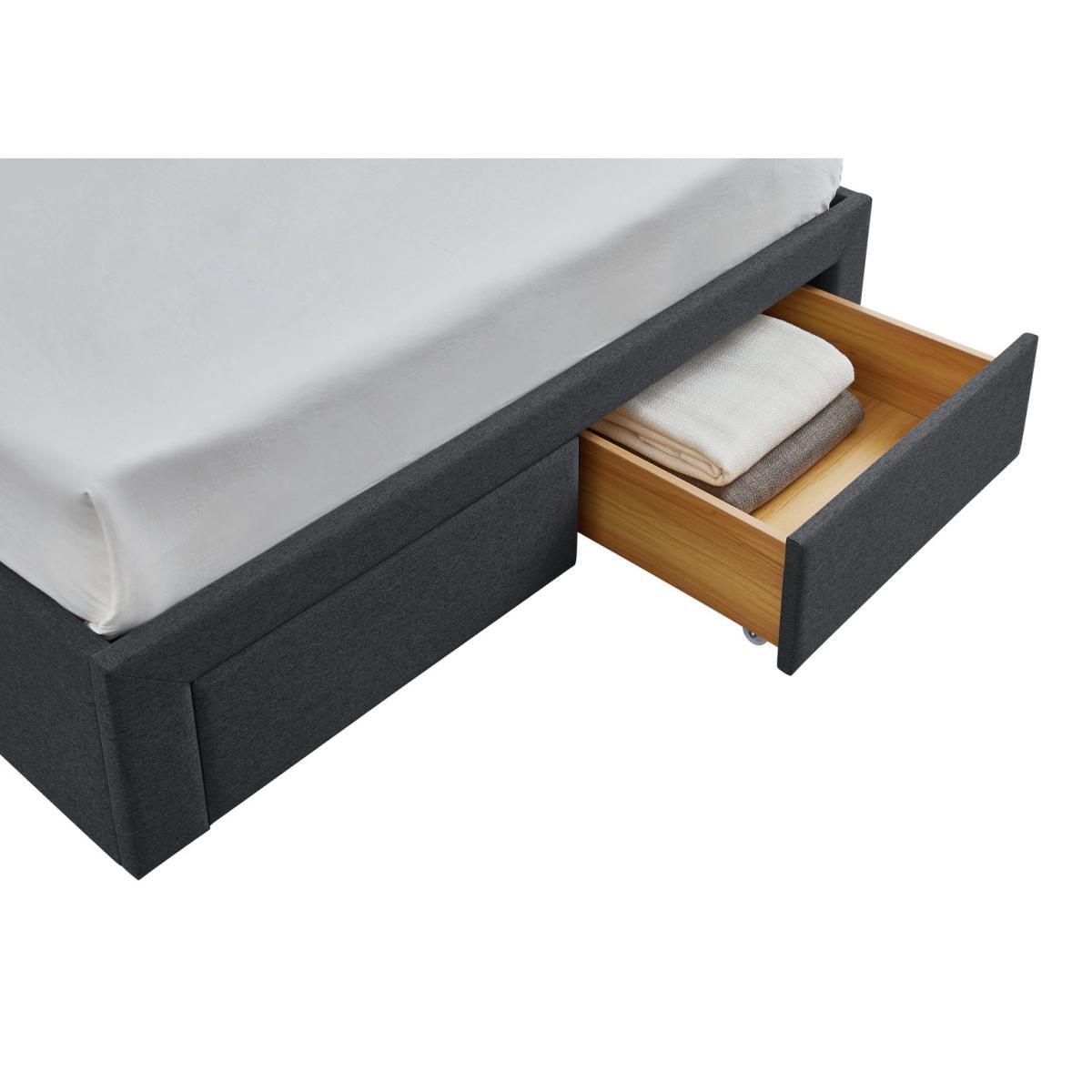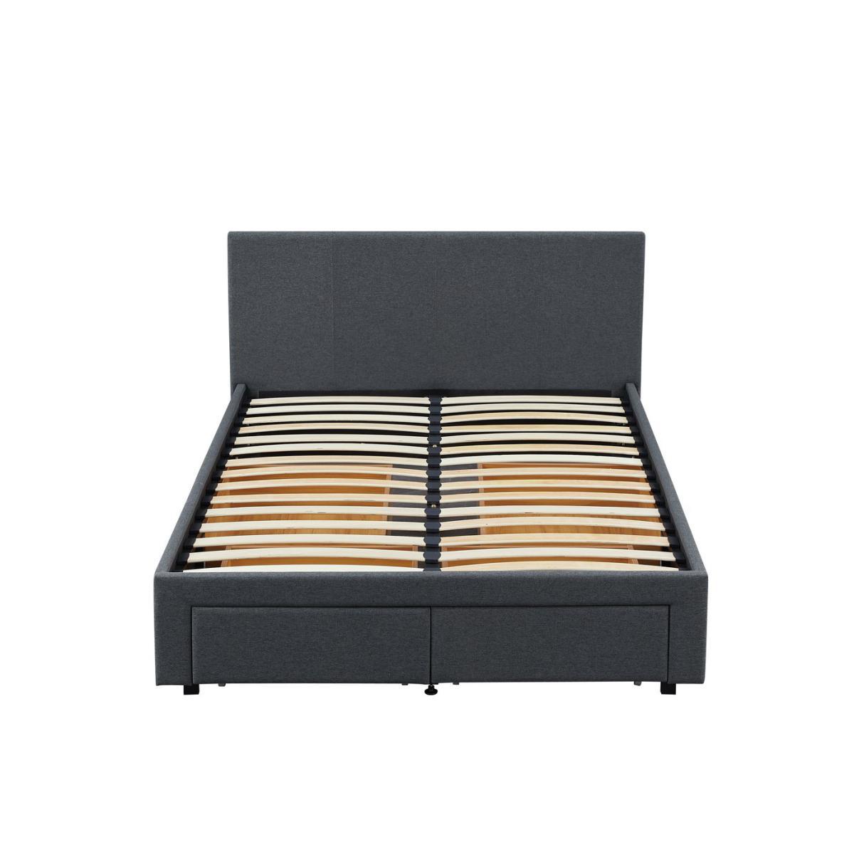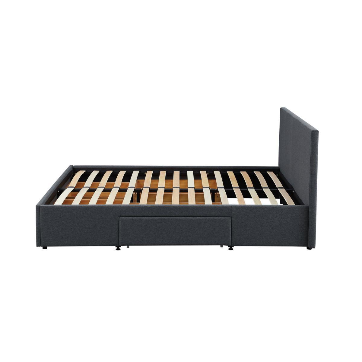Tidy room, tidy mind. Our Heathdon double bed frame makes stylish use of your space with its textured woven fabric frame and handy under-bed storage. Sprung wooden slats offer the perfect foundation for a comfy mattress. Designed with 4 drawers, you've got loads of room to store clothes, bedlinen, books, and shoes. Keep your bedroom cool and clutter-free with Heathdon. Dreamy. Parts included can be found in the headboard.