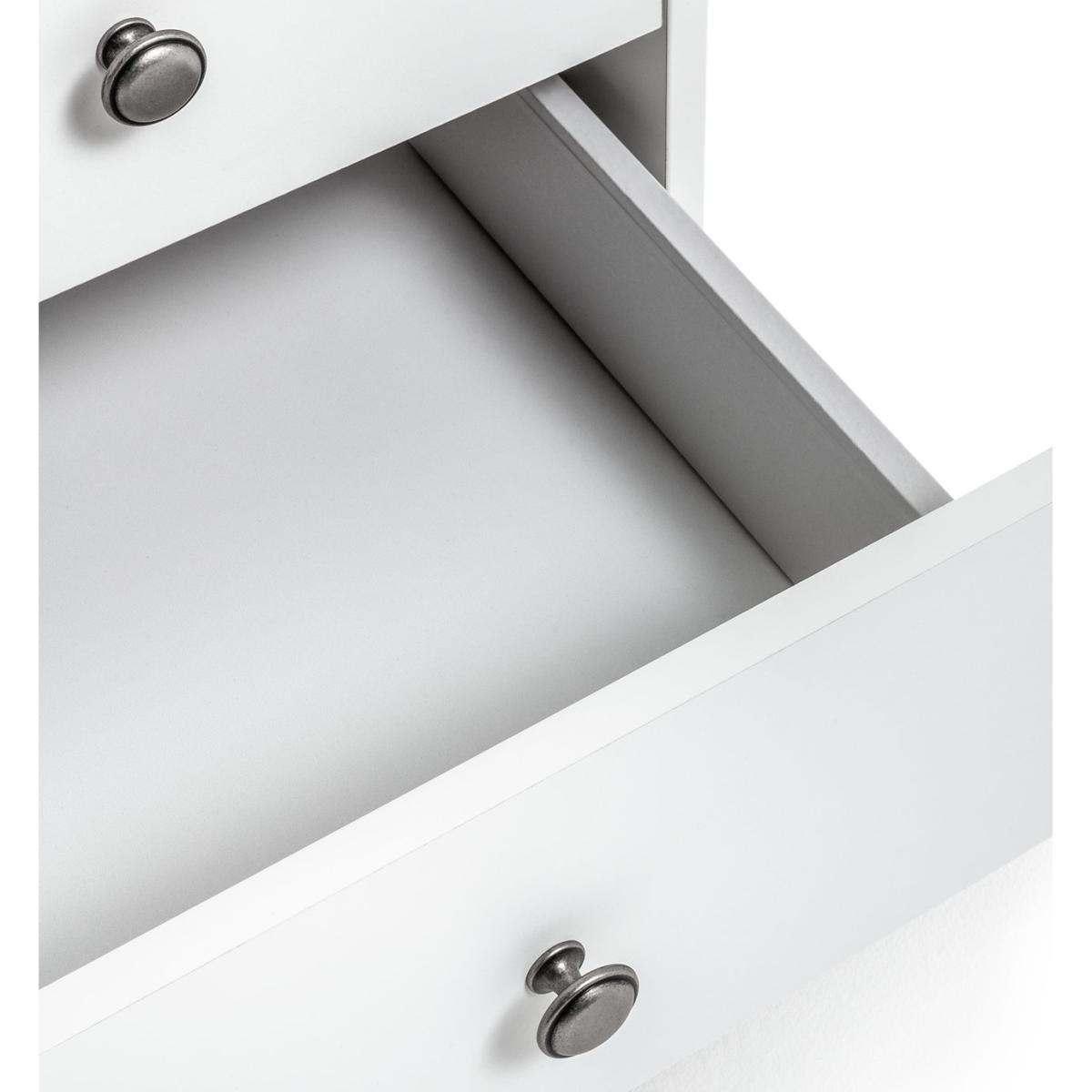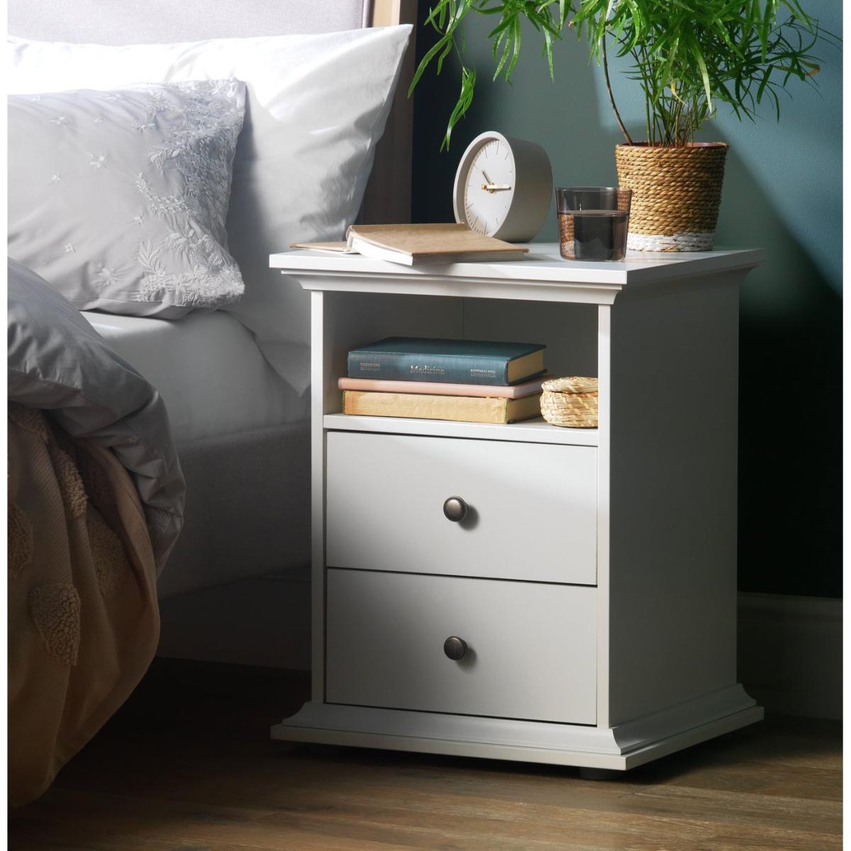 I love this white bedside table for its clean, versatile look and practical design. It works well in both traditional and contemporary interiors, offering a fresh, bright addition to a bedroom. The two drawers provide useful storage for essentials, keeping the space tidy, while the open shelf offers a perfect spot for a book or small decorative item. Styling tips include pairing it with light-toned or colourfully textured bedding to make the white pop, or adding a small lamp and personal accessories to personalise the space. Its straightforward shape and neutral colour make it a flexible piece that can easily adapt to different bedroom styles, making it a smart choice for a variety of interior schemes.