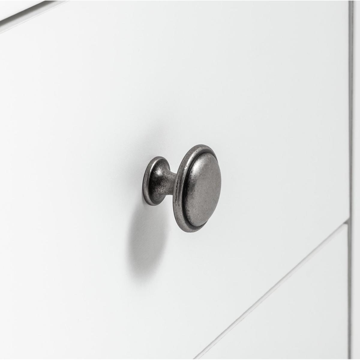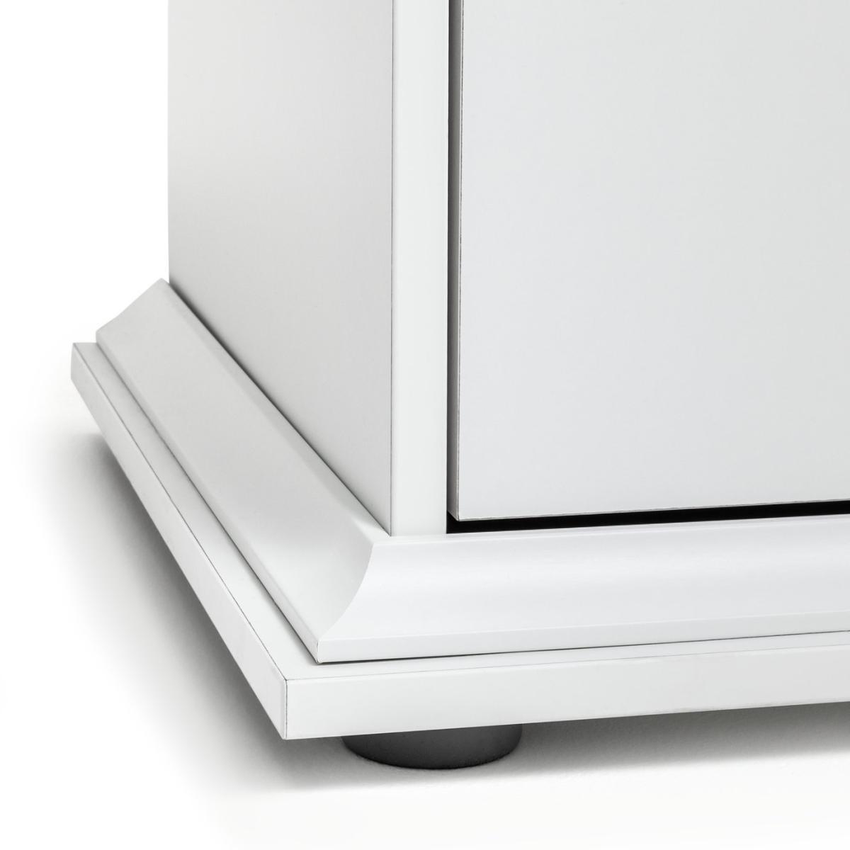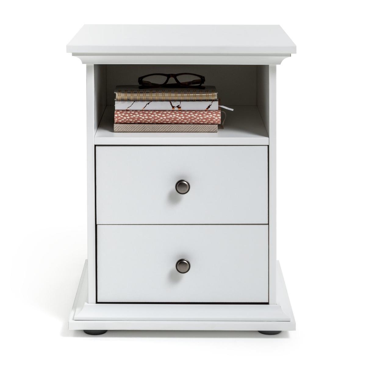 Dress your bed with this charming bedside cabinet. It's a fabulous way to add style to your bedside and so practical too. With 2 drawers for you to hide away those bedtime essentials, plus a cubbyhole for books and magazines. Plinth and cornice detailing, gunmetal handles, and a soft white matte finish, create a classic design with modern style. Pair with matching table lamps for the perfect finishing touch. Nighty night.