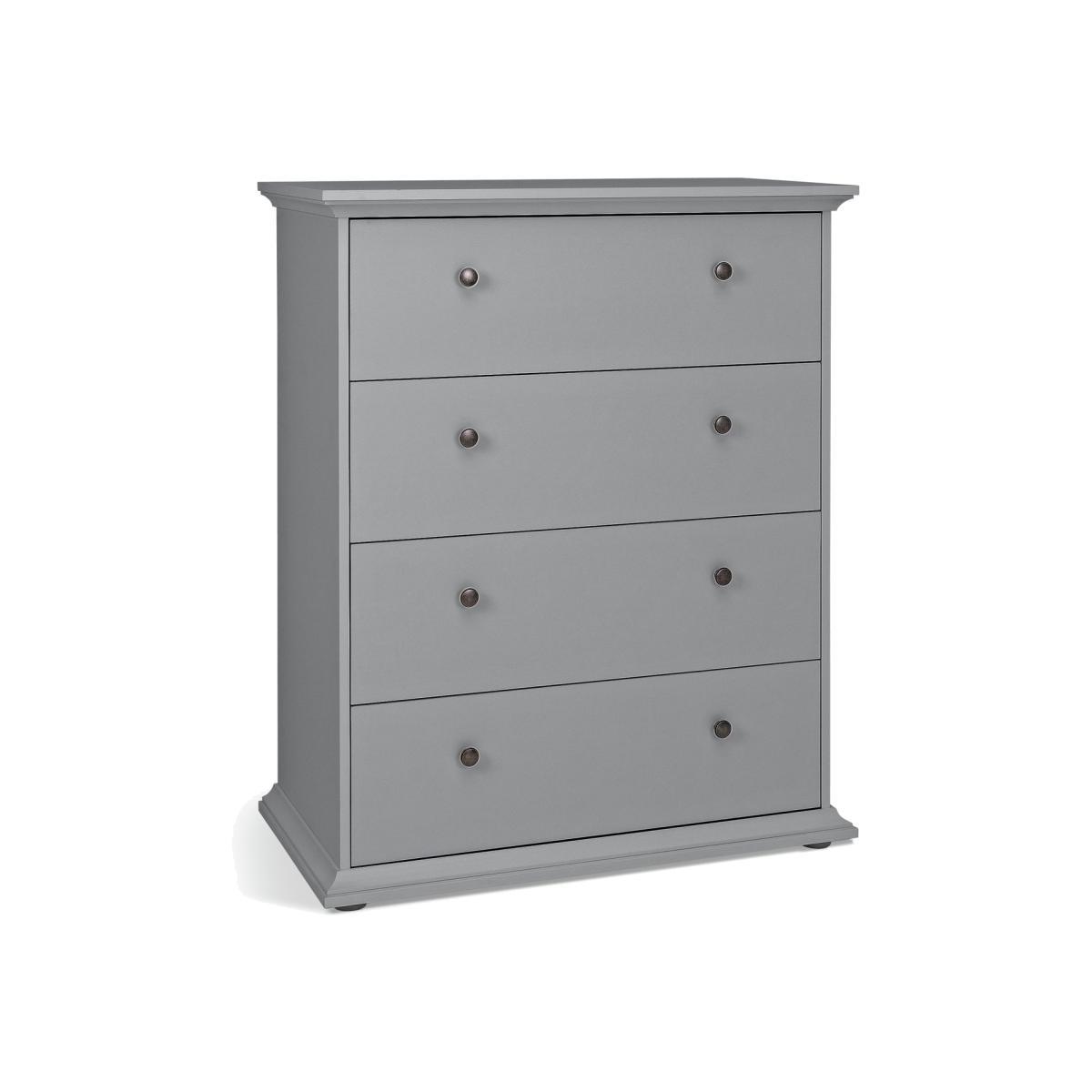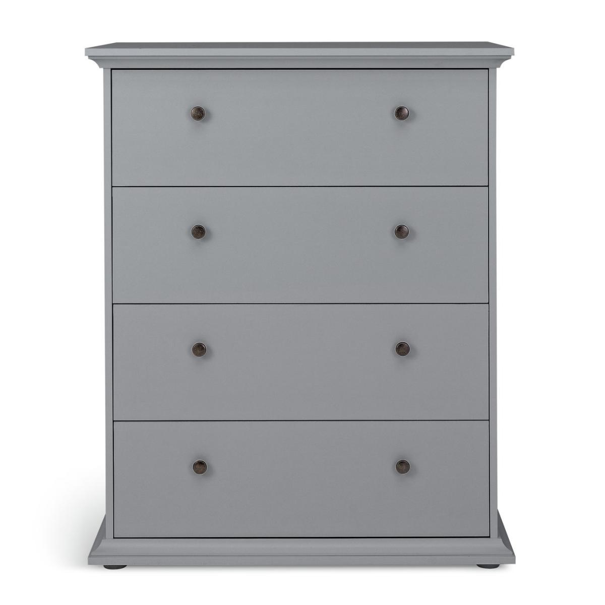 When it comes to chests, meet one of the best. Our Heathland set of drawers is not only super on storage for all those jumpers, jeans, stock and tops - it is perfect for dressing up to give your bedroom to give it a bit of a design lift. Perhaps wall art behind or a funky lamp on its surface. With 4 deep drawers on easy slide metal runners, plinth and cornice detailing, gunmetal handles, and a soft grey matte finish, it blends classic design with modern style. Nothing enhances your bedroom style quite like Heathland.