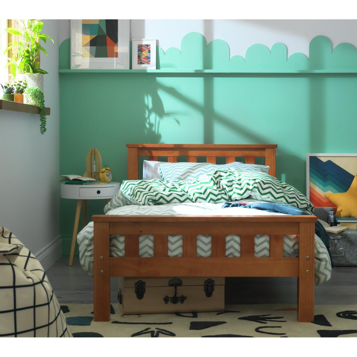I love how this pine bed frame offers a sturdy, timeless look that suits a variety of children's interiors. Its natural finish introduces warmth and texture, making it ideal for both playful and more muted schemes. This bed works well in modern, Scandi-inspired rooms owing to its clean lines and simple design, but it can also be dressed up or down with colourful bedding and quirky accessories to add personality. For practical styling, consider pairing it with a cosy, washable throw or patterned cushions to make the space inviting. It's a versatile piece that can grow with your child, blending practicality with a classic aesthetic.